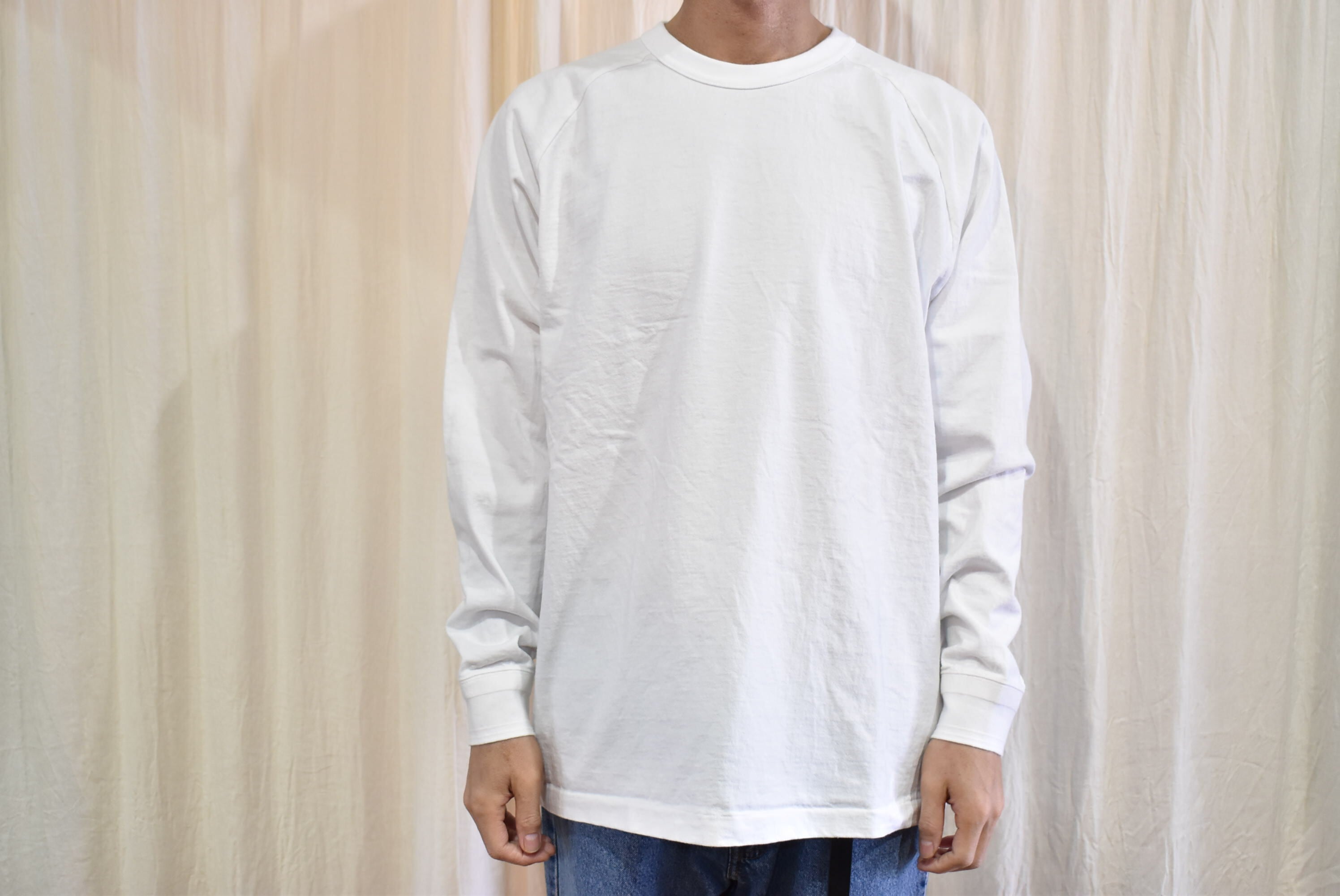 丸胴ボディを用いたラグランスリーブのTシャツ。