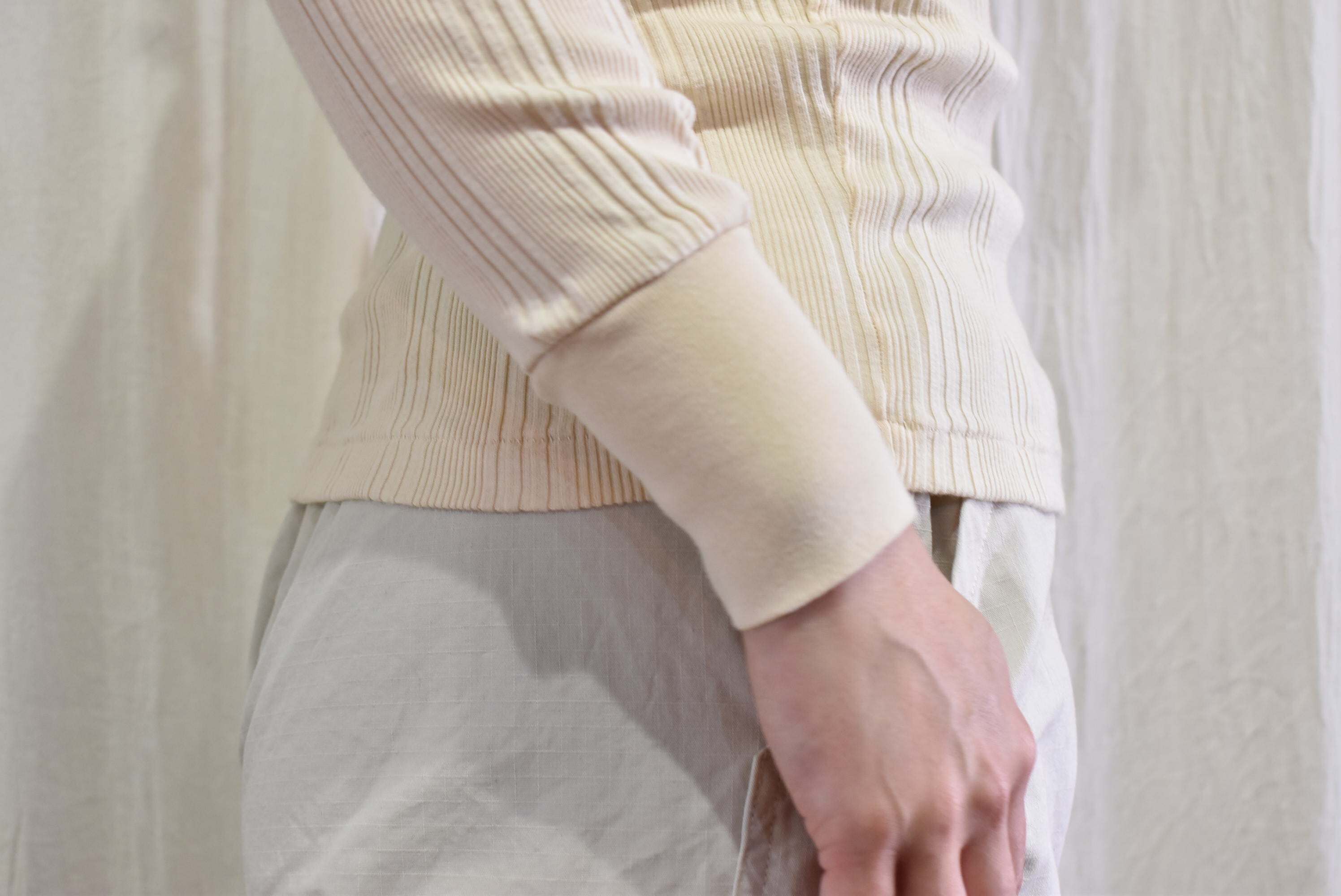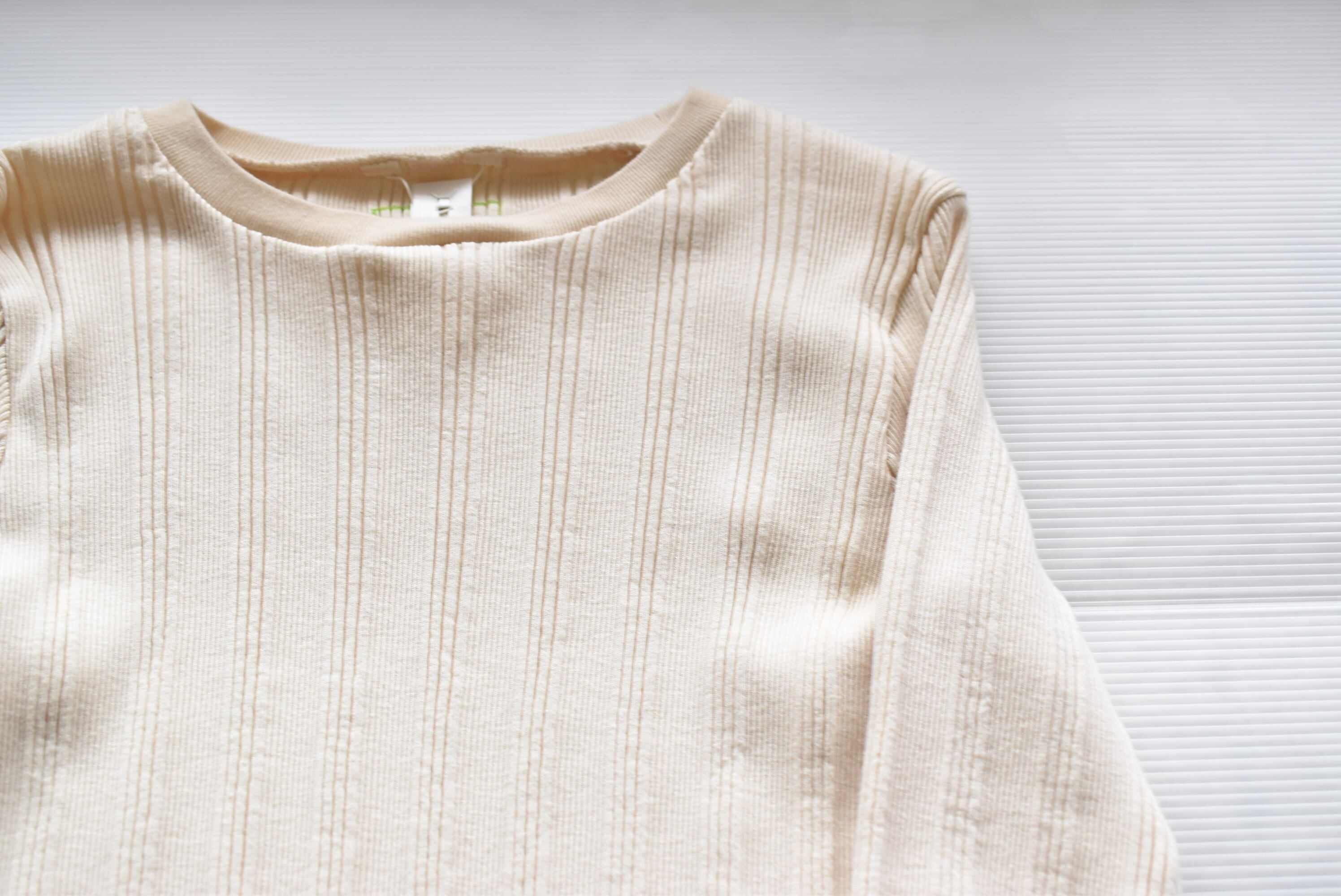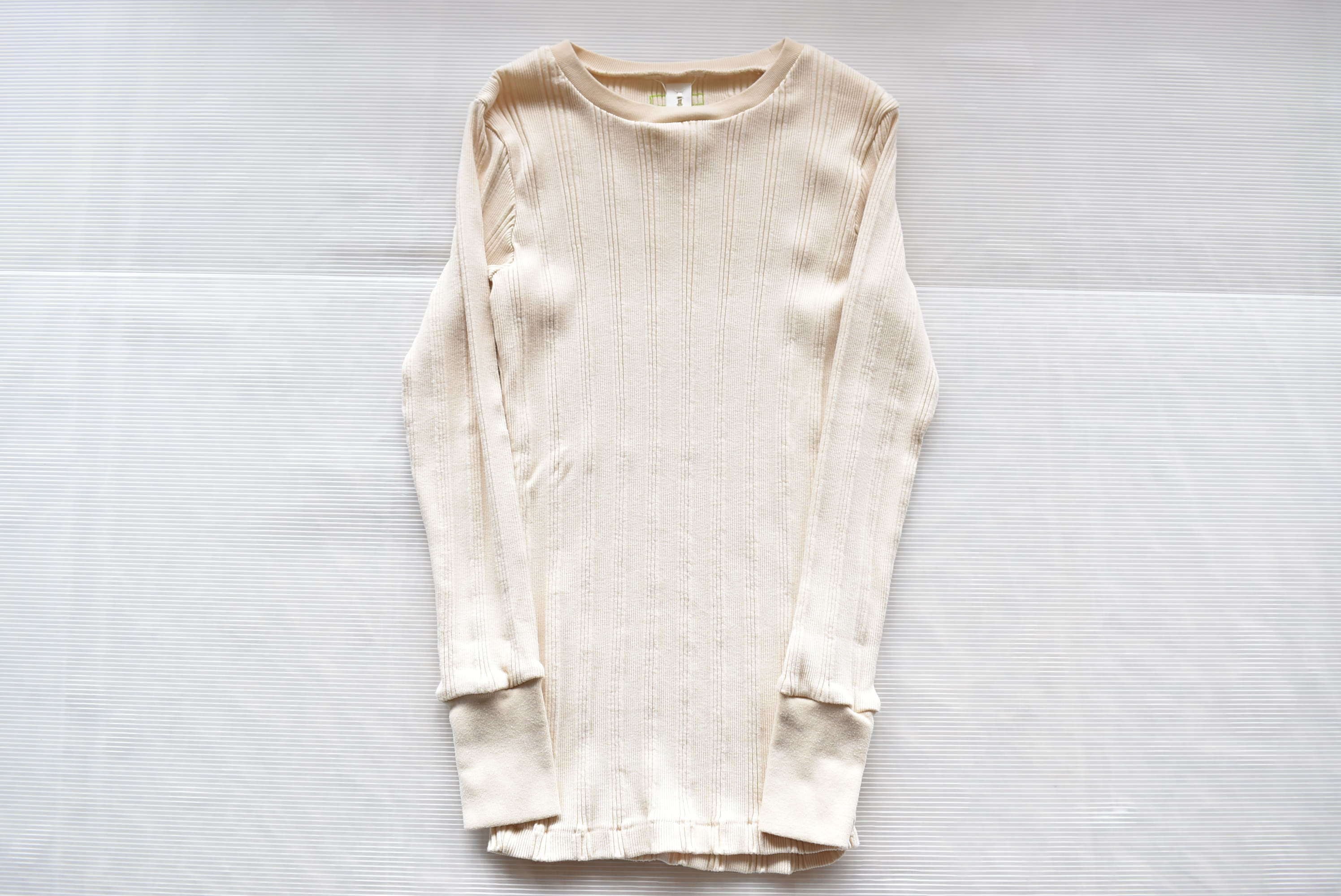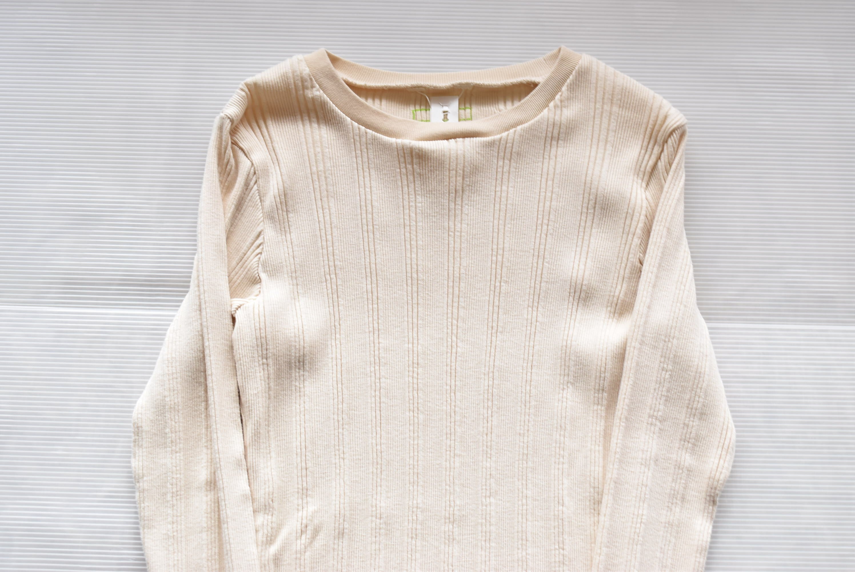 掛け合わせてランダムにリブをいれた長袖カットソー。