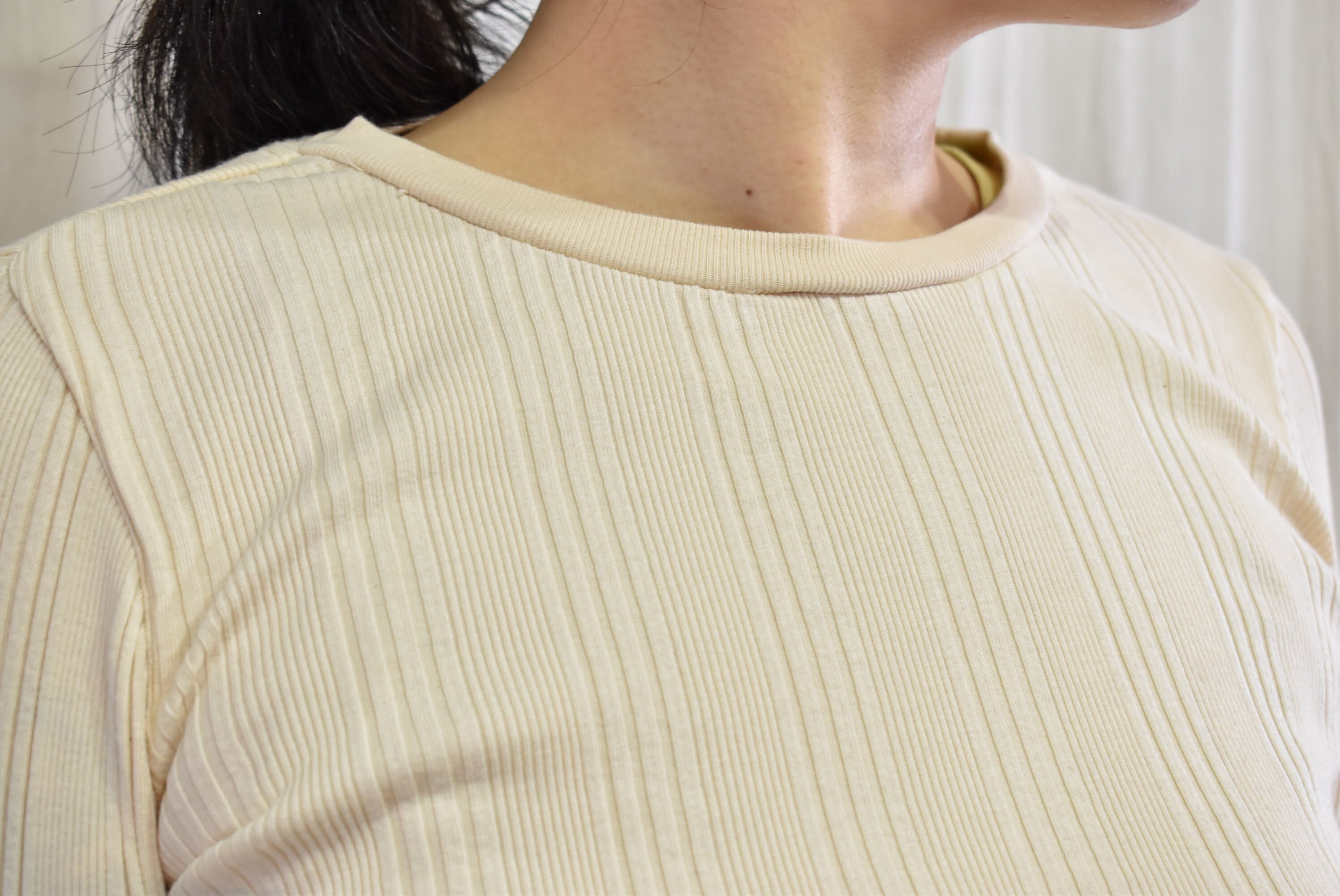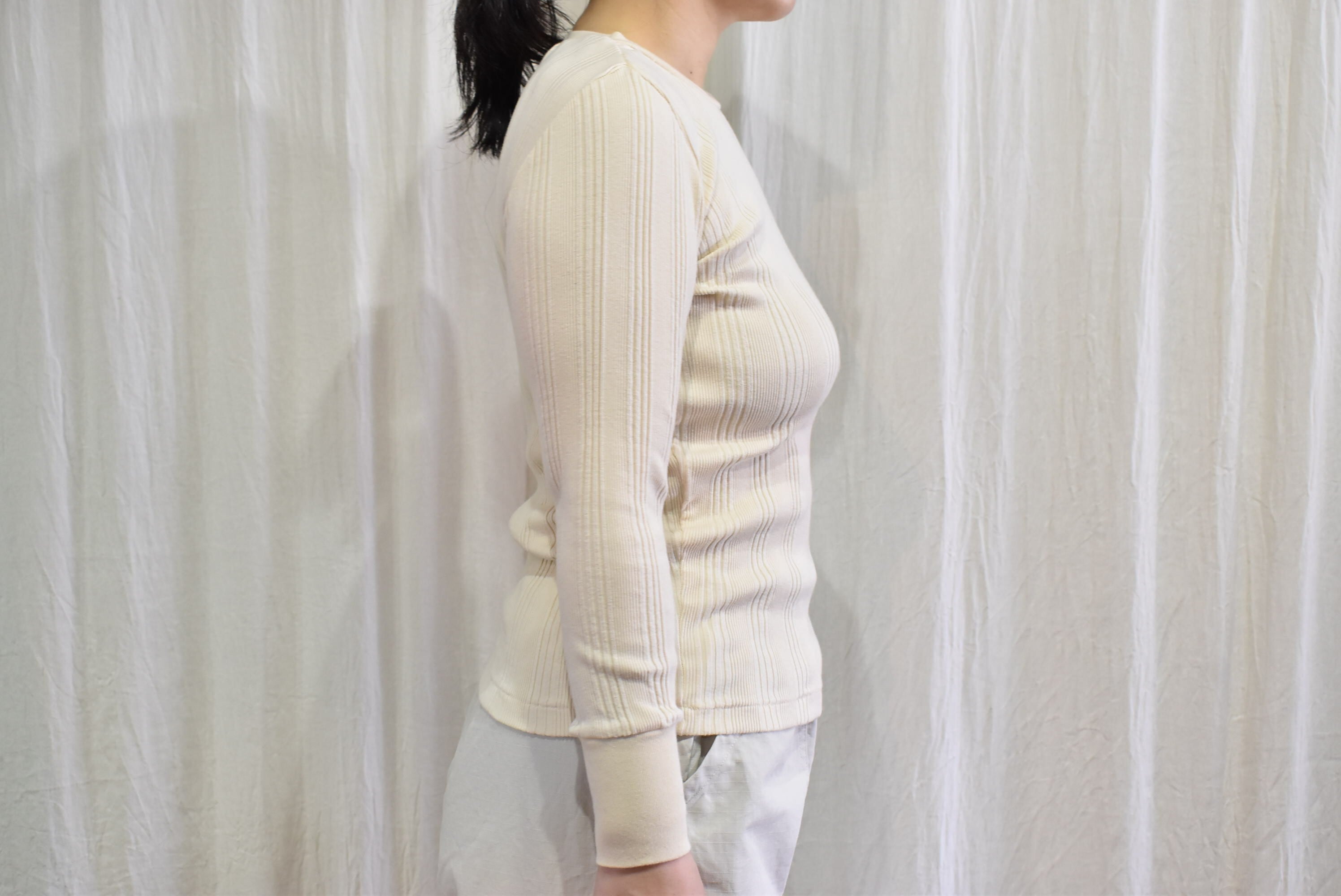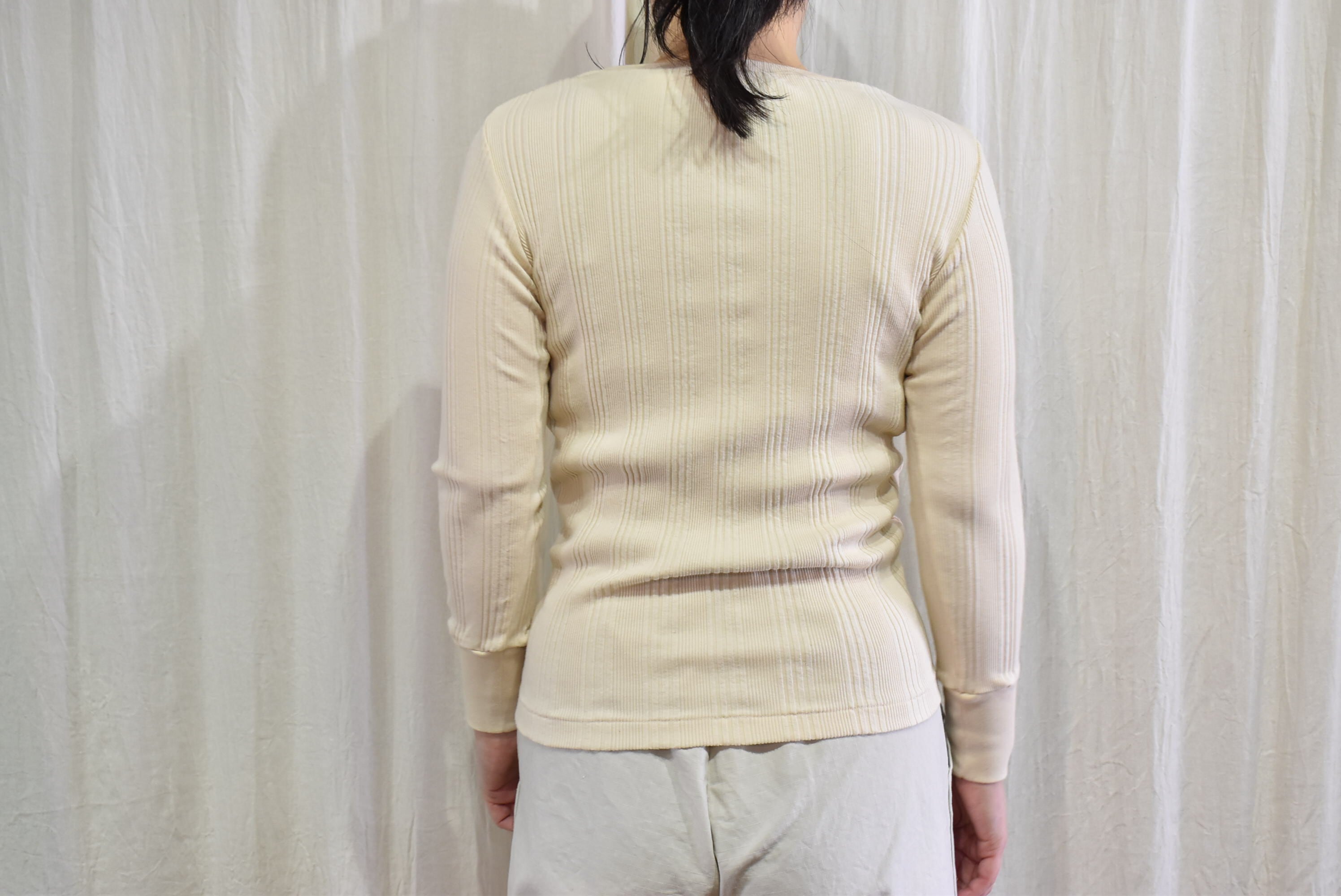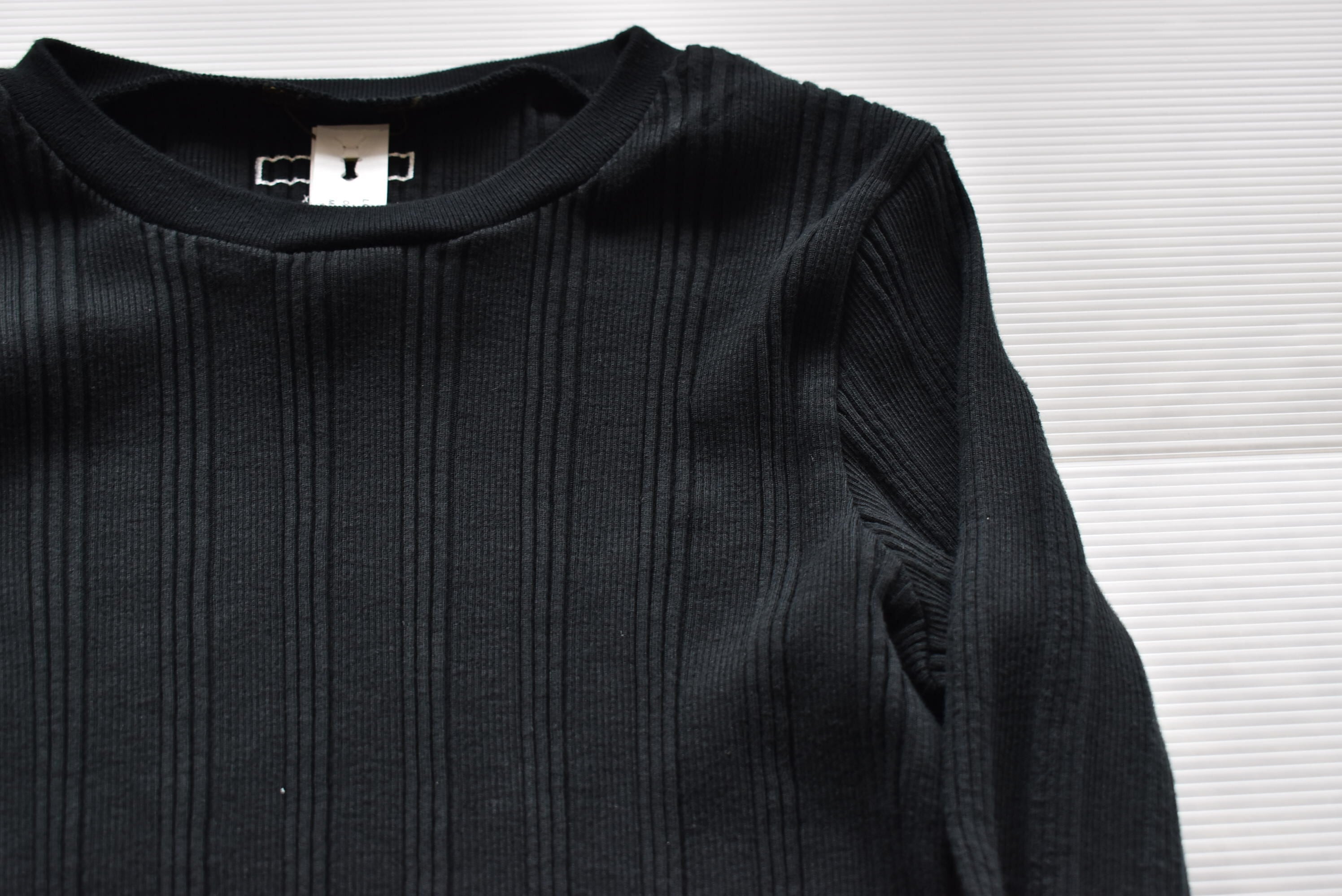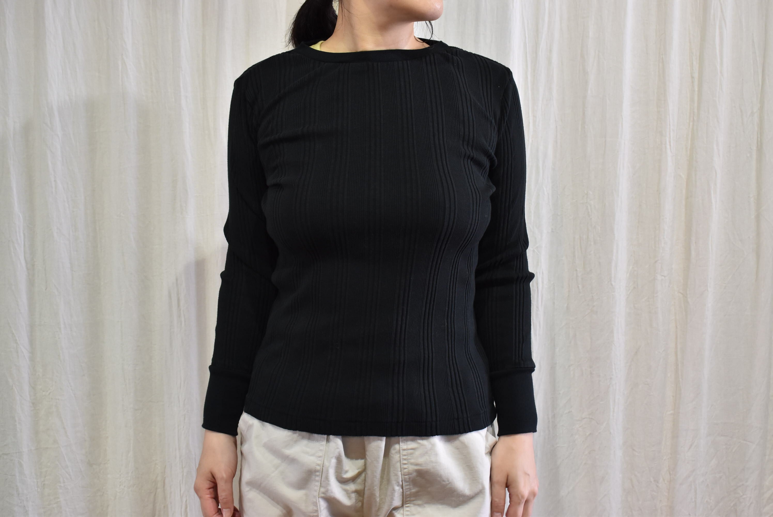 掛け合わせてランダムにリブをいれた長袖カットソー。