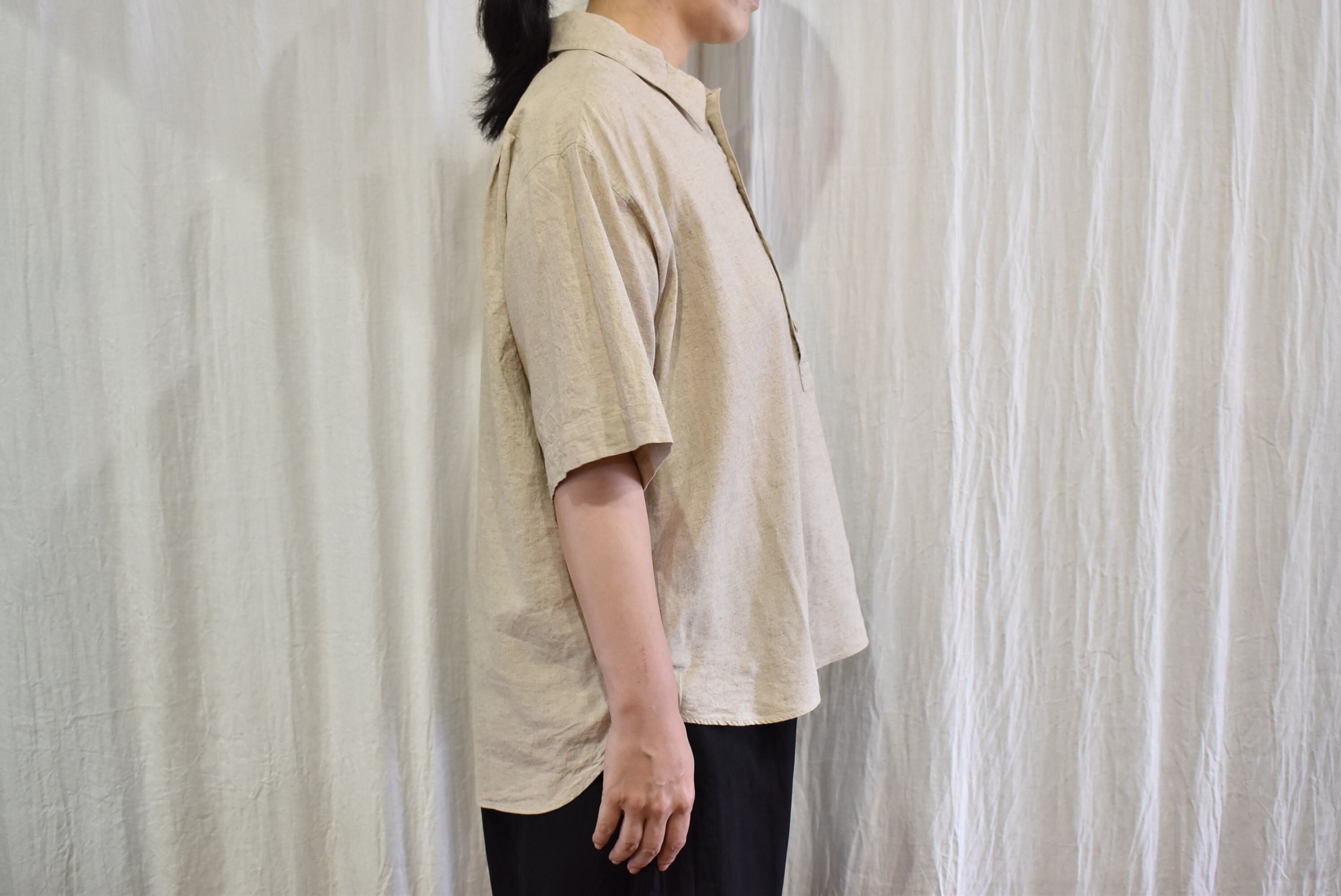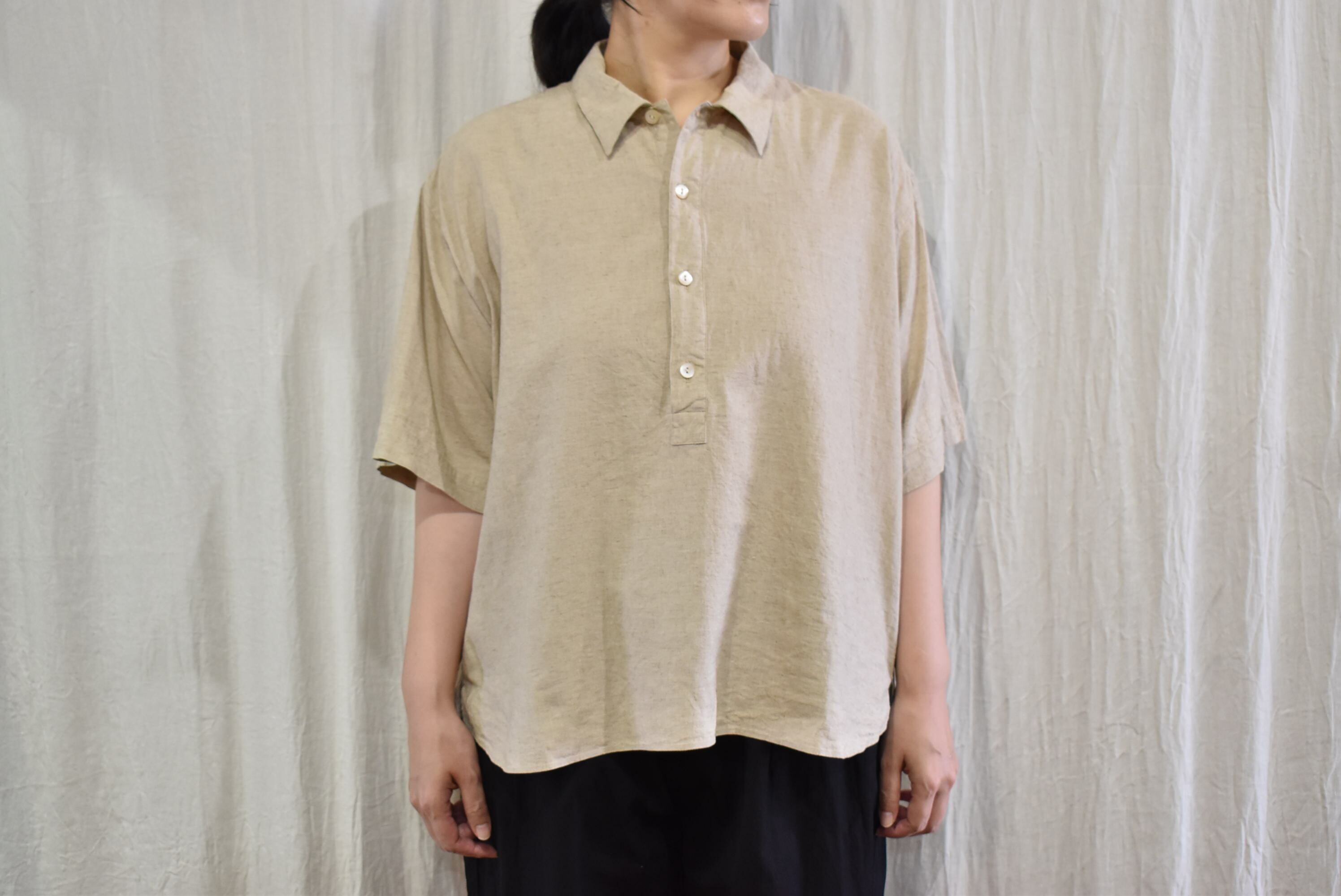 River: PLAIN SHIRT S/S BEIGE(LINEN×COTTON×RAYON)