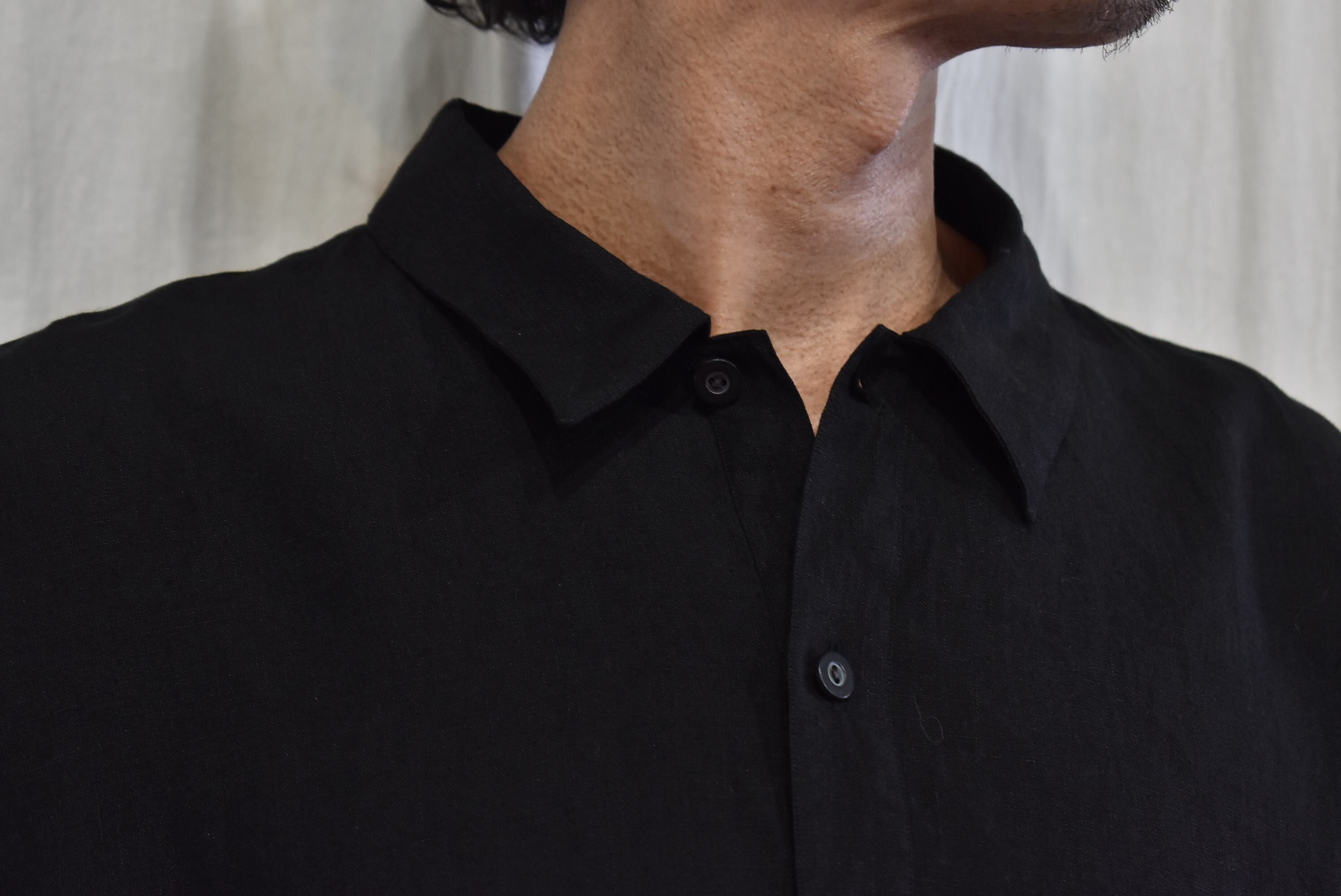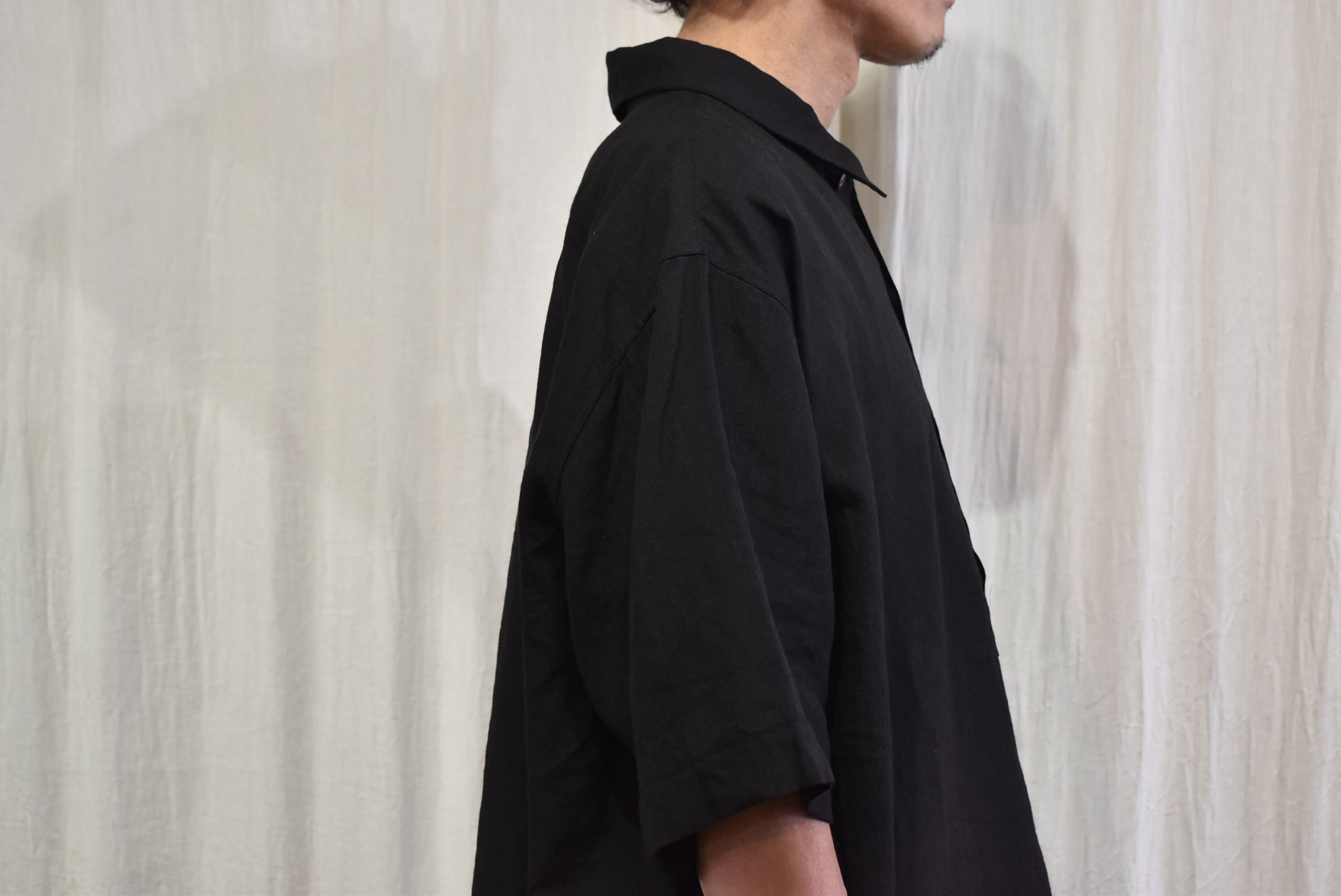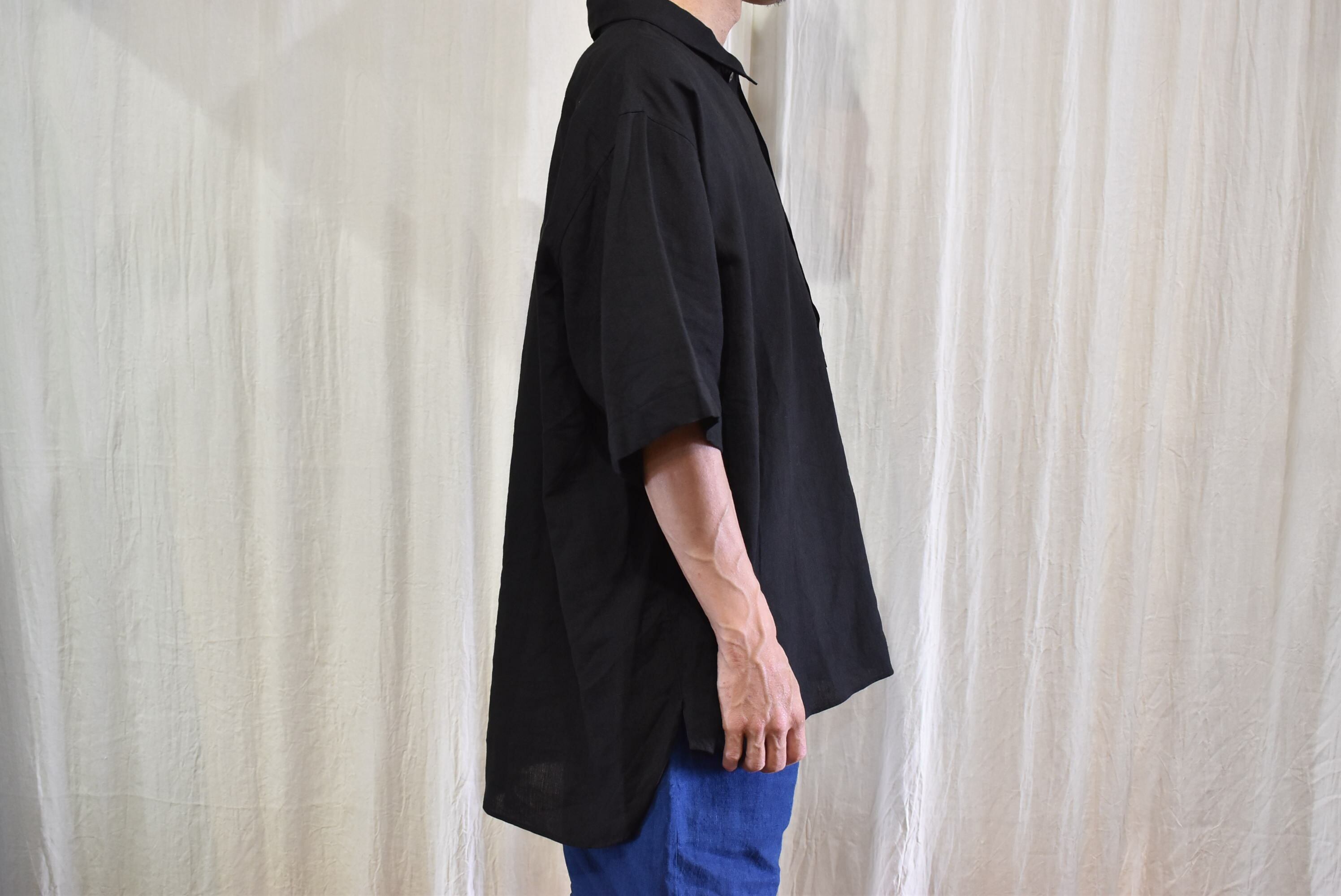 River: PLAIN SHIRT S/S(LINEN×和紙)BLACK