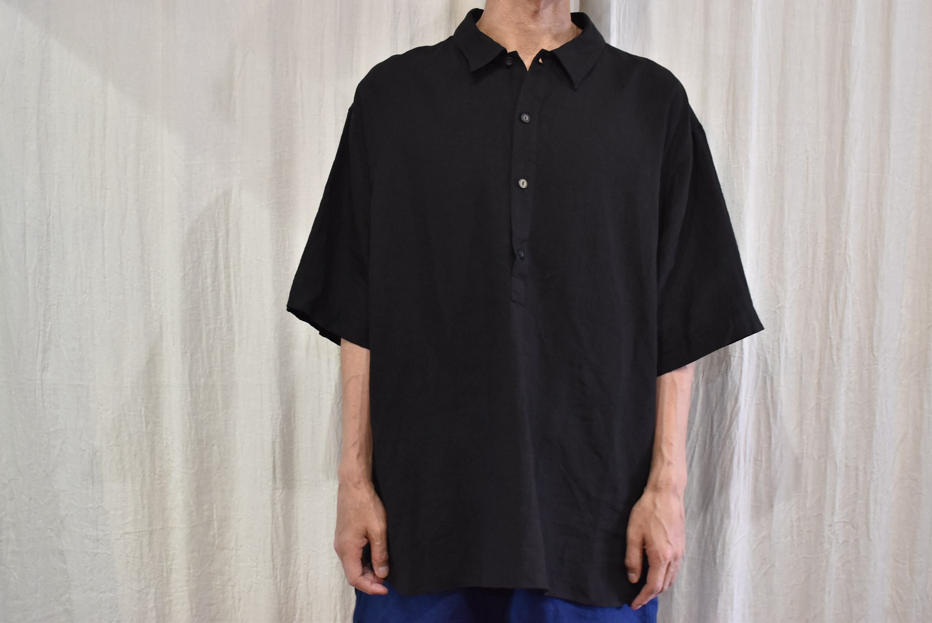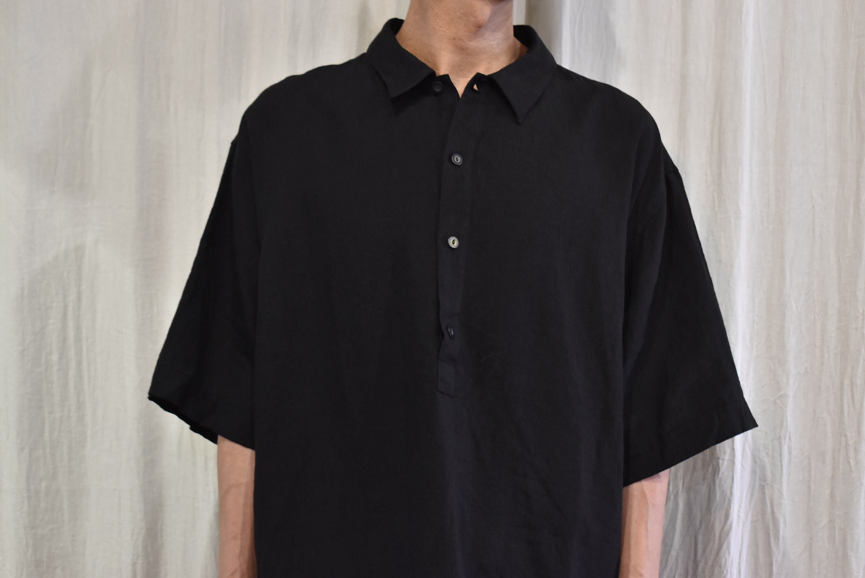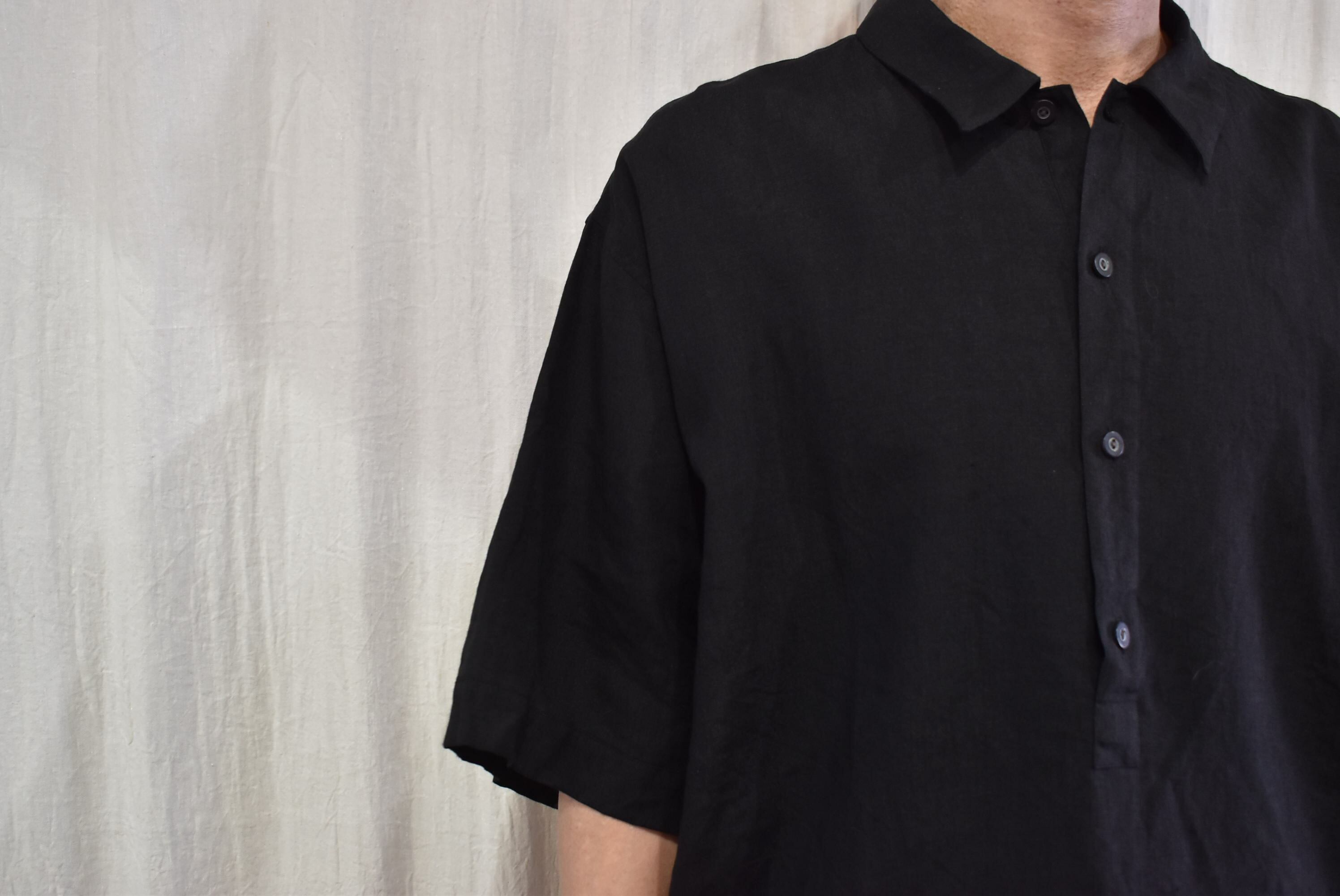 River: PLAIN SHIRT S/S(LINEN×和紙)BLACK