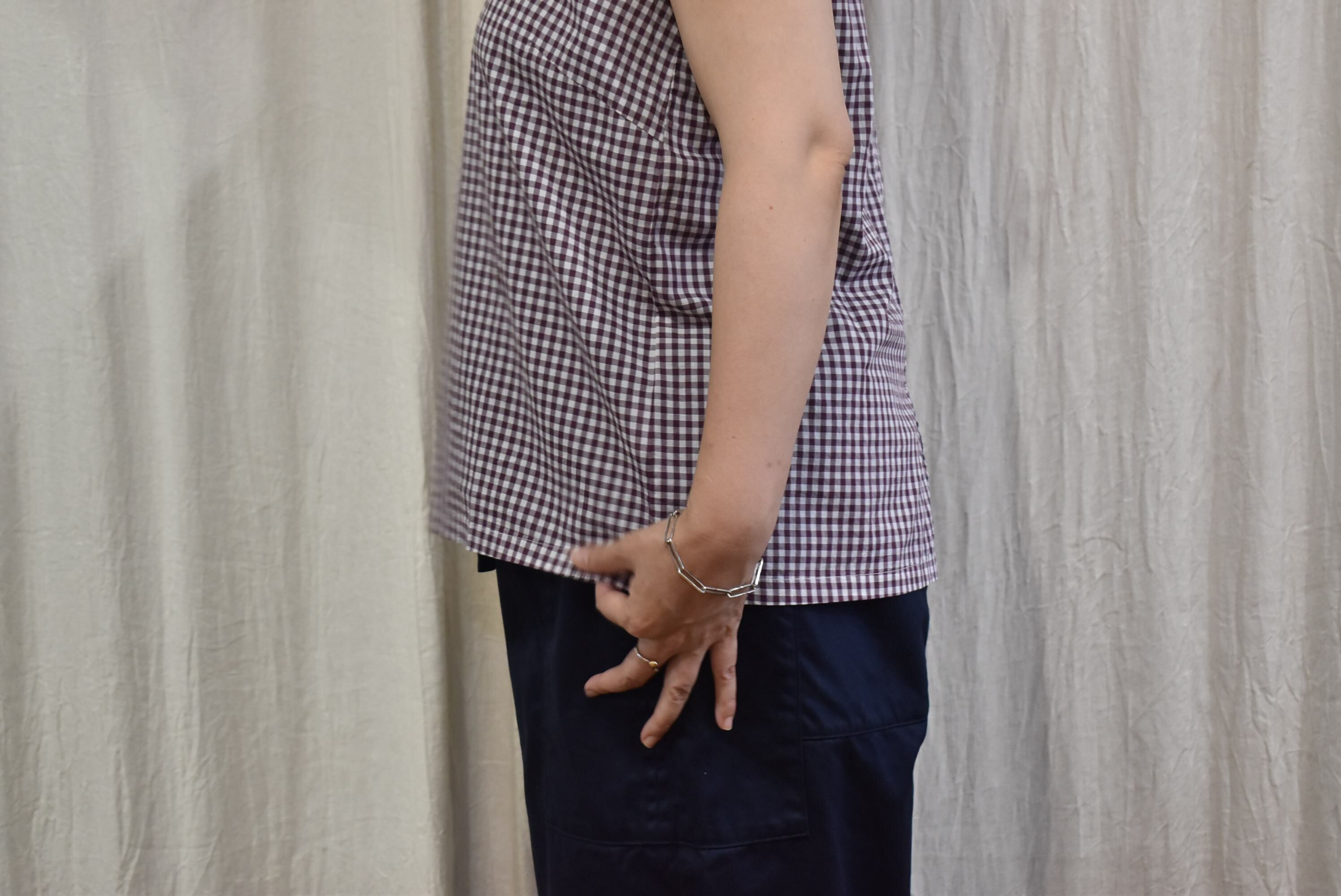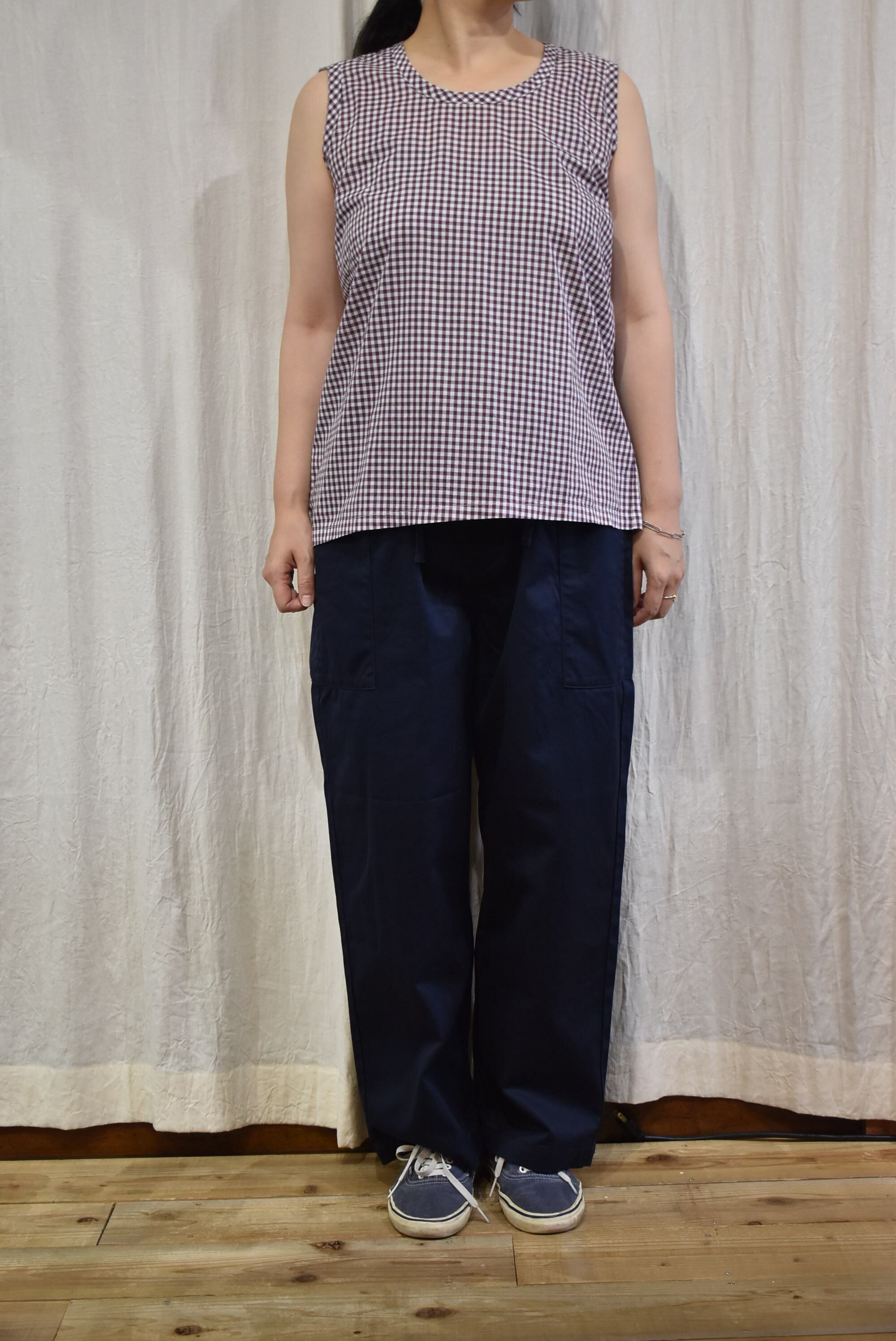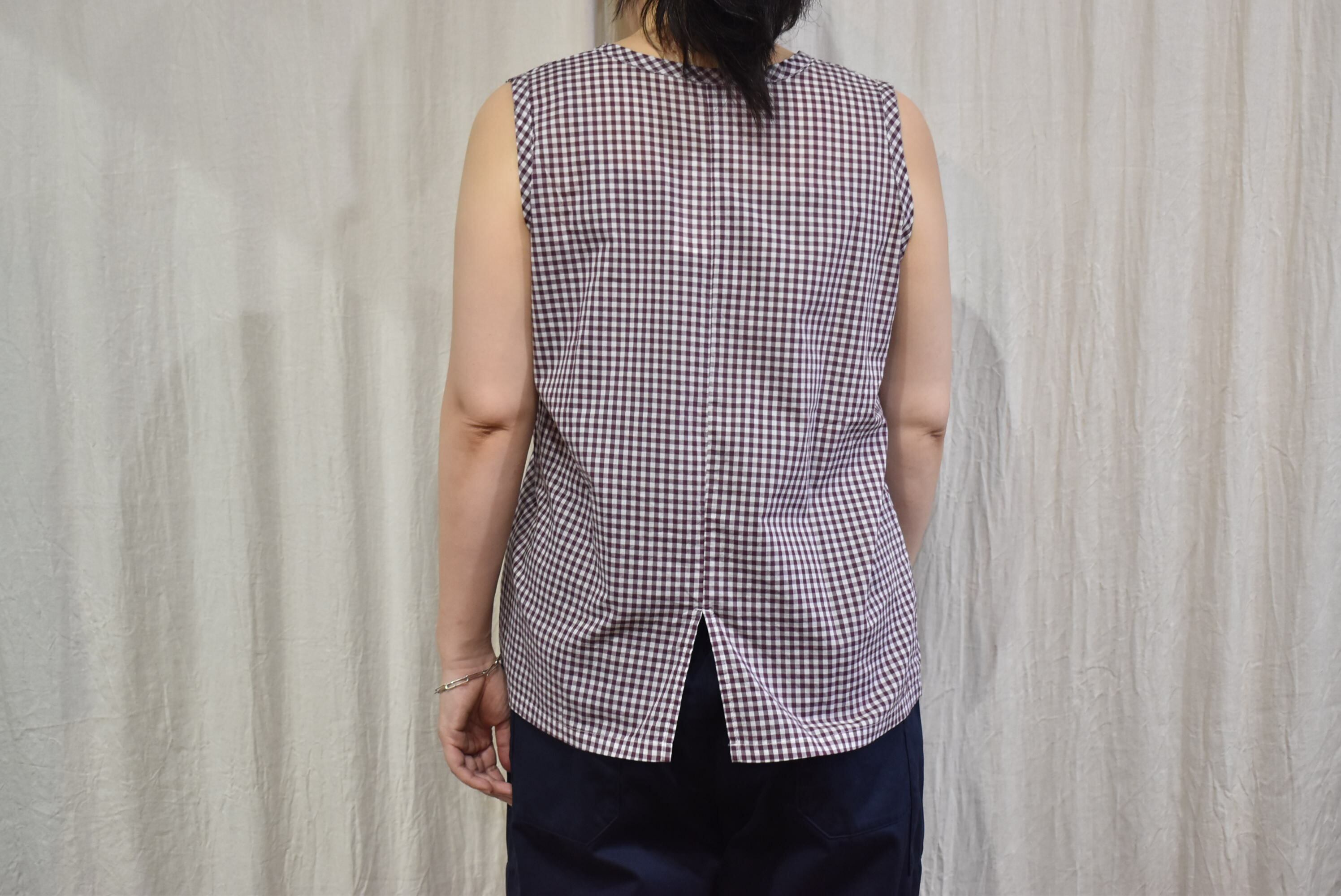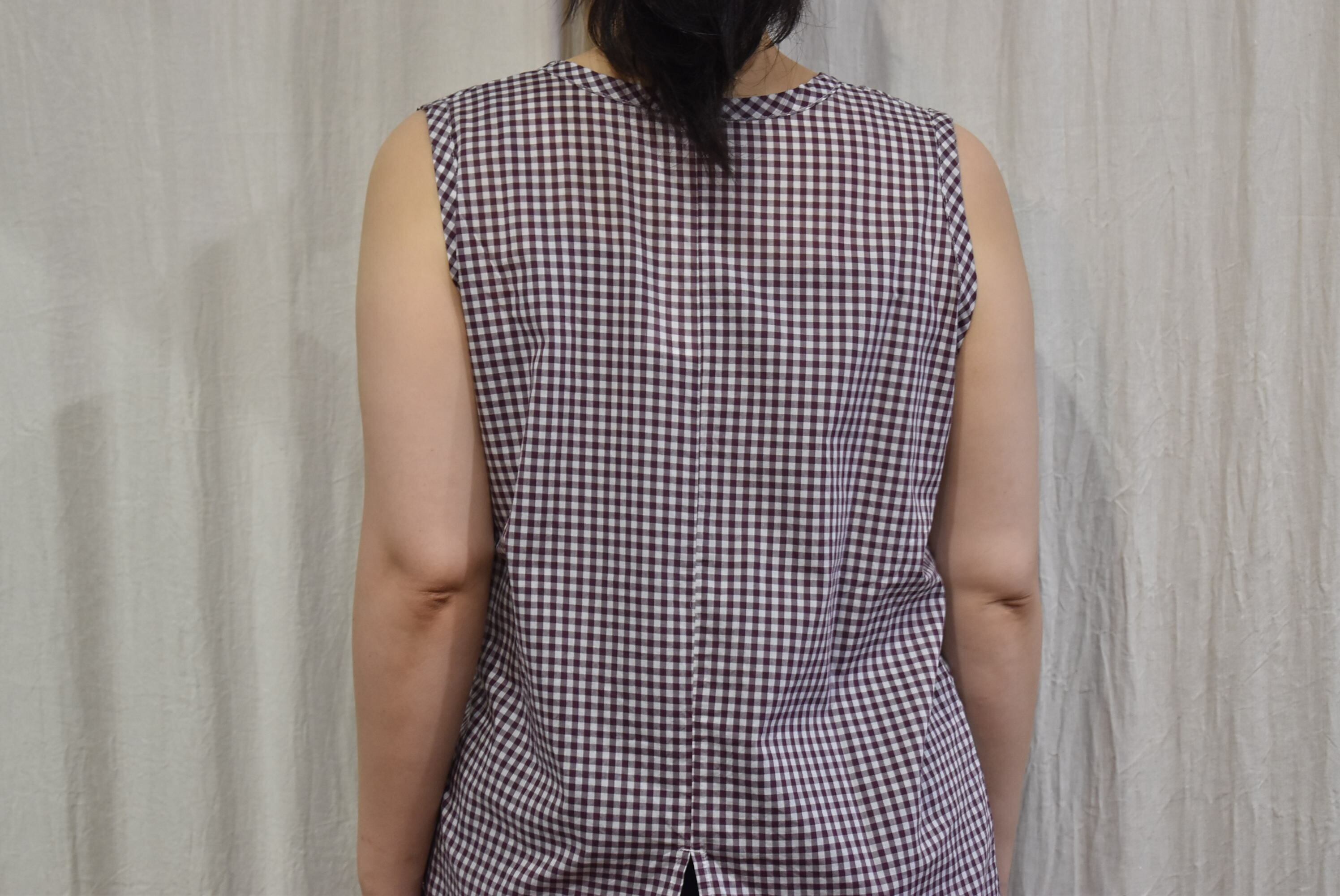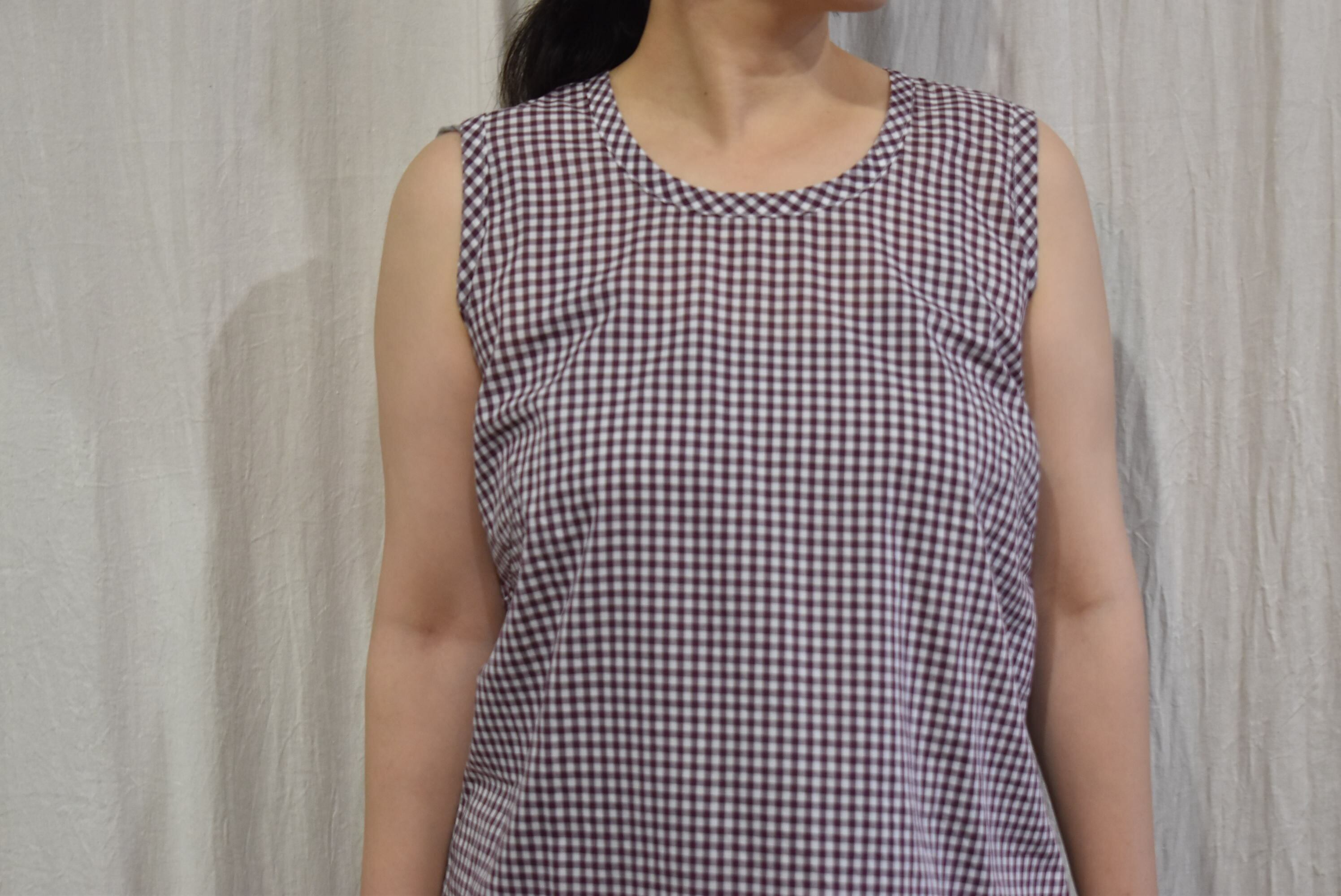 薄地のギンガムチェック生地を用いたノースリーブ。
