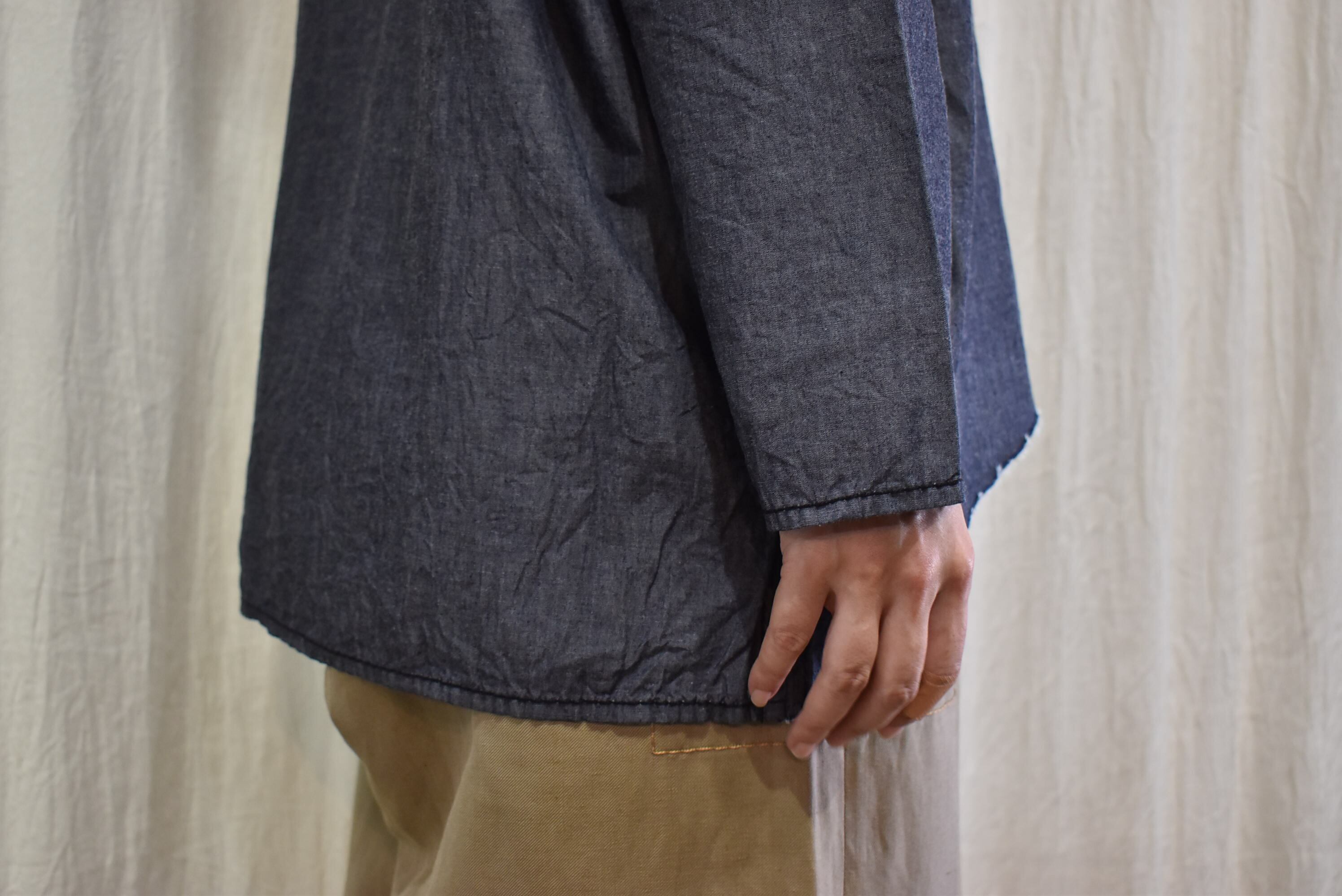 随所に利かせたhomspunらしい縫製技術が光る1枚です。