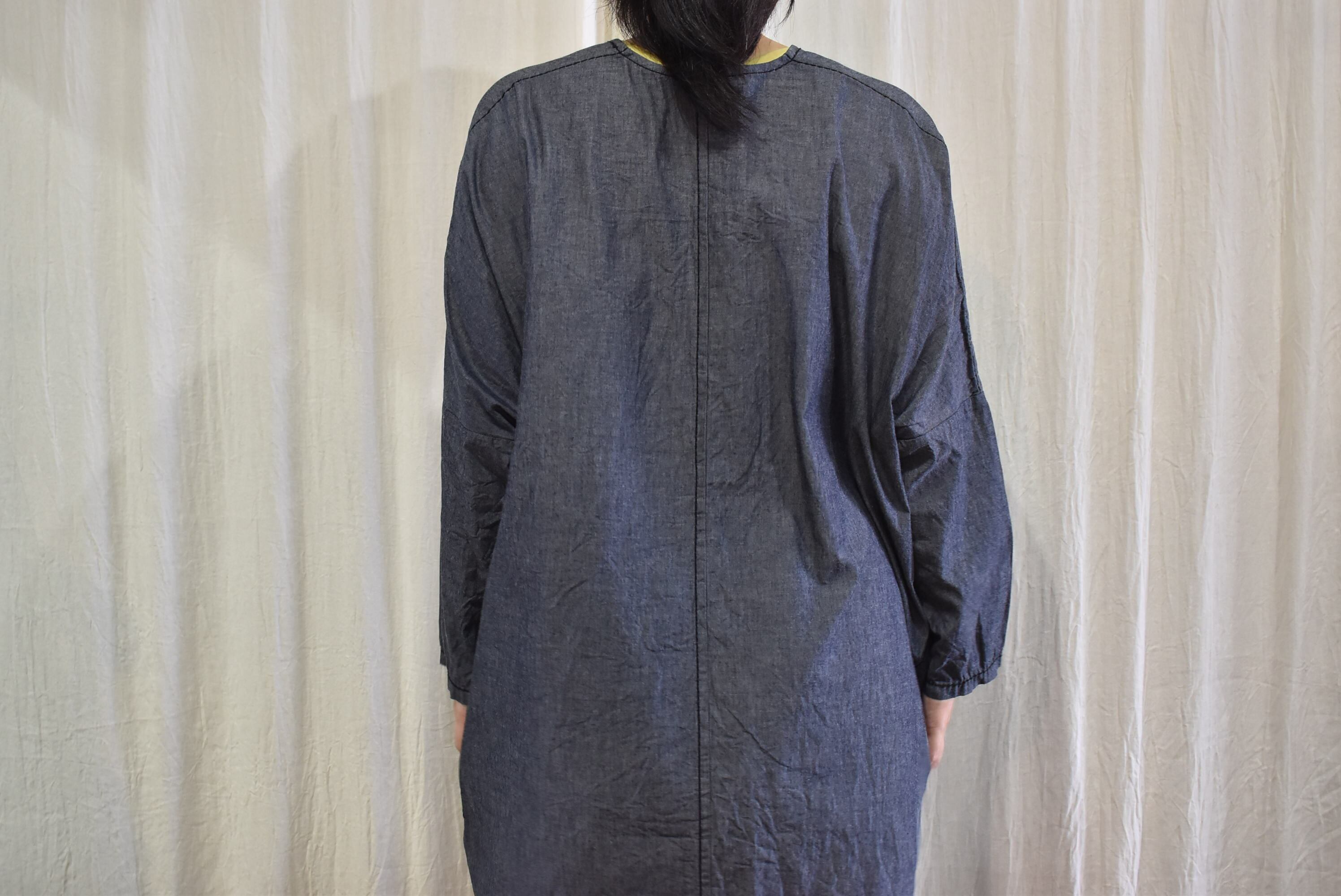 プルオーバータイプの生地をたっぷりと使用したワンピース。