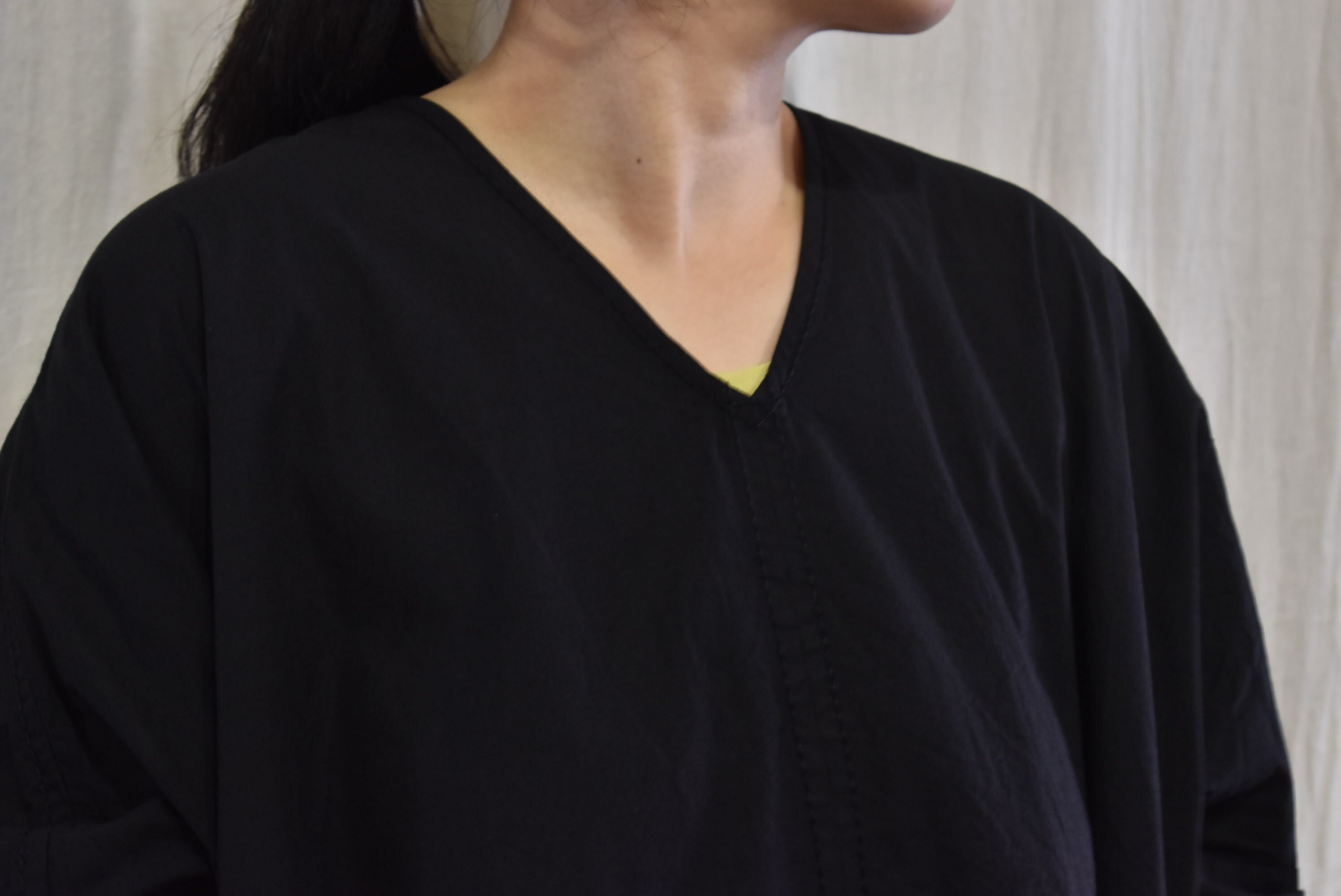 プルオーバータイプの生地をたっぷりと使用したワンピース。