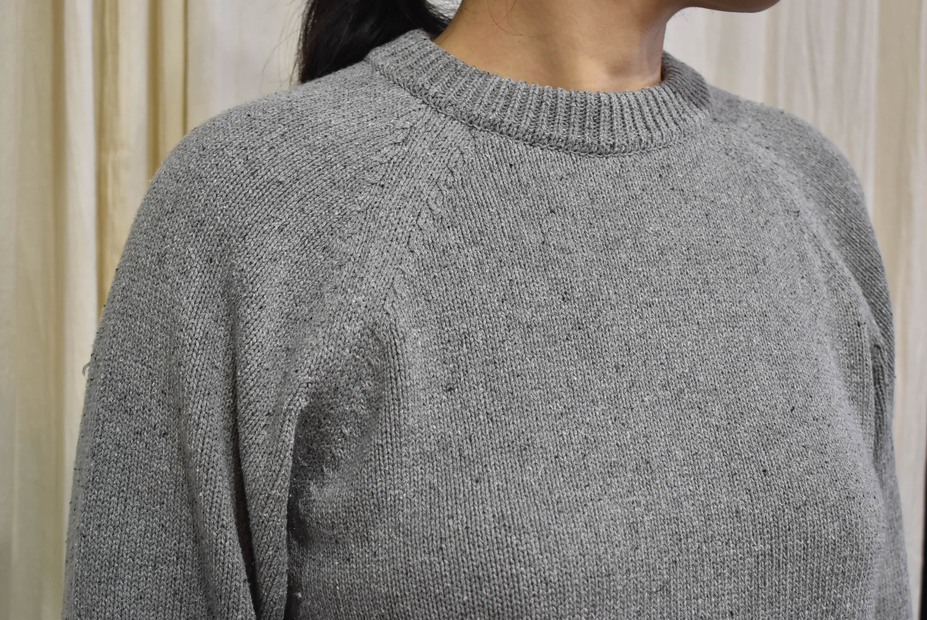 ワイルドなシルク糸を使ったクルーネックセーター。