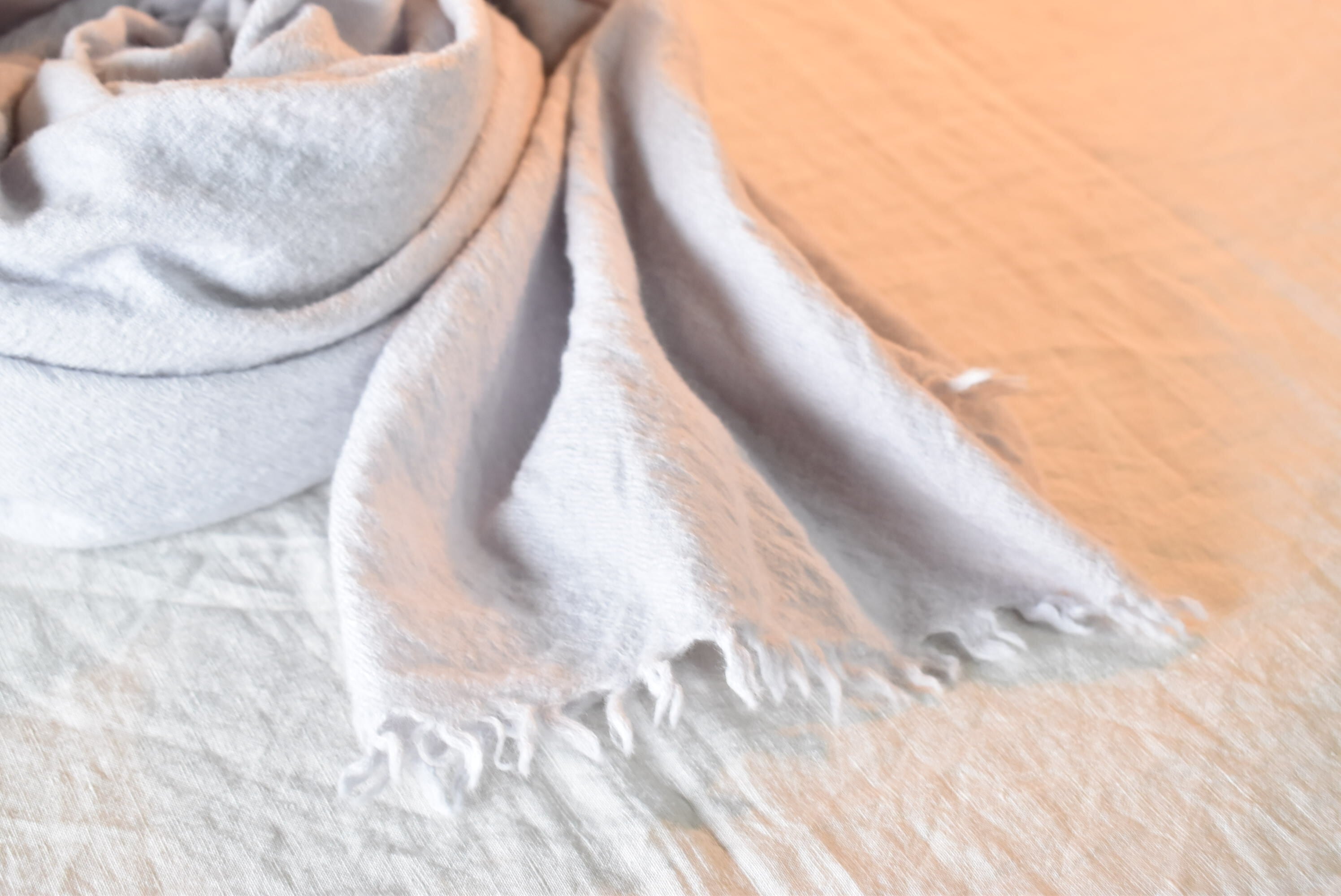 青みが入ったようなアイスグレーは、服の濃淡どちらにも似合う