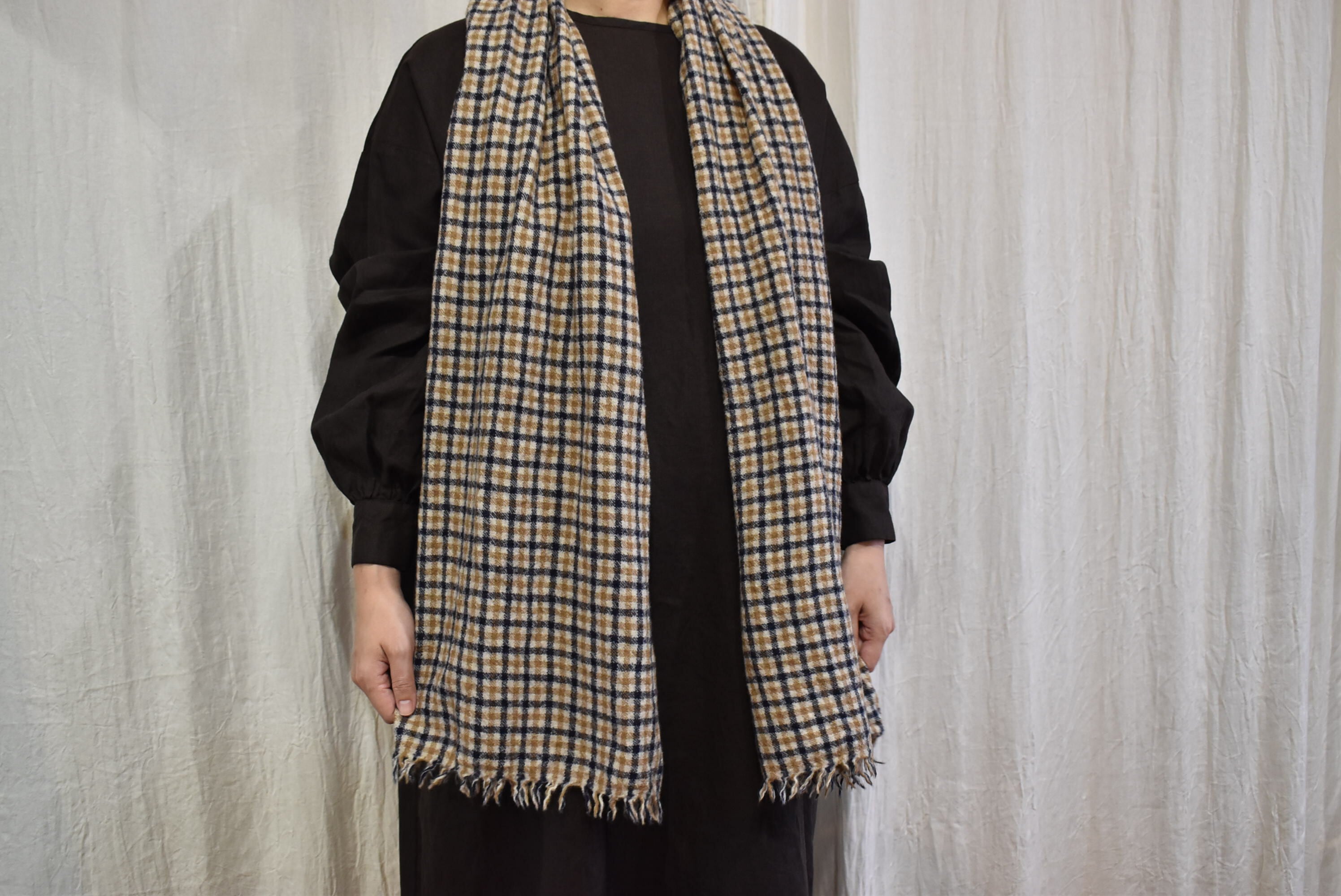 ネイビー・ベージュ・キャメルで構成したチェックは