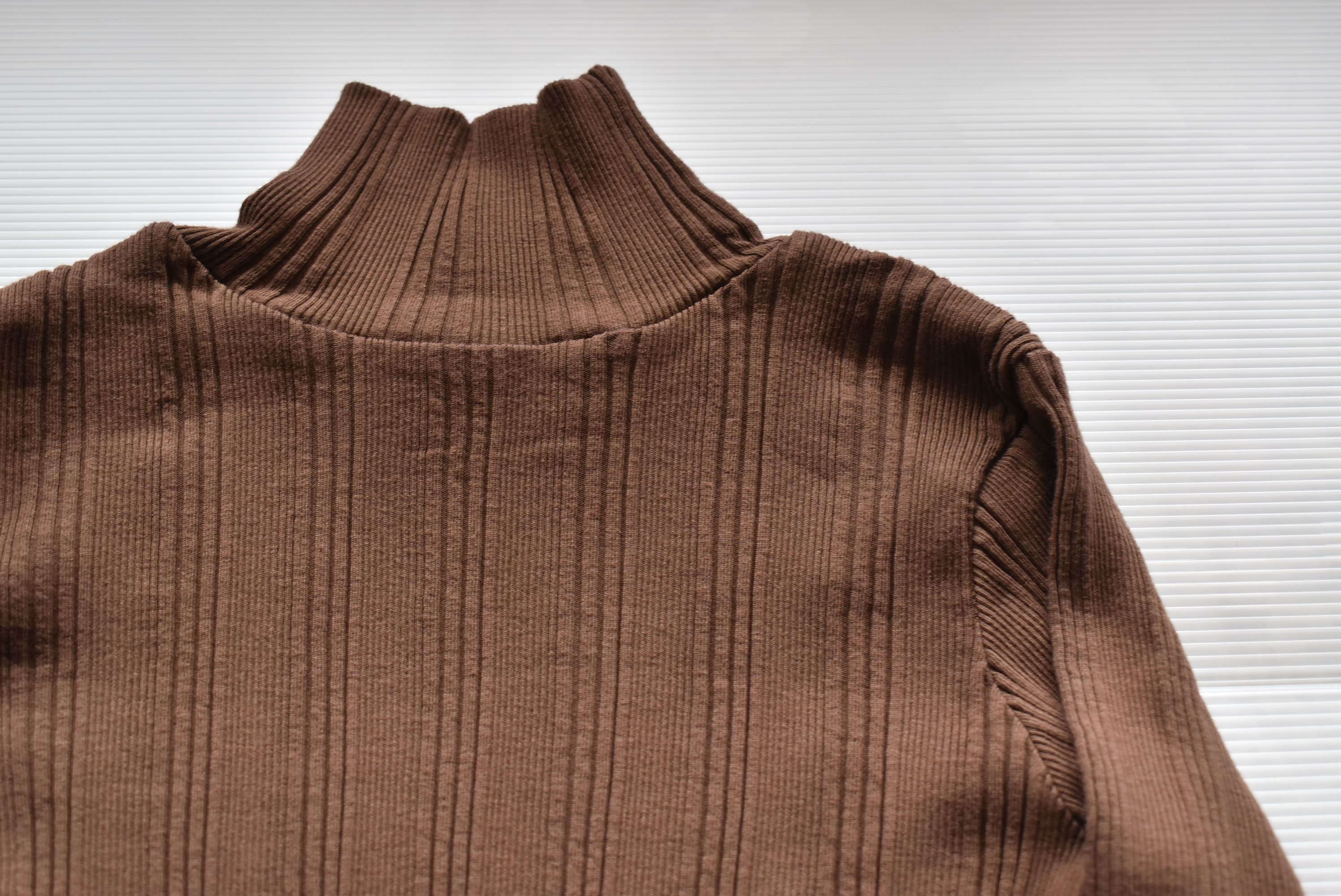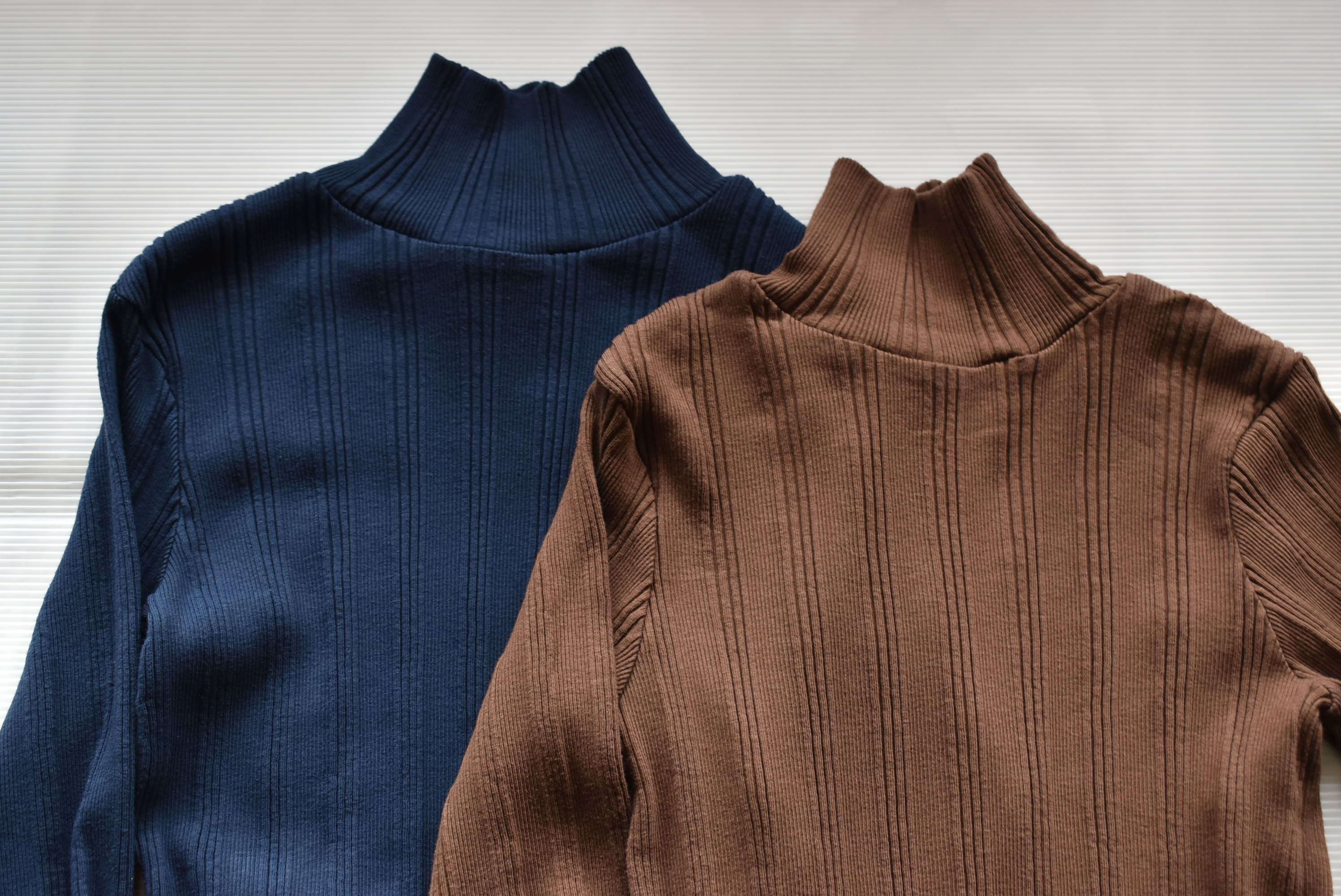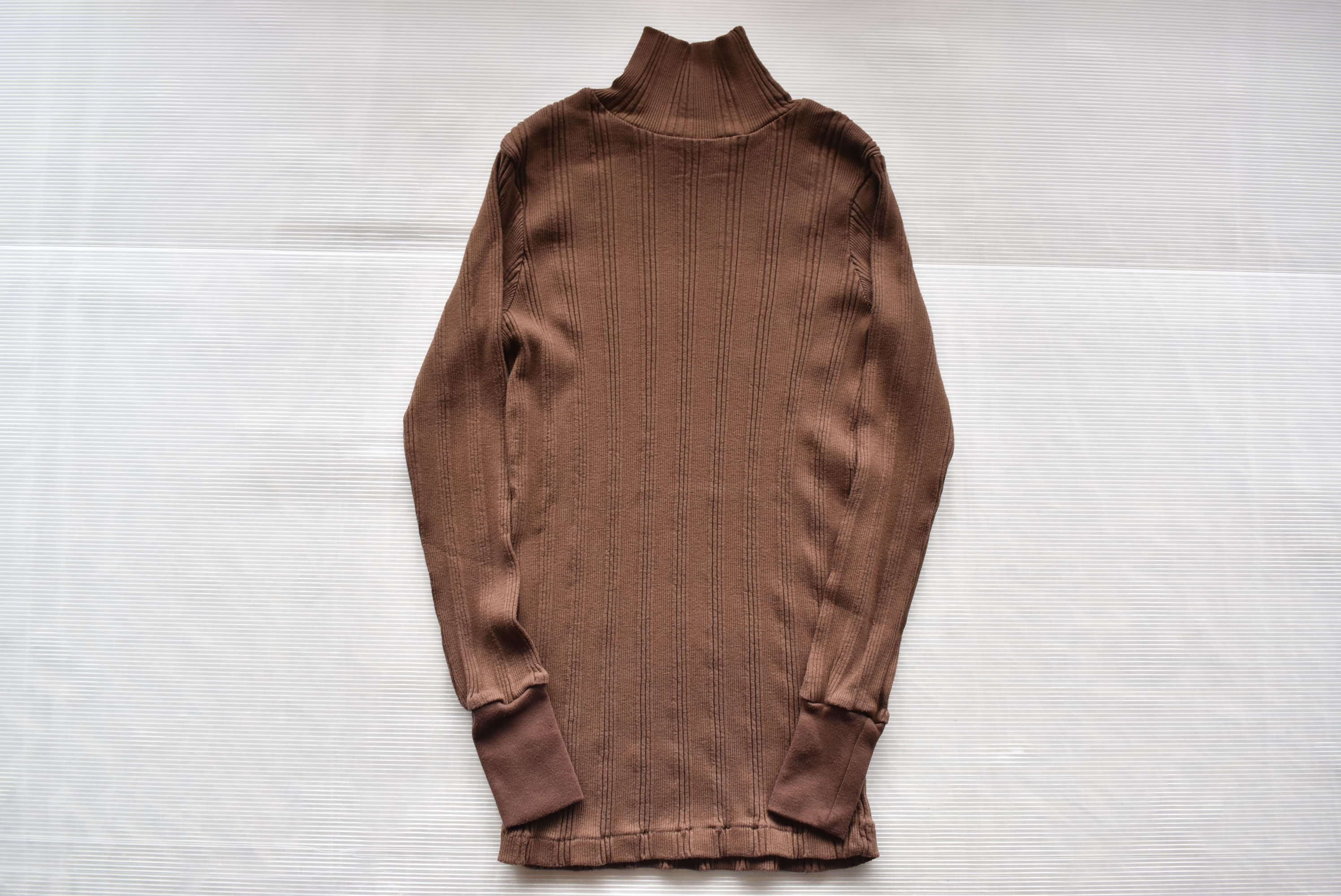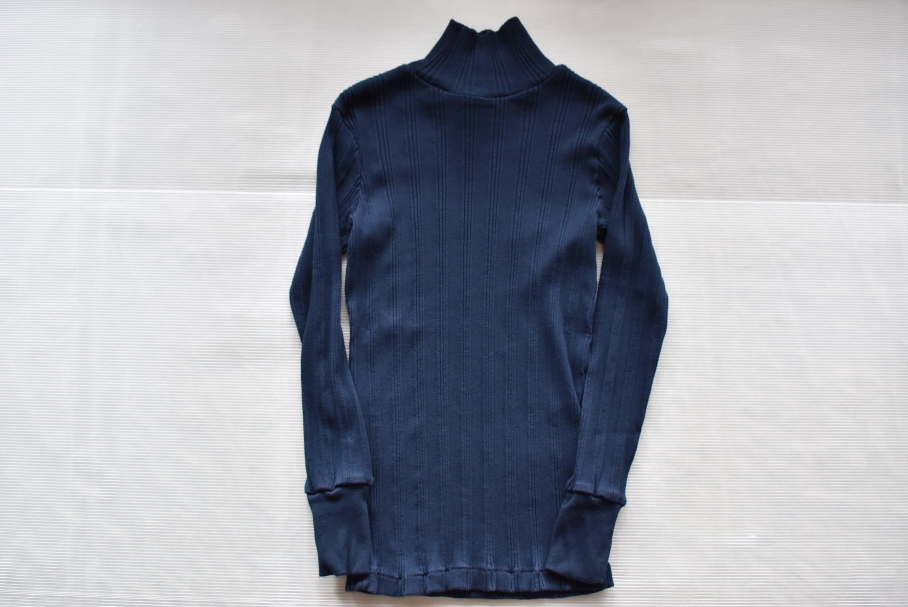 Ohh! : Cotton Silk Random Rib L/S Turtle / Navy・Brown