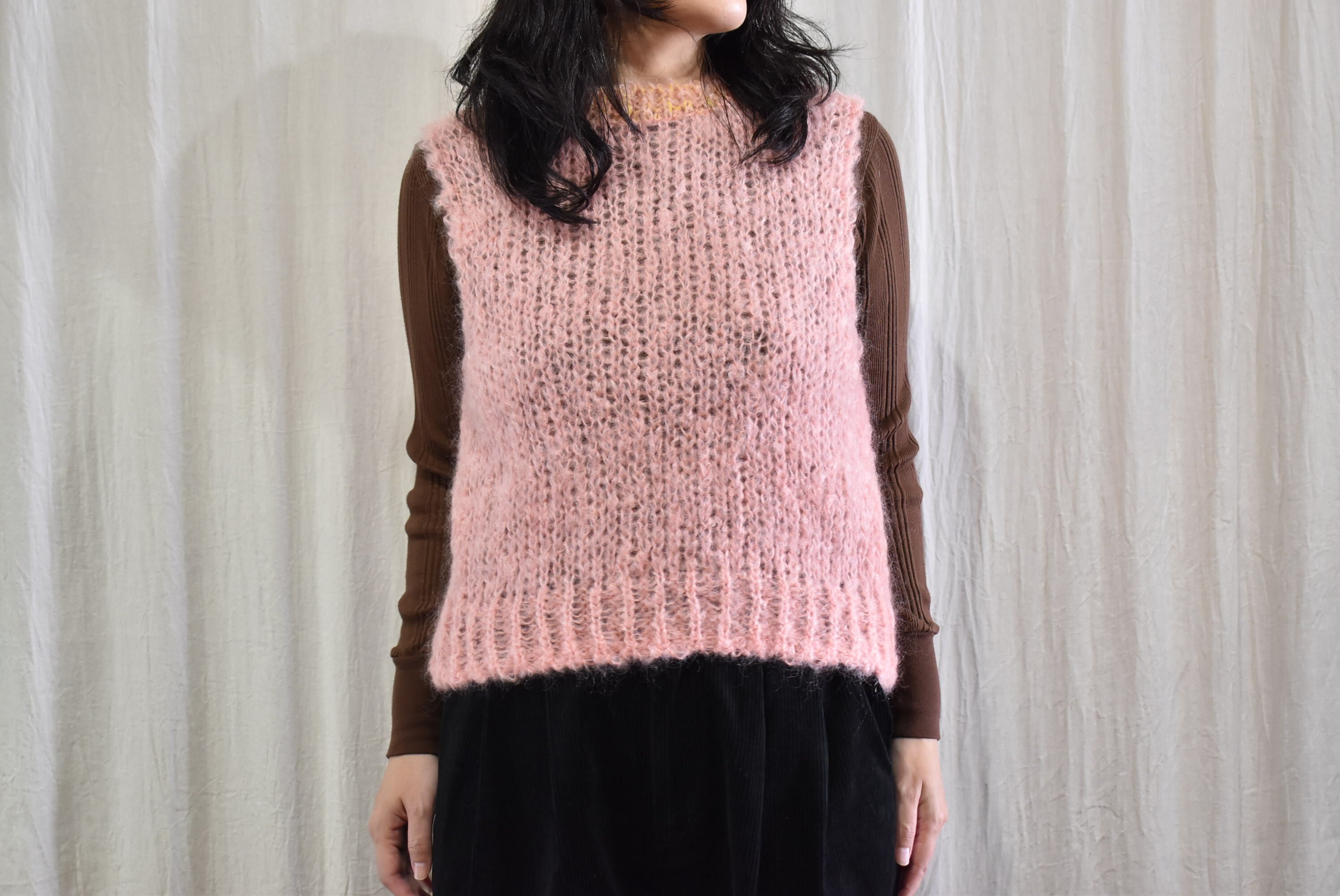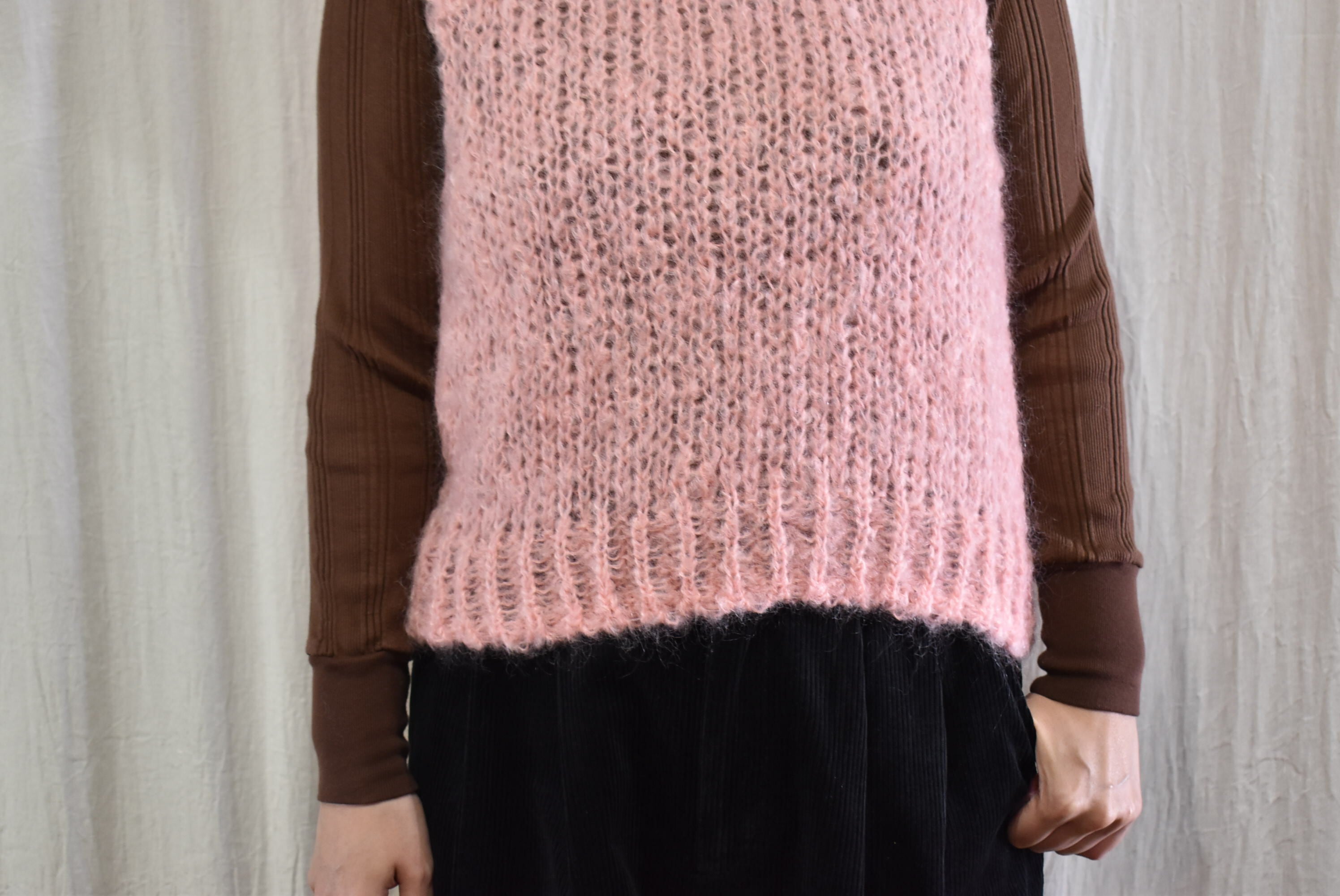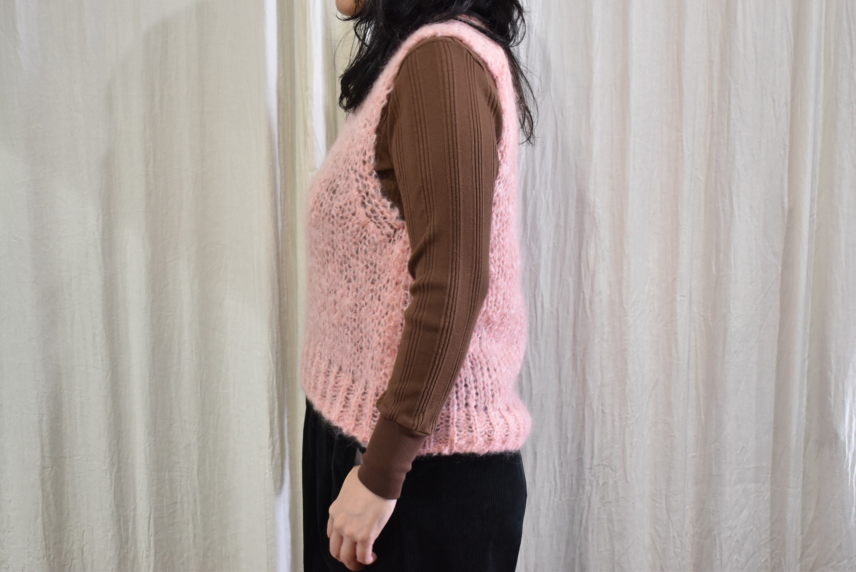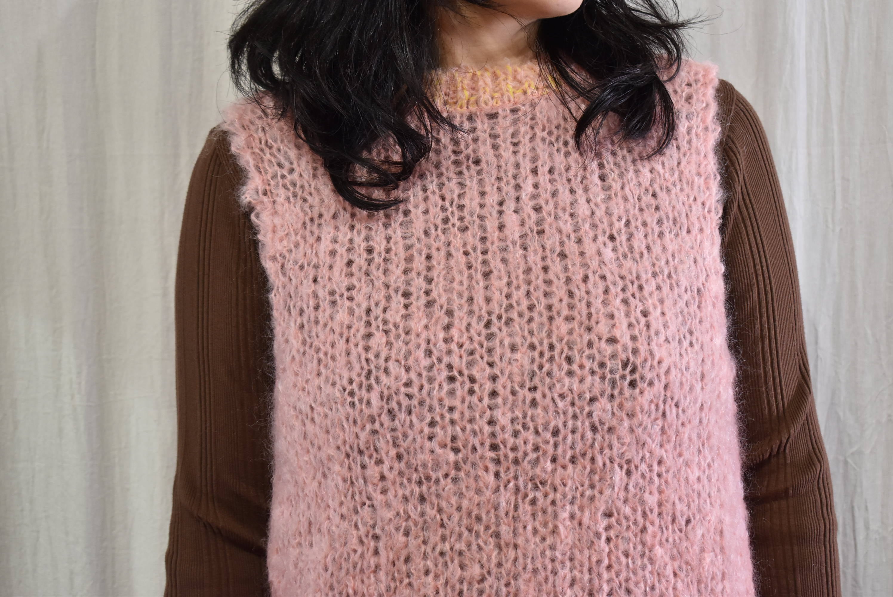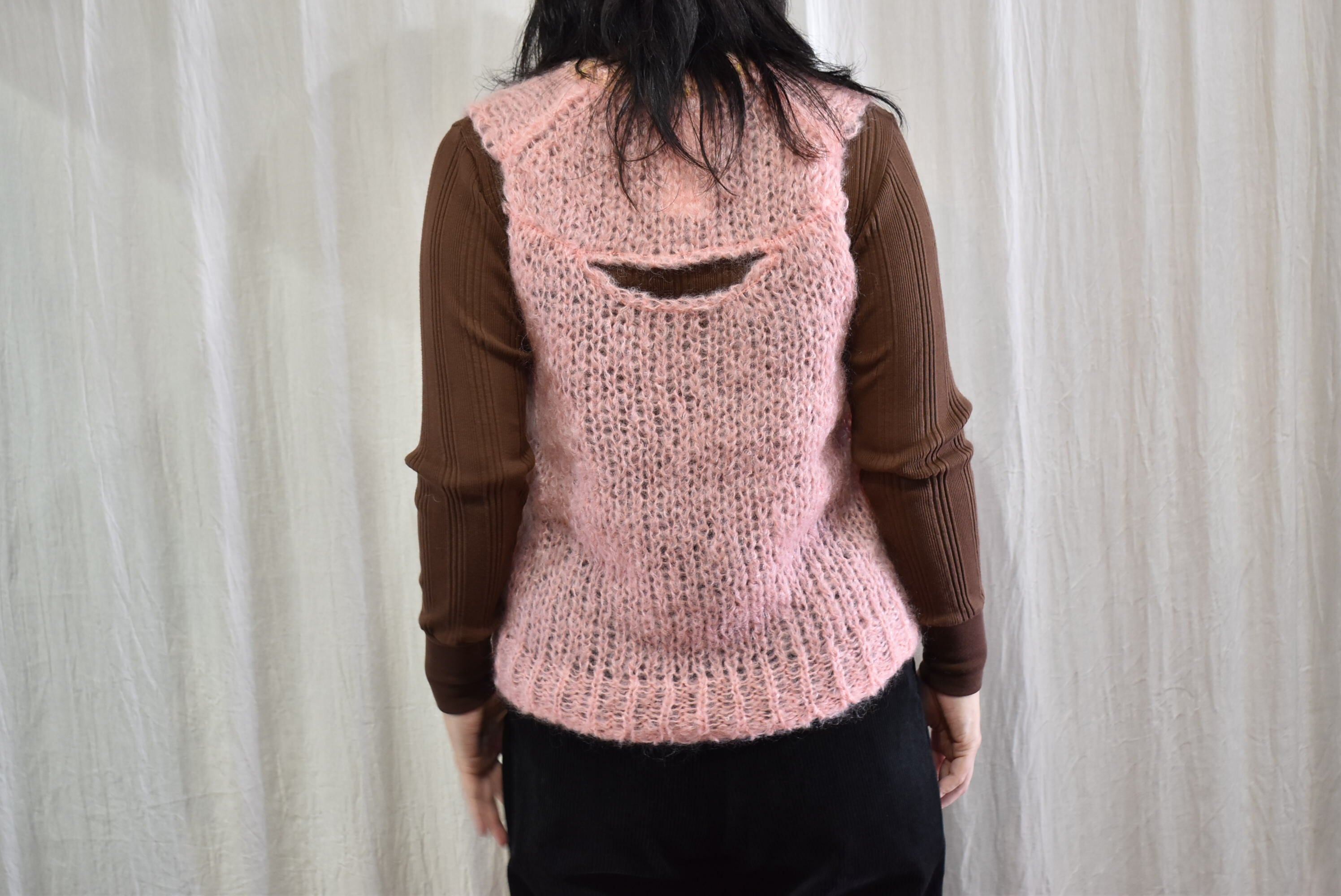 背中にちょっとしたデザインを加えたモヘアのベスト。
