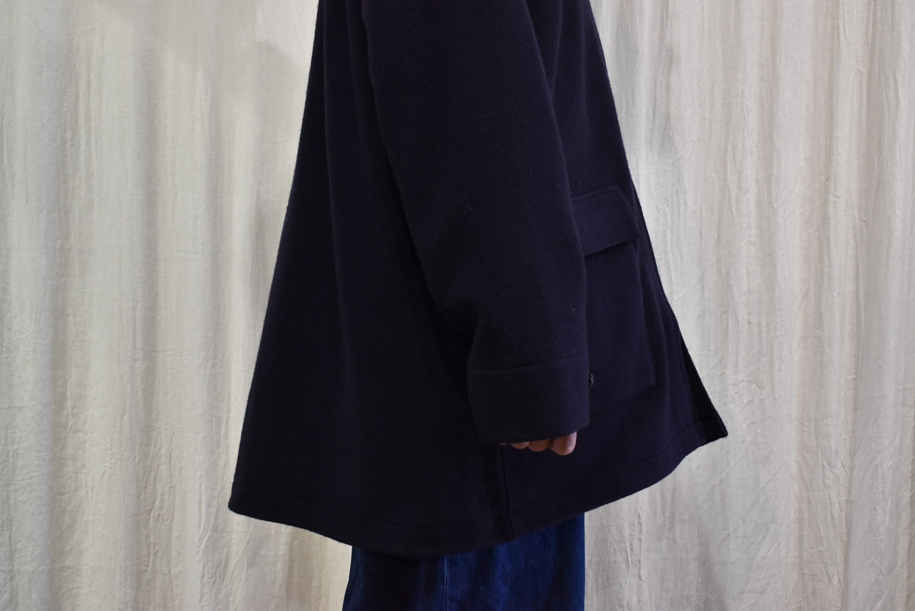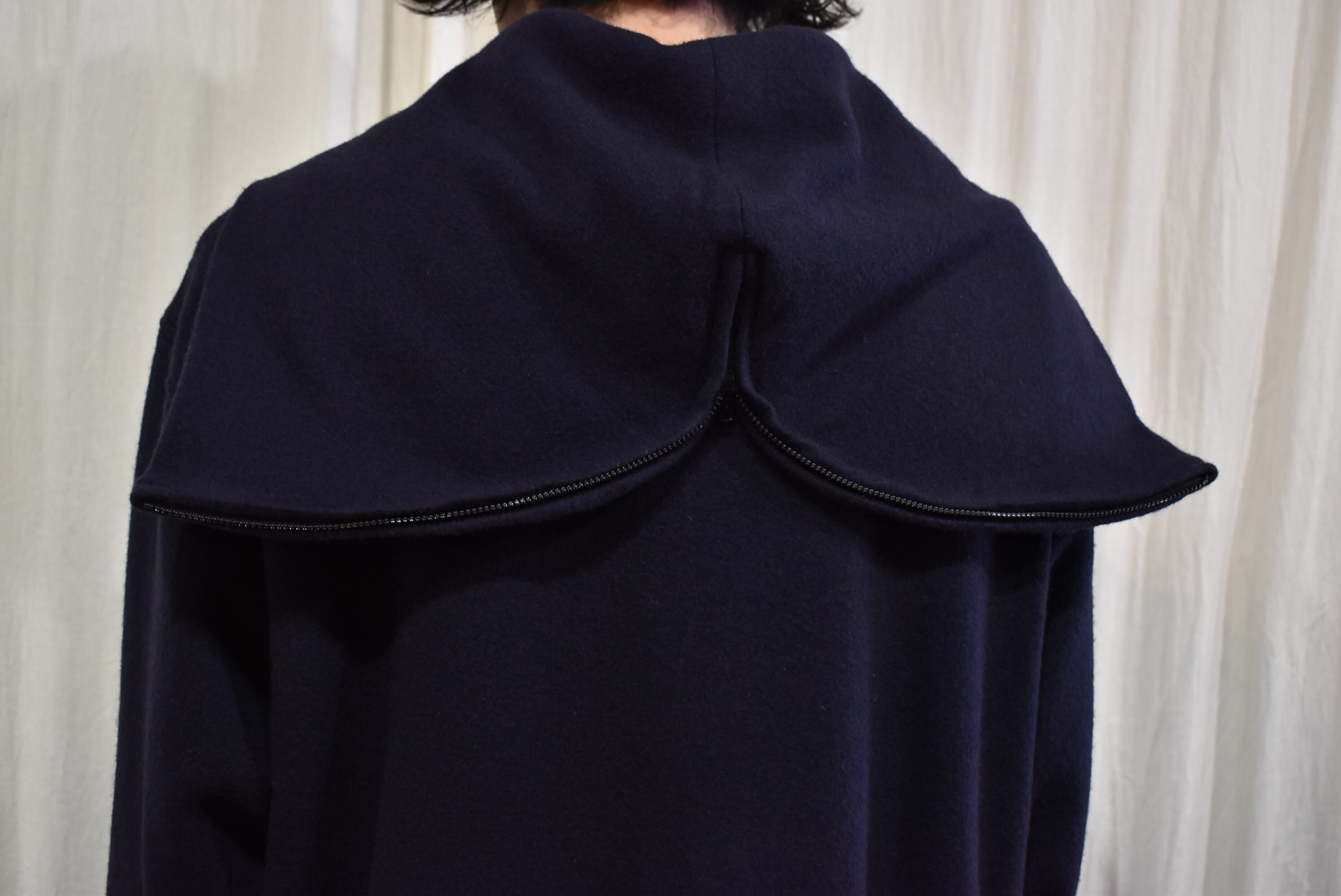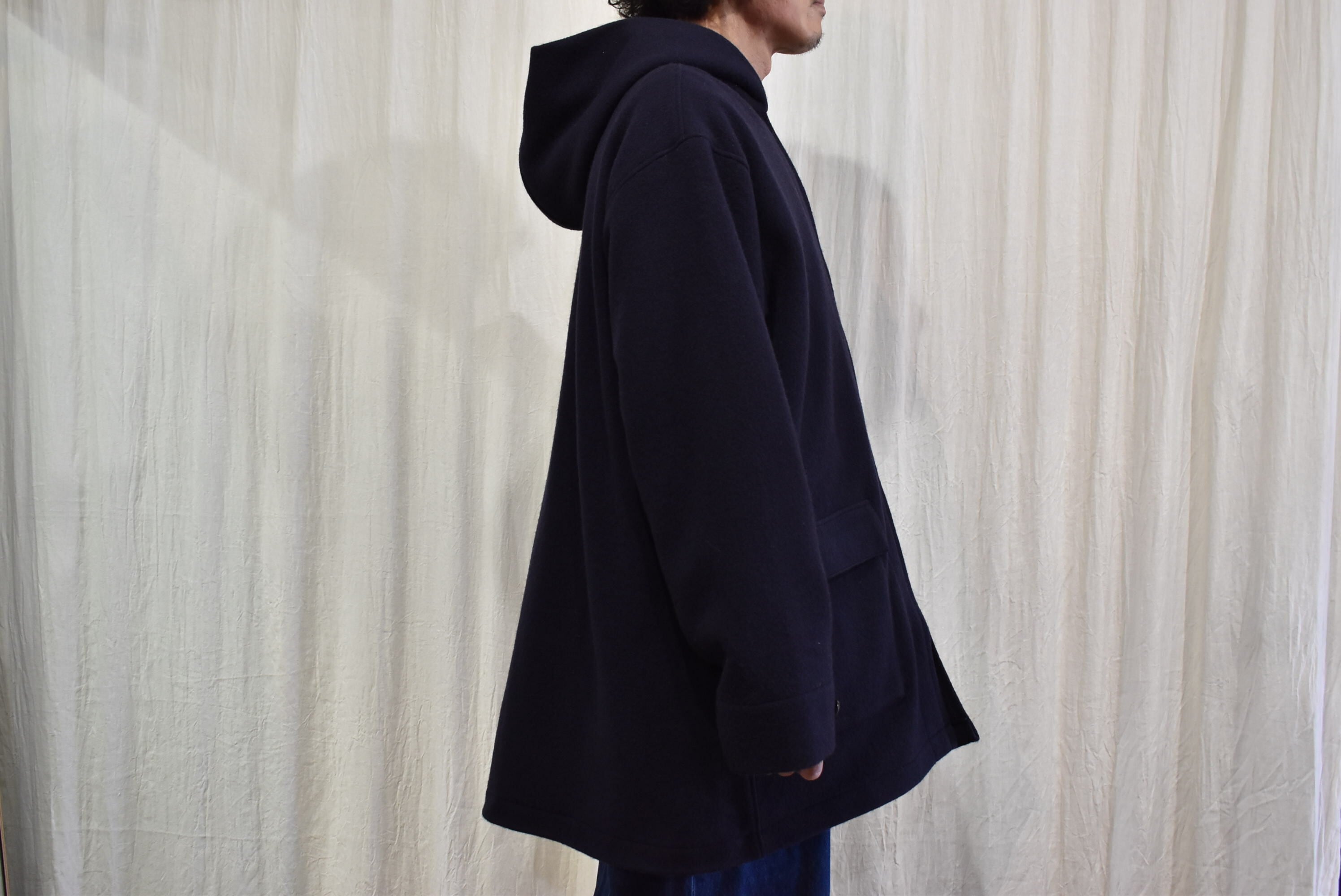 両面縮絨をしたウール素材を用いたガゼットパーカー。