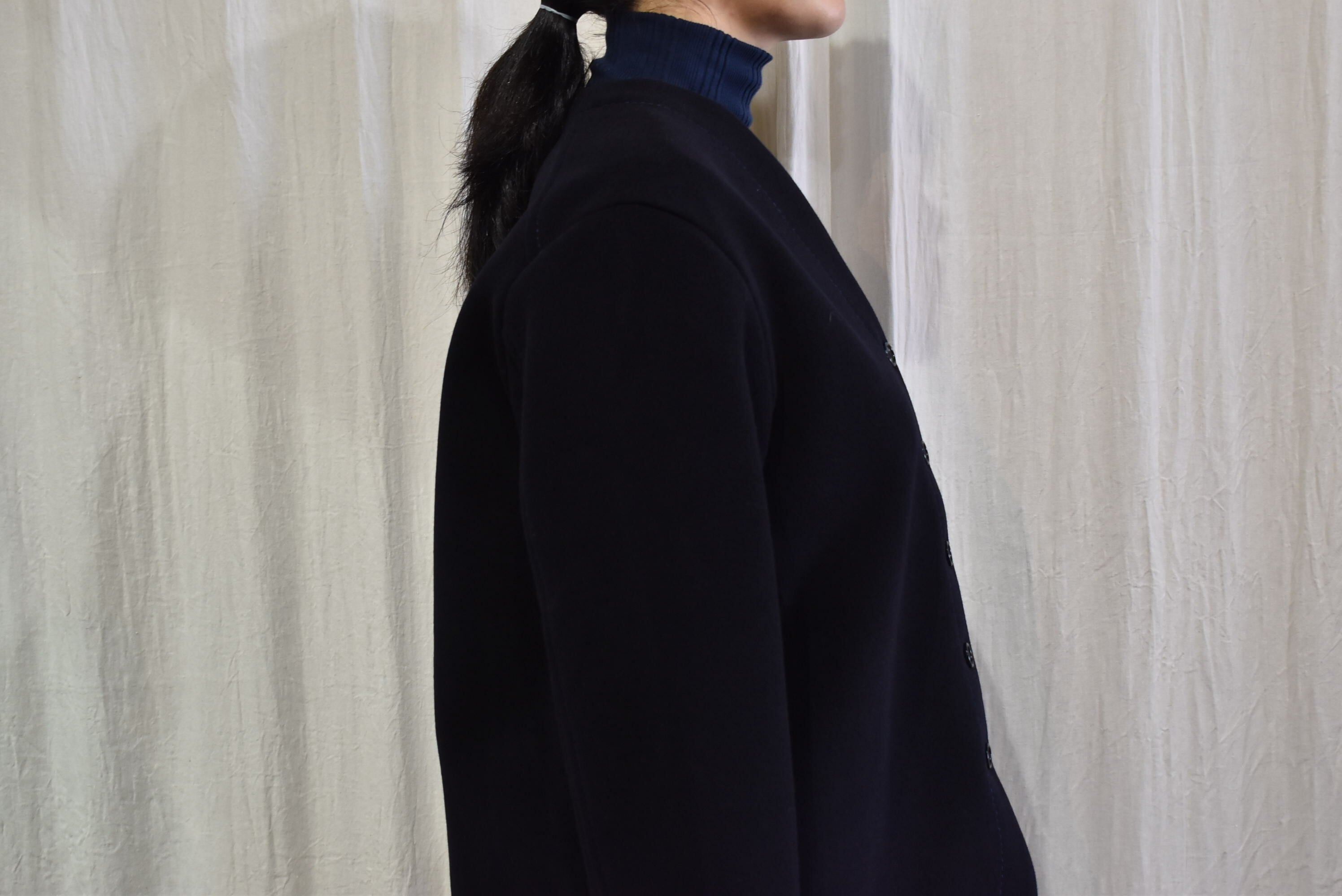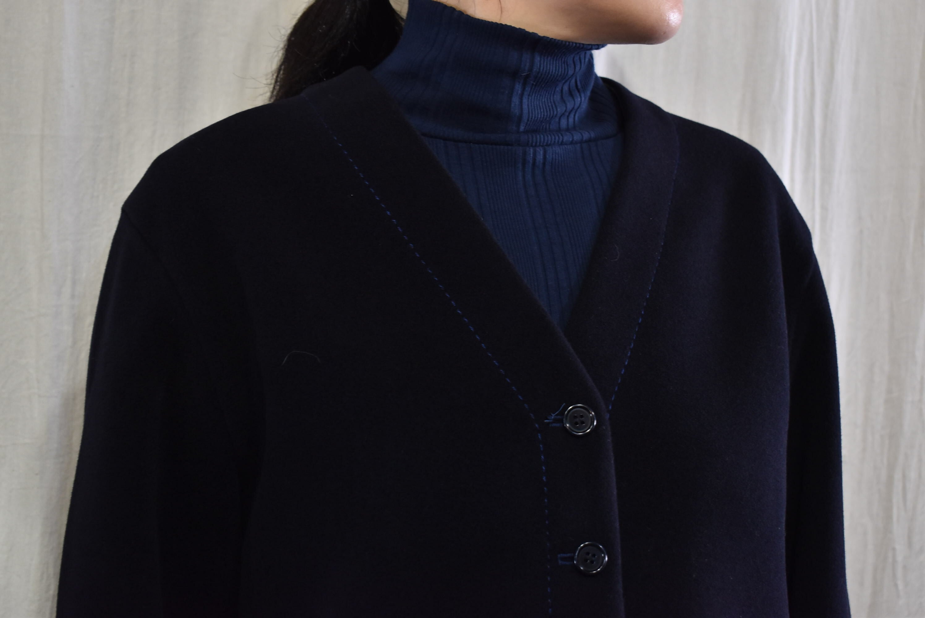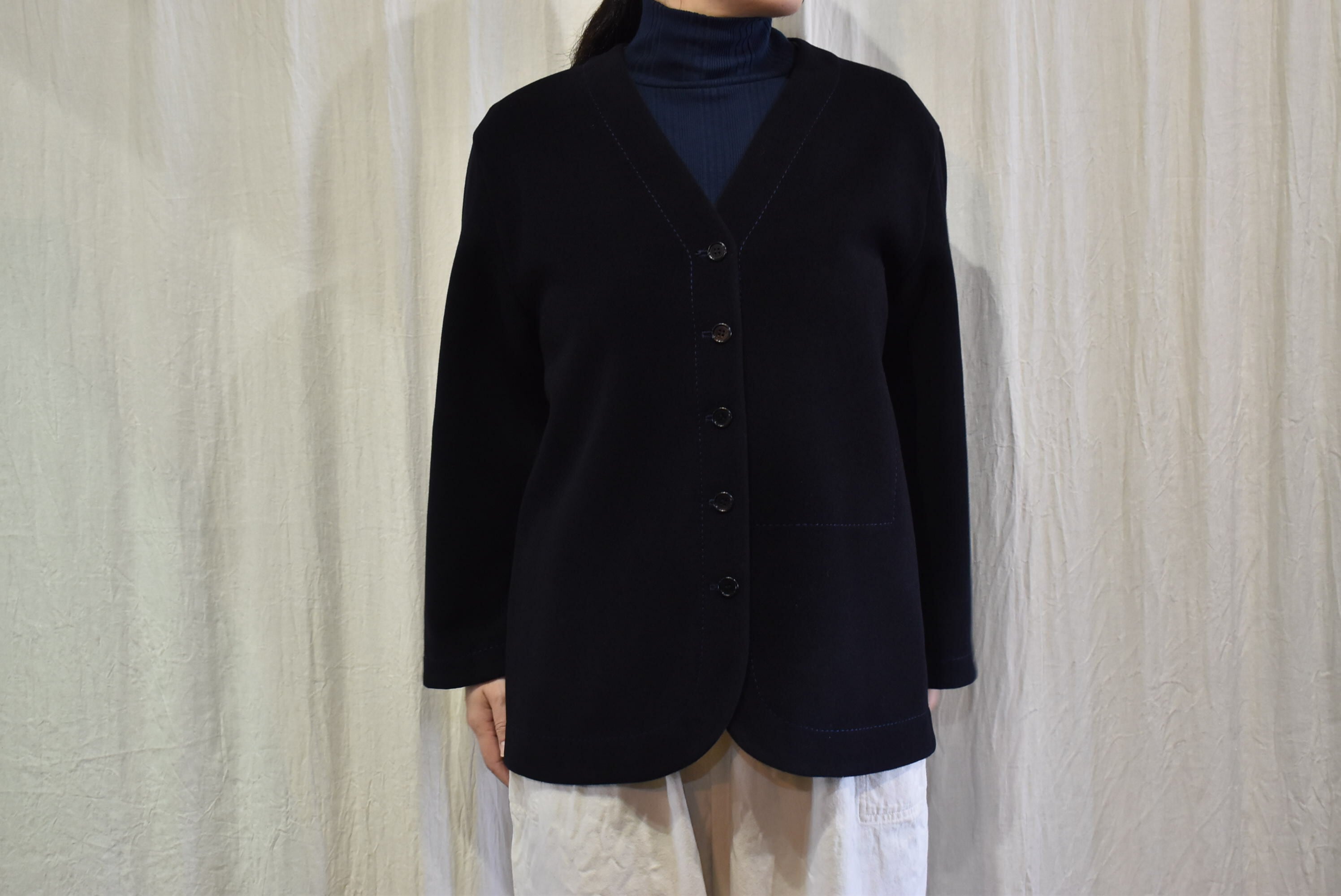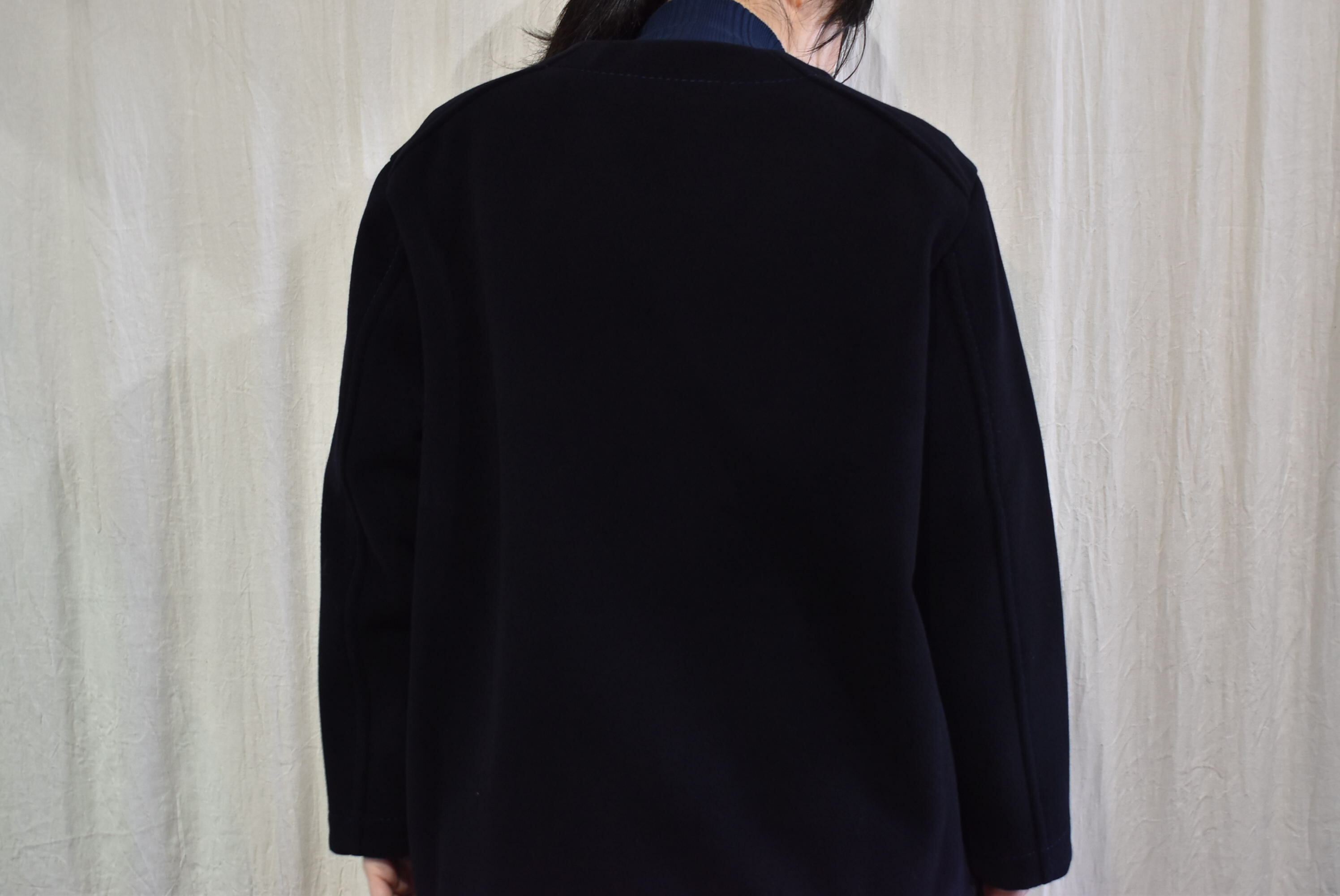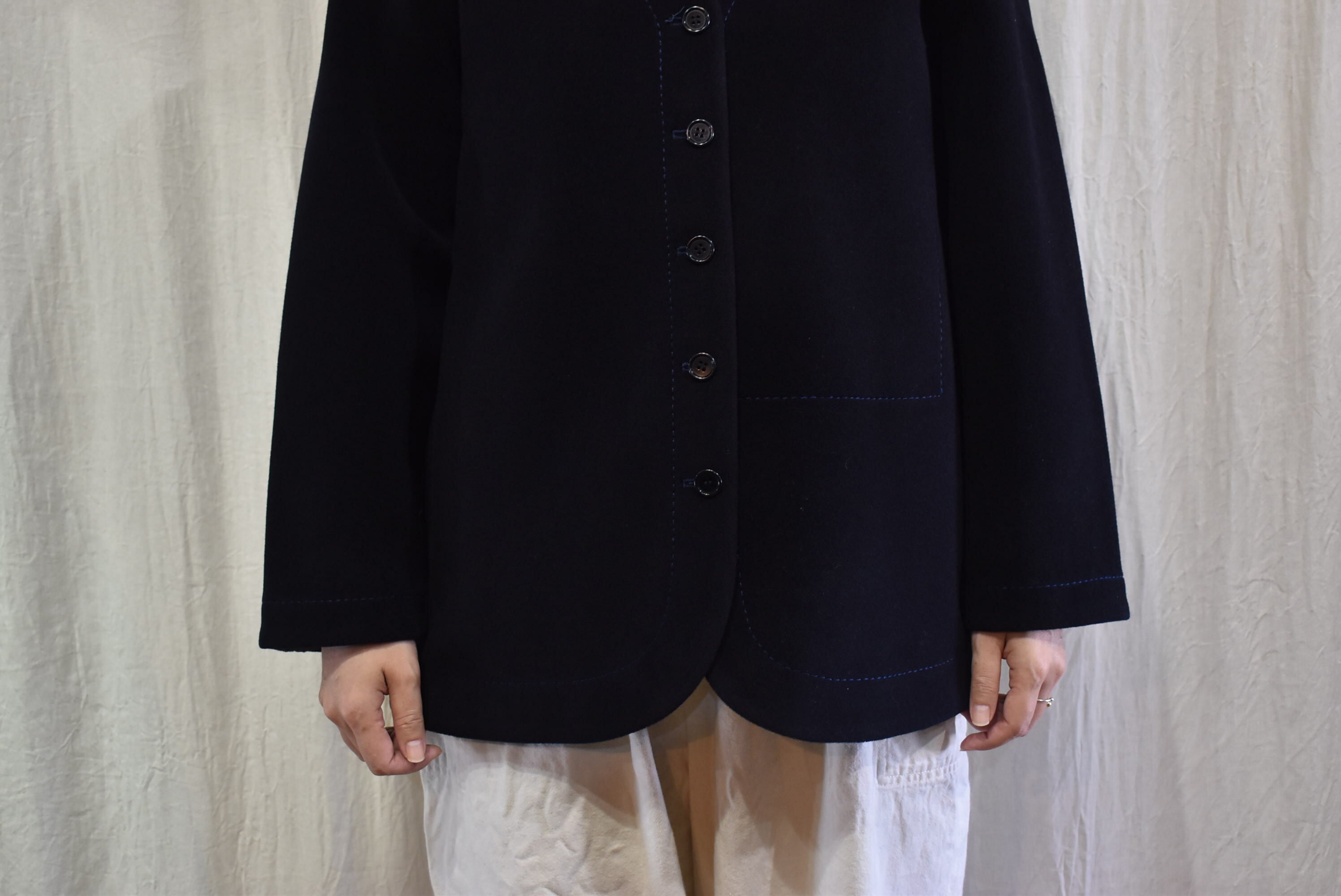 homspun : 2重織メルトンノーカラーJK ネイビー