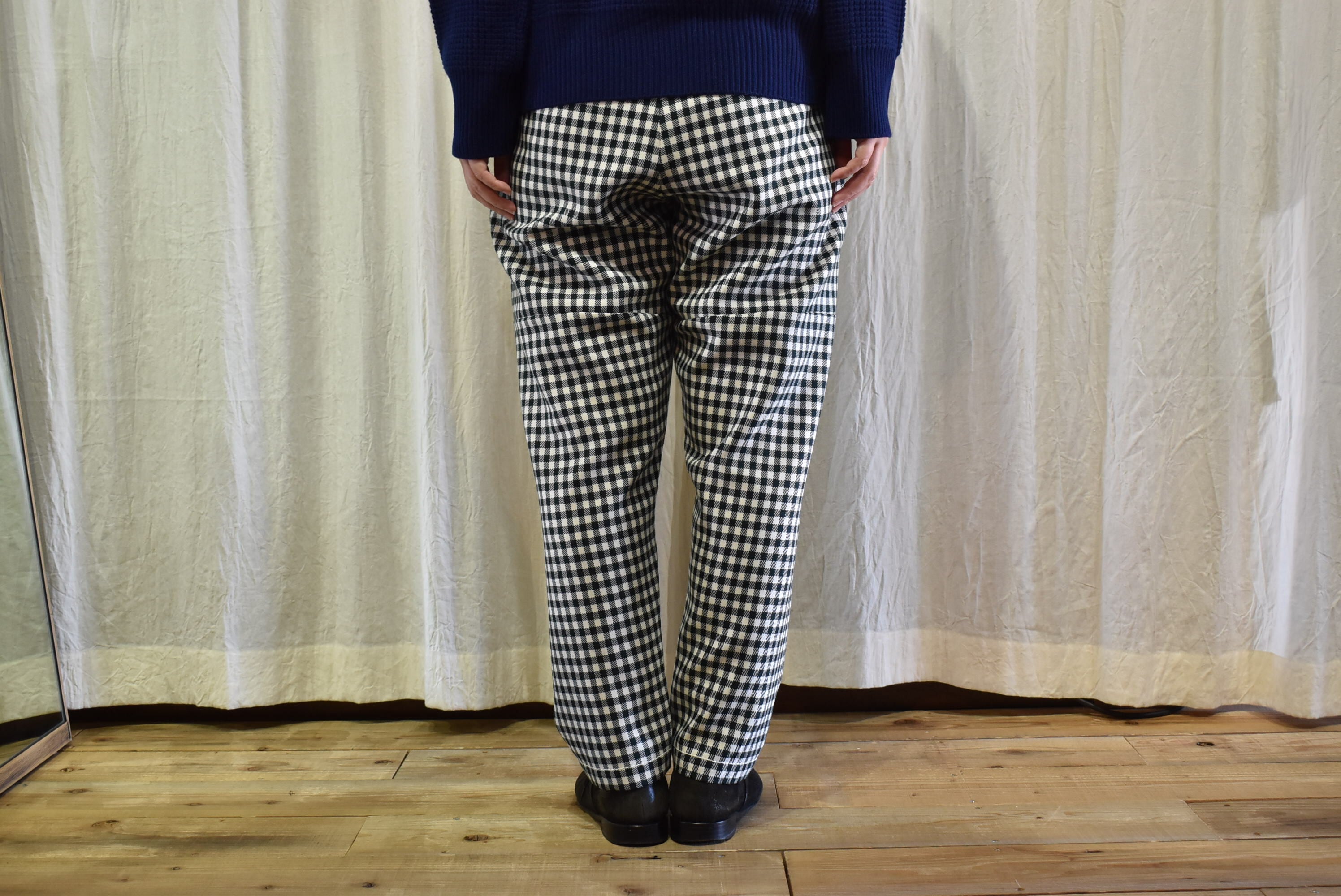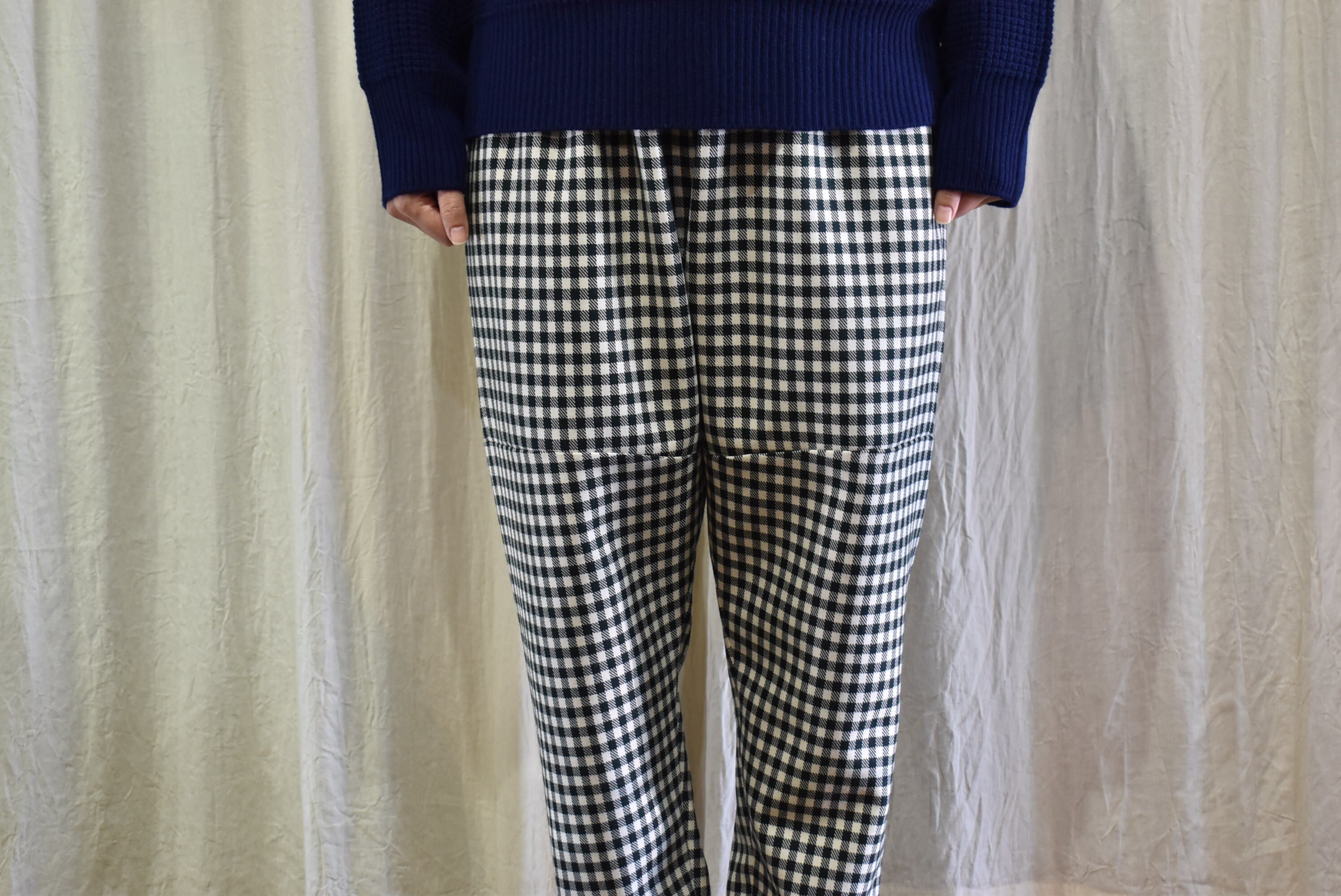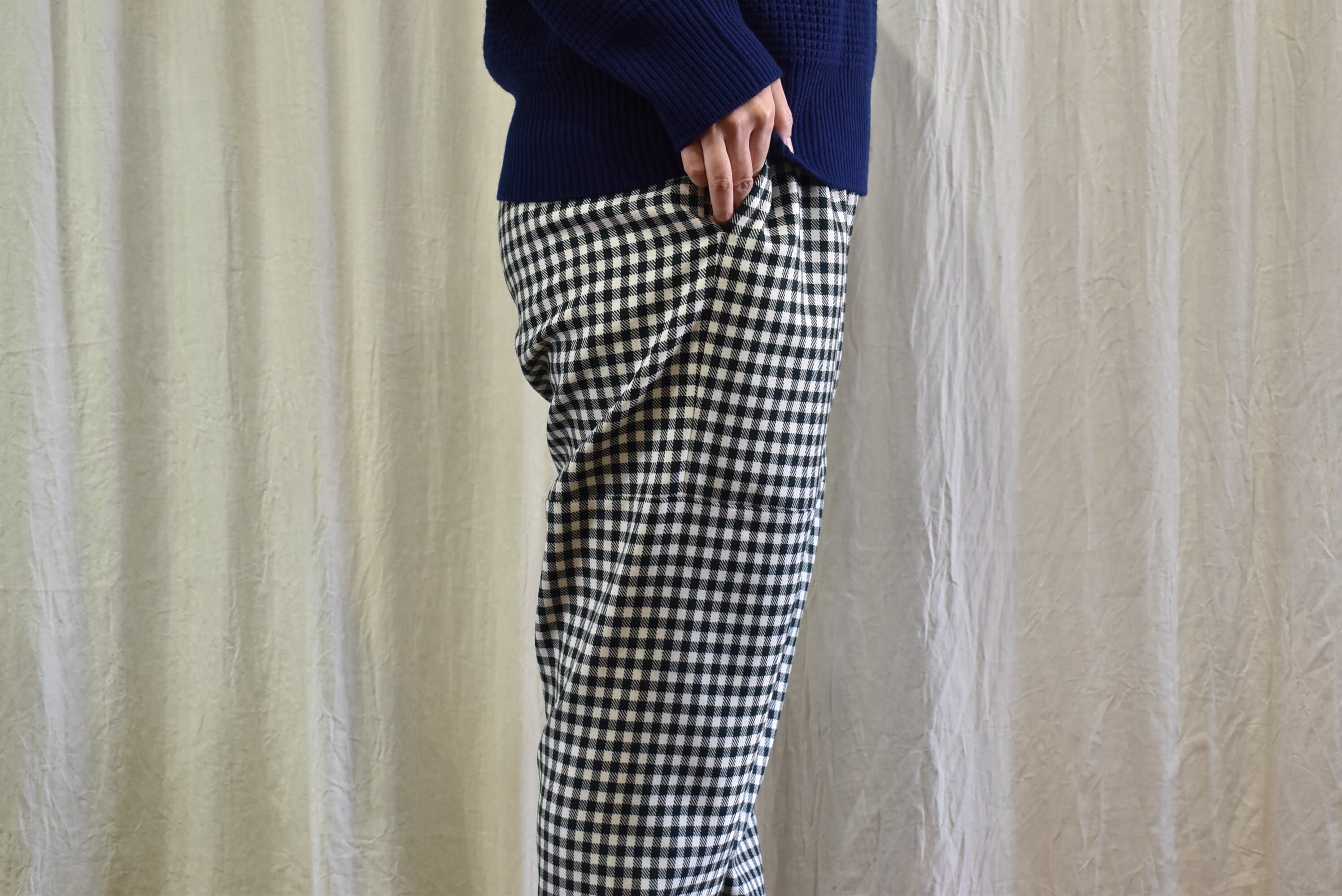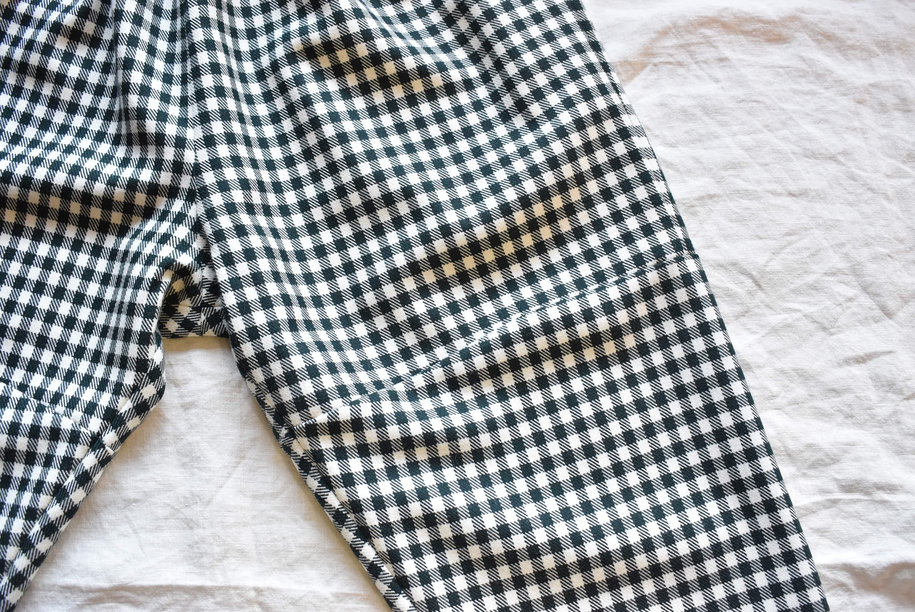 homspun : ウールギンガムギャザーPT オフホワイト×ダークグリーン