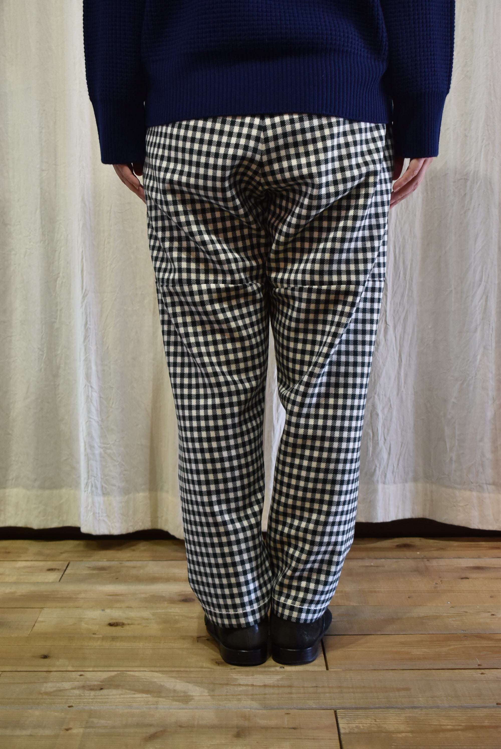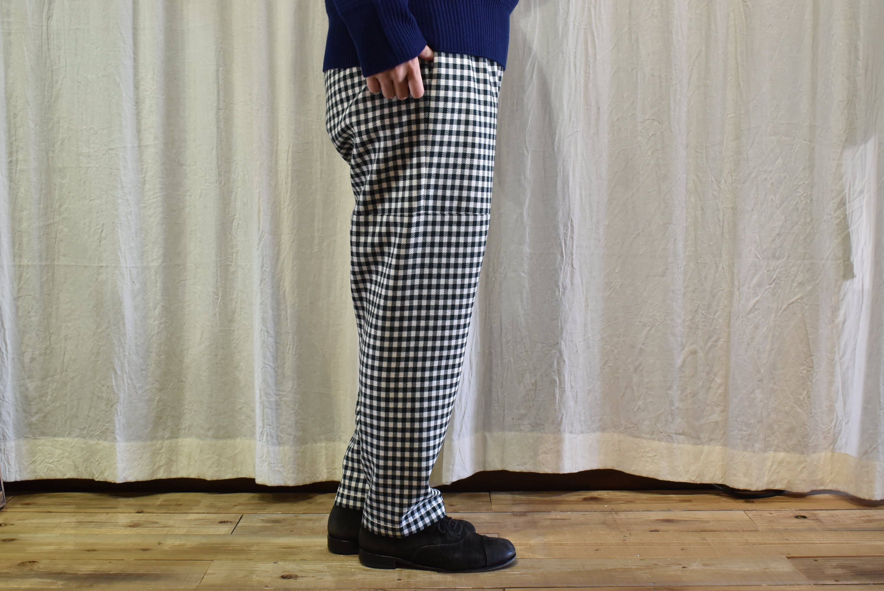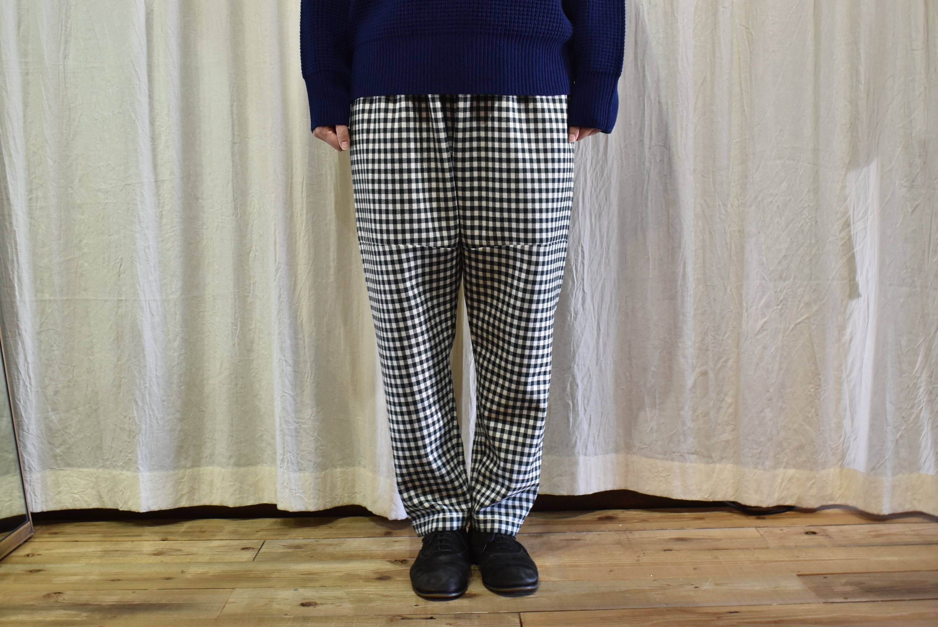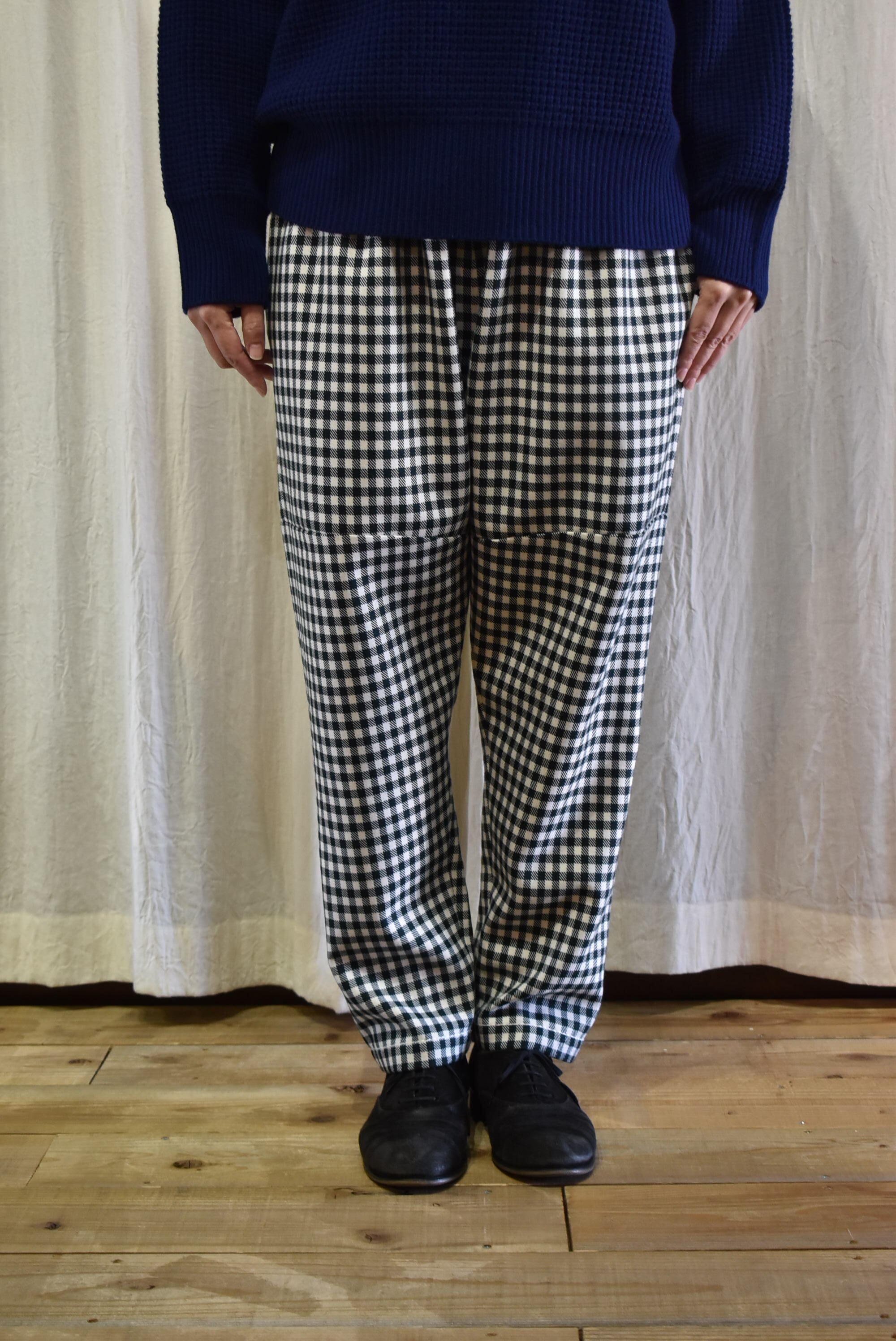 homspun : ウールギンガムギャザーPT オフホワイト×ダークグリーン