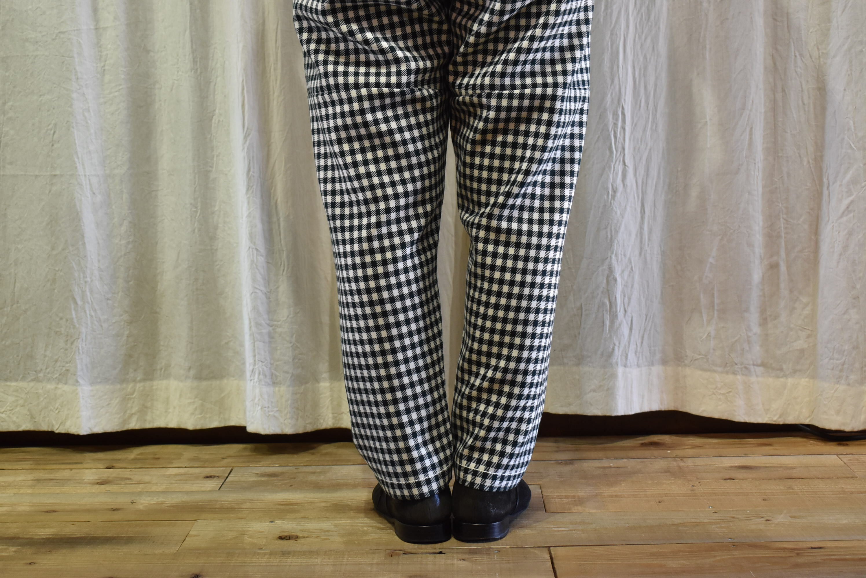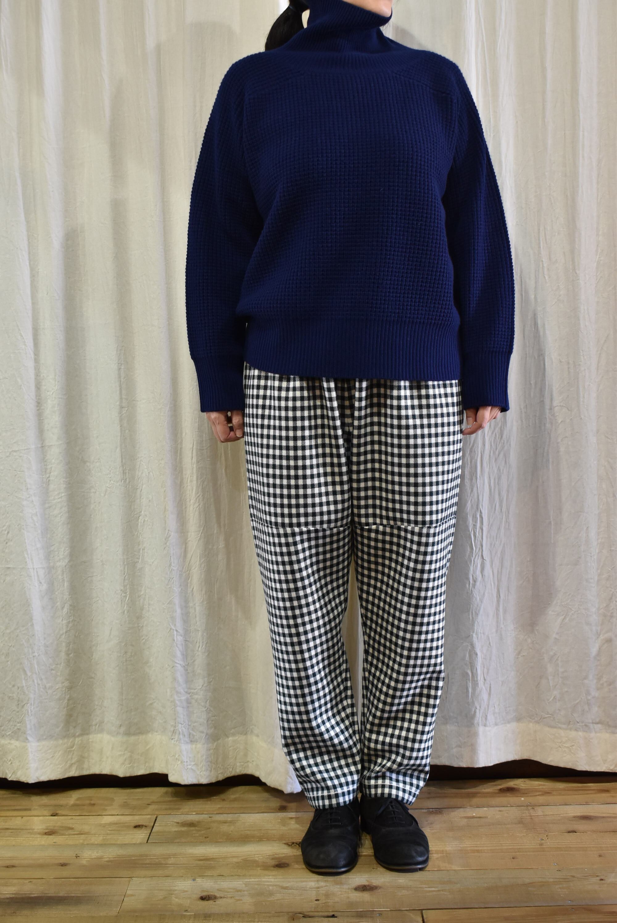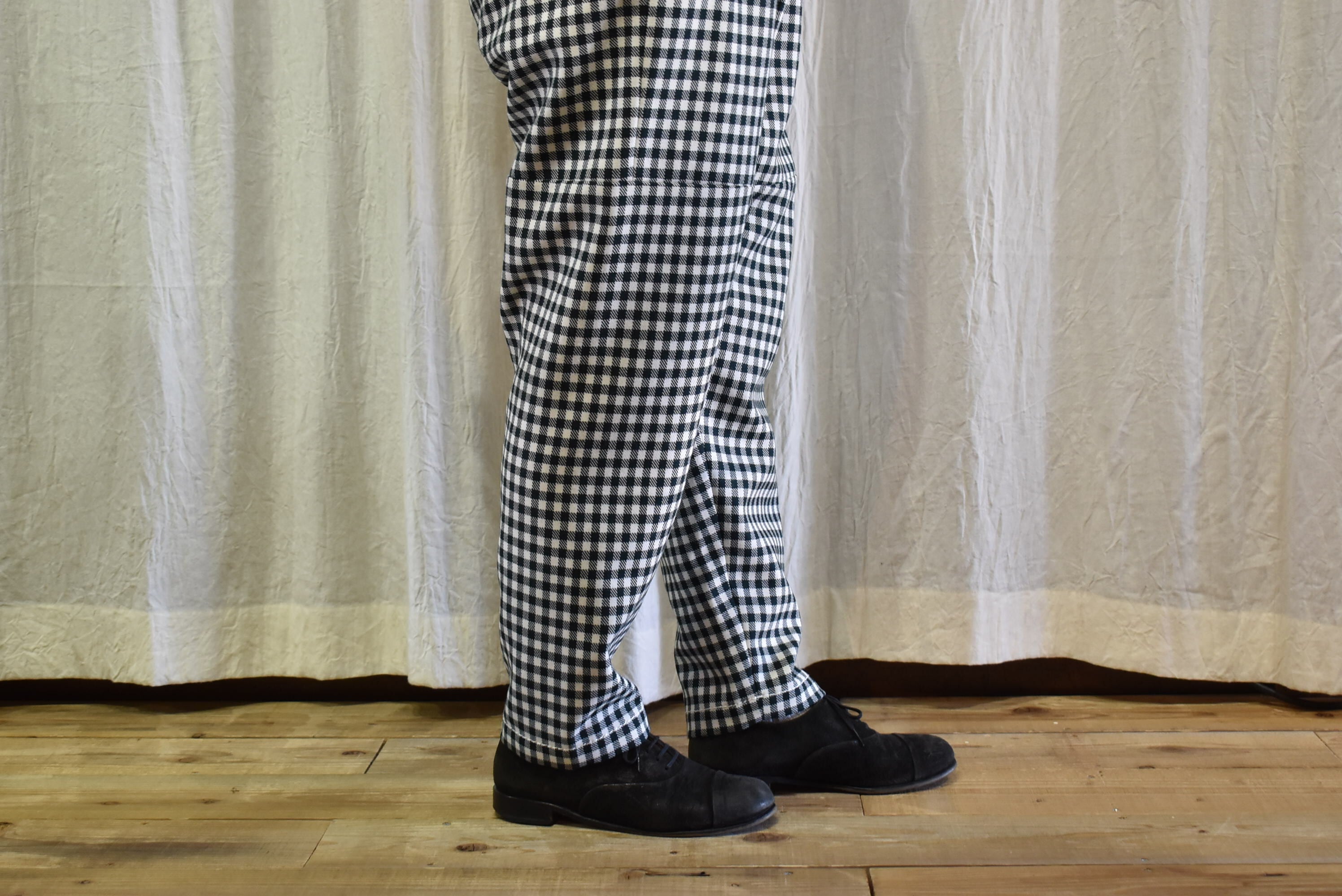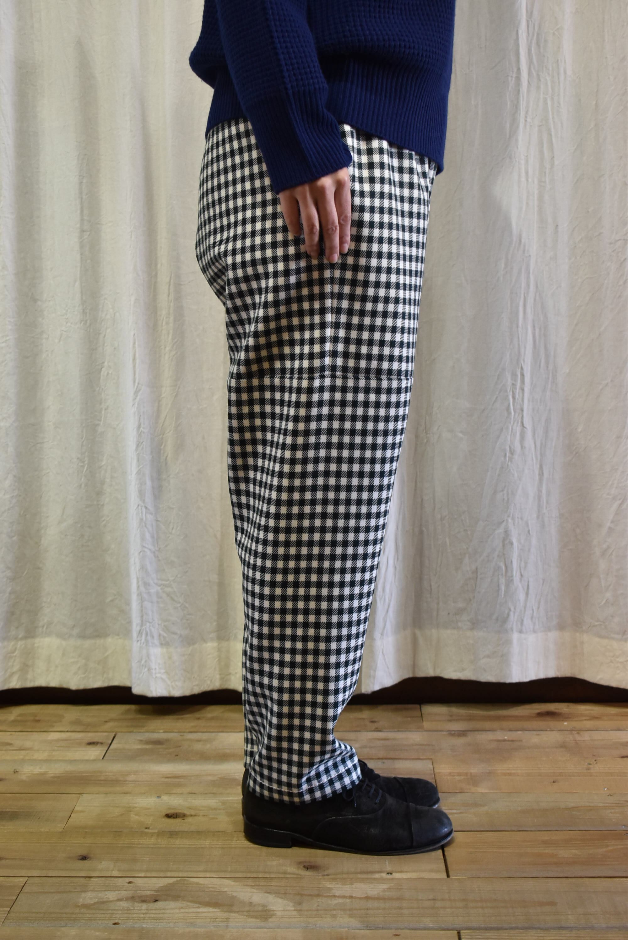 homspun : ウールギンガムギャザーPT オフホワイト×ダークグリーン