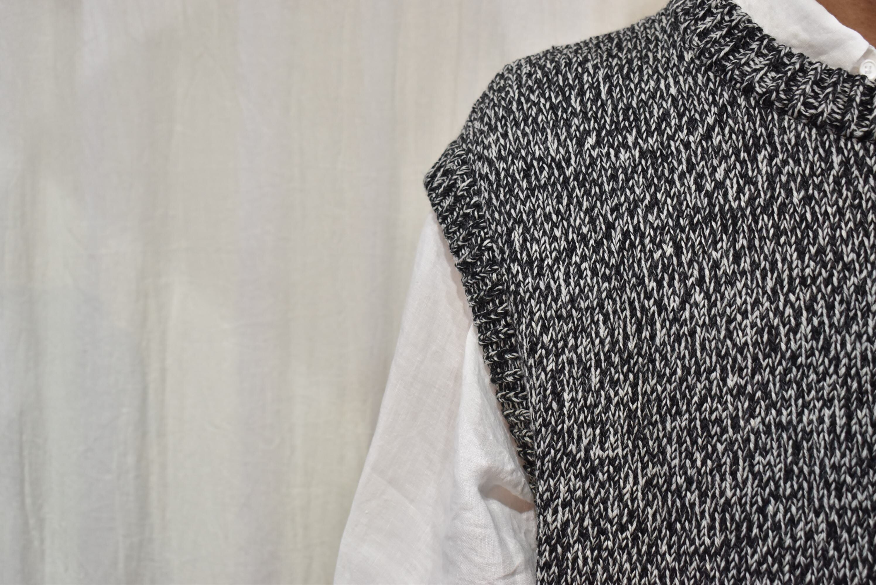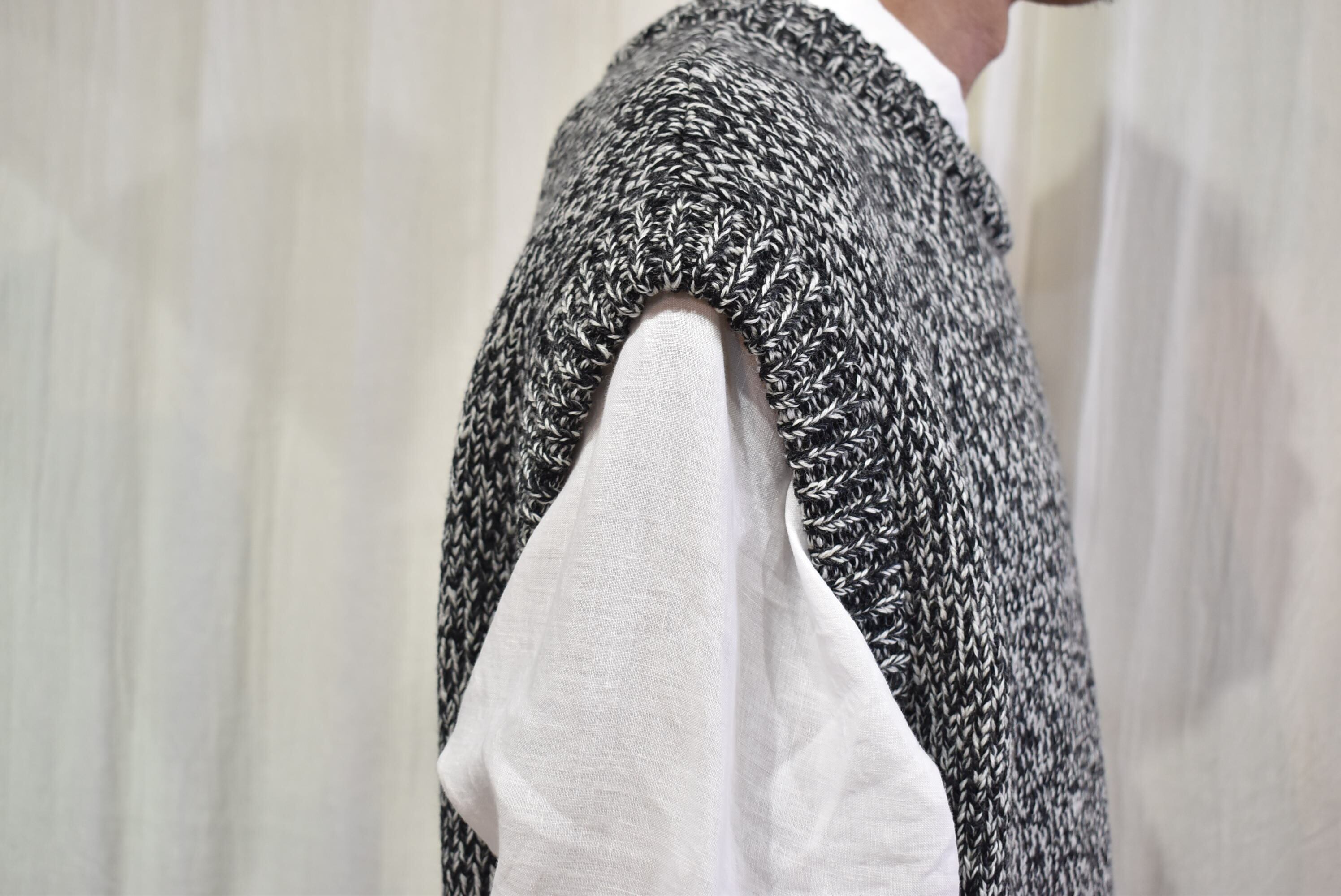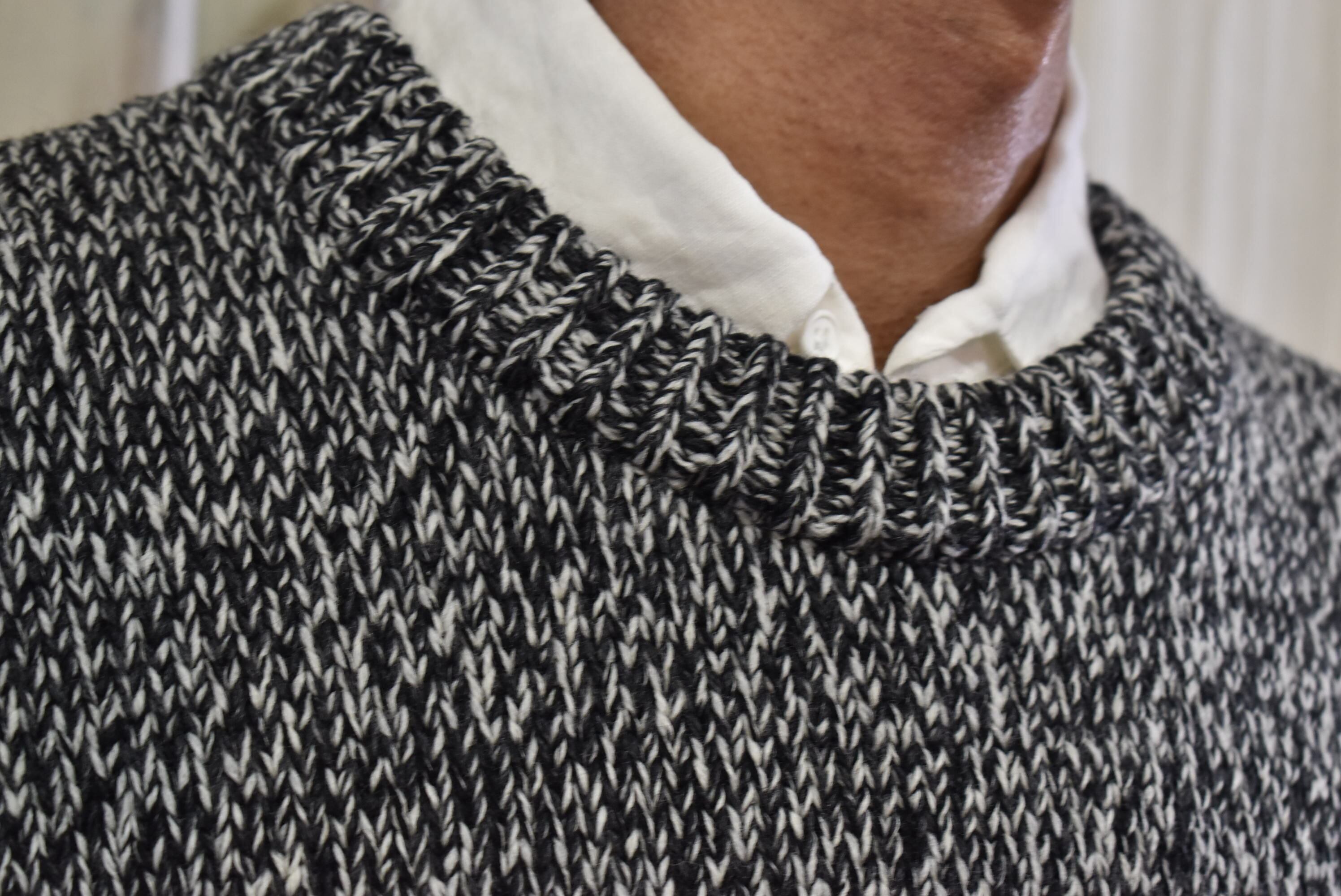 ウール×コットンの糸を撚りメランジカラーのセーターを作製。
