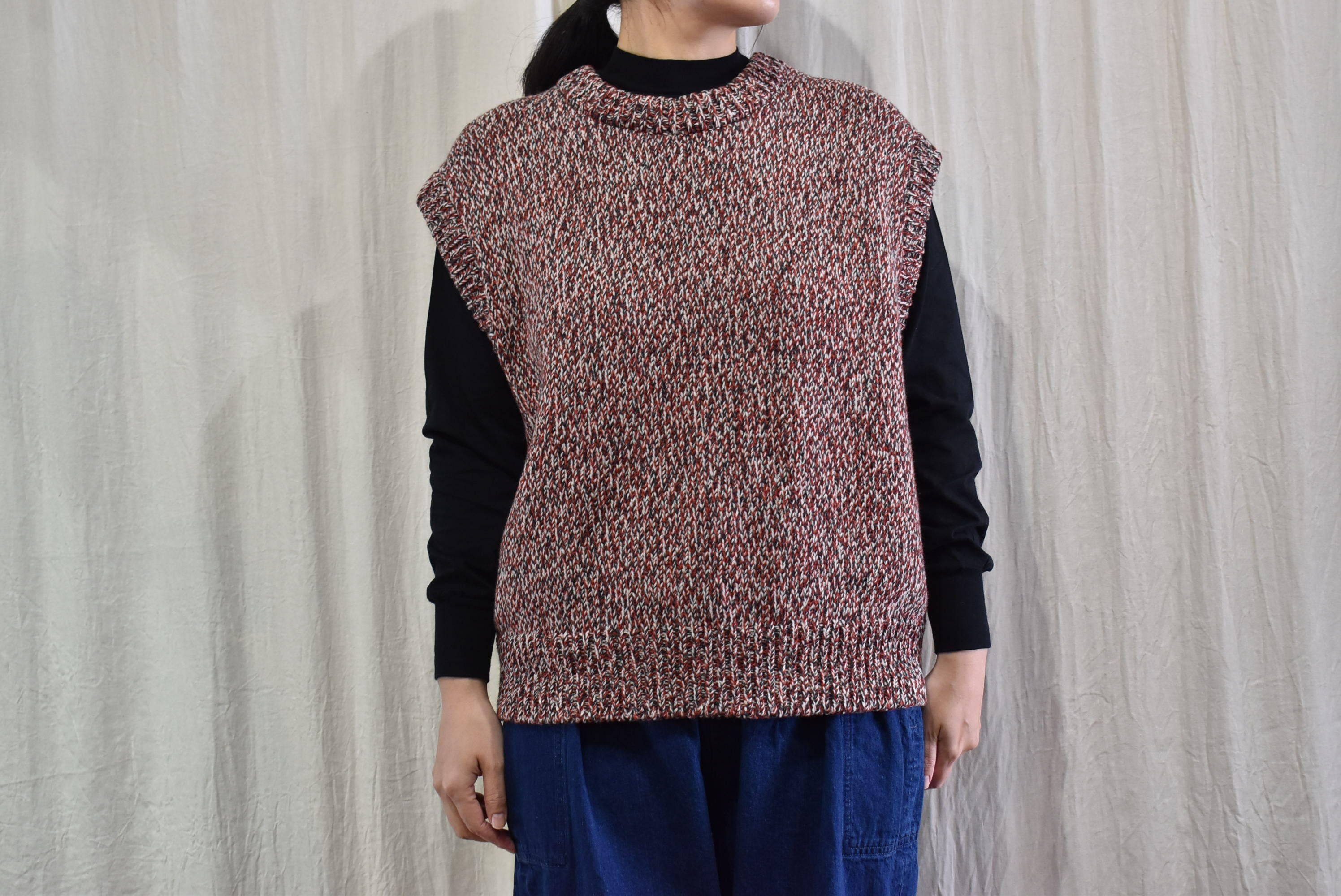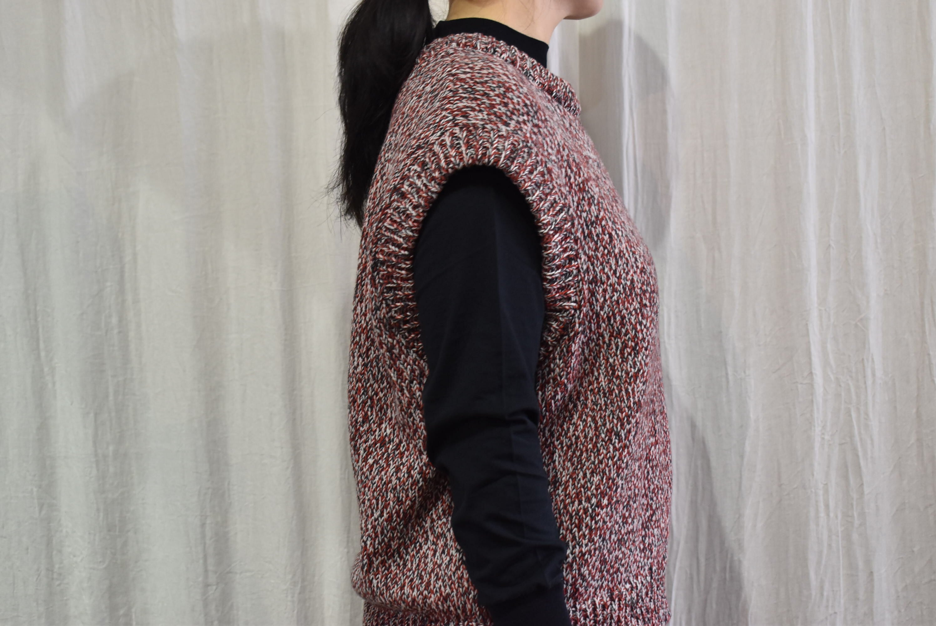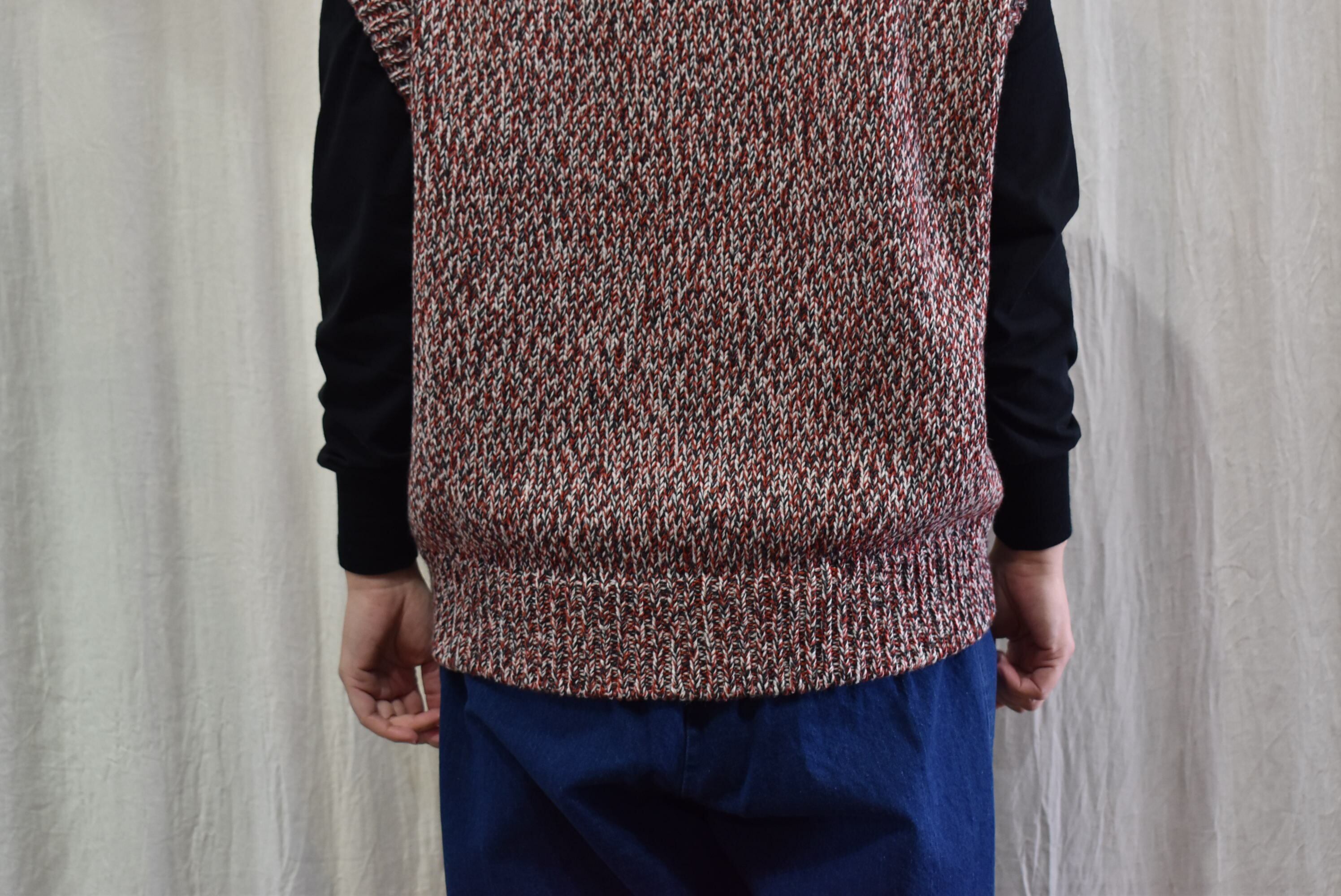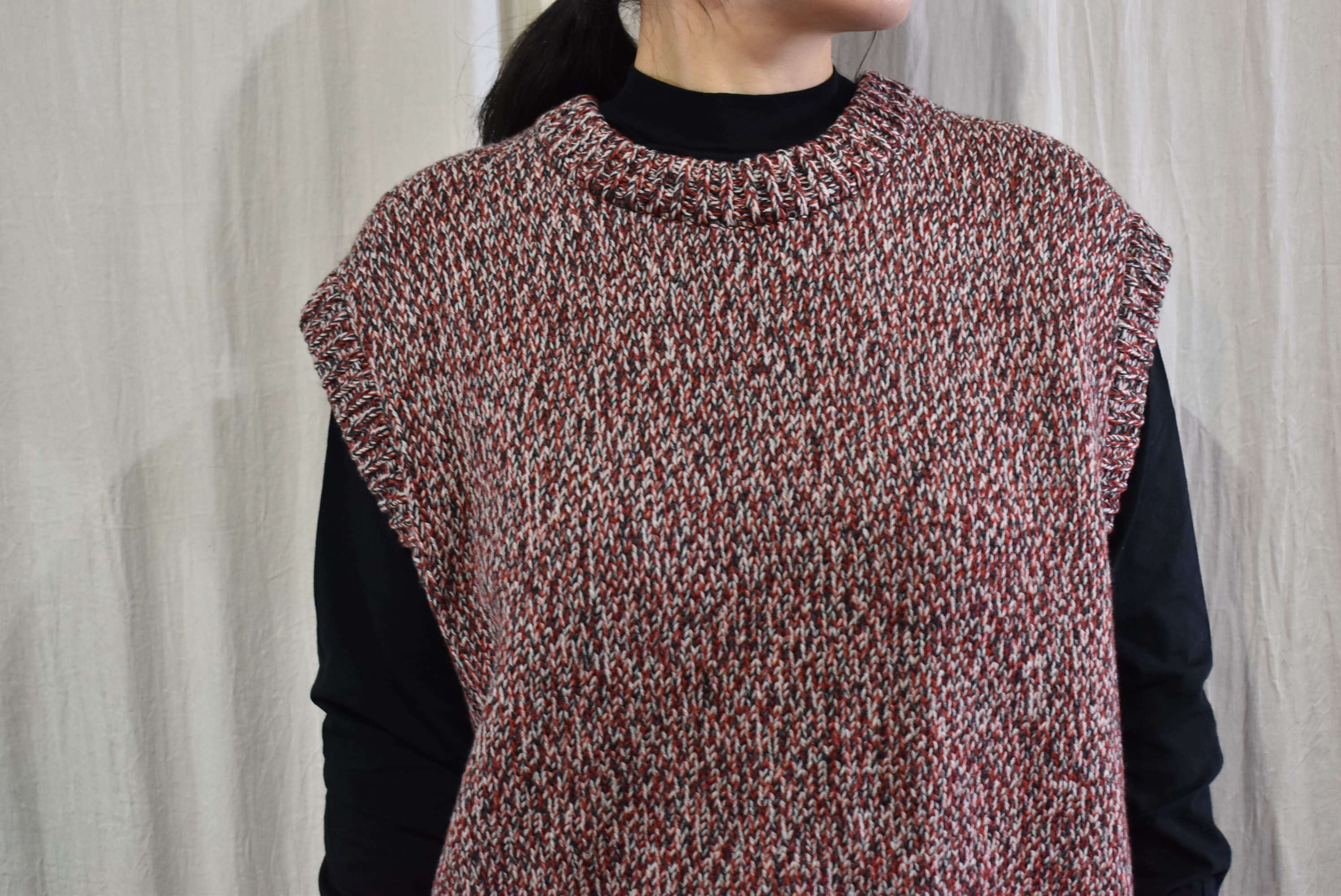 ウール×コットンの糸を撚りメランジカラーのセーターを作製。