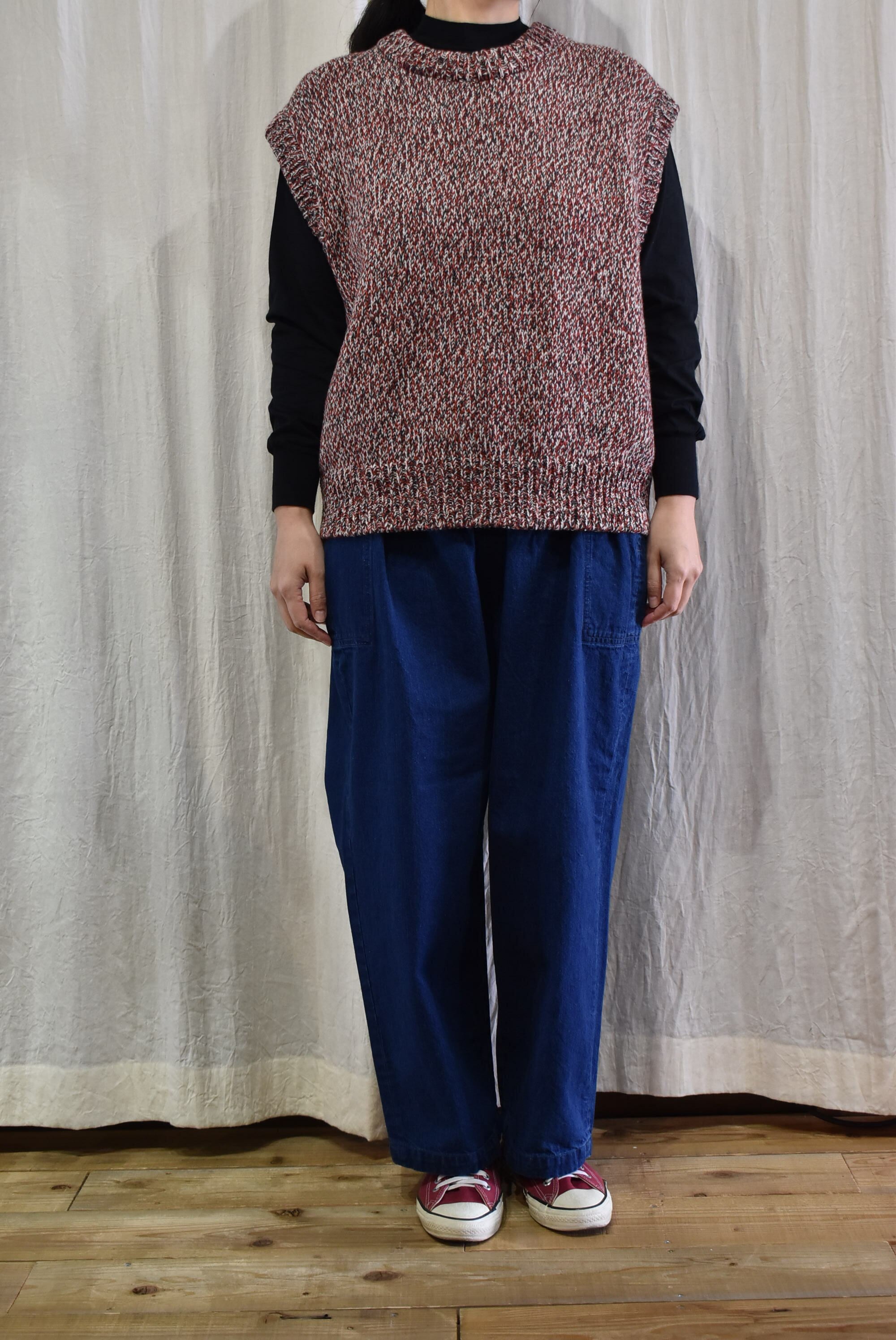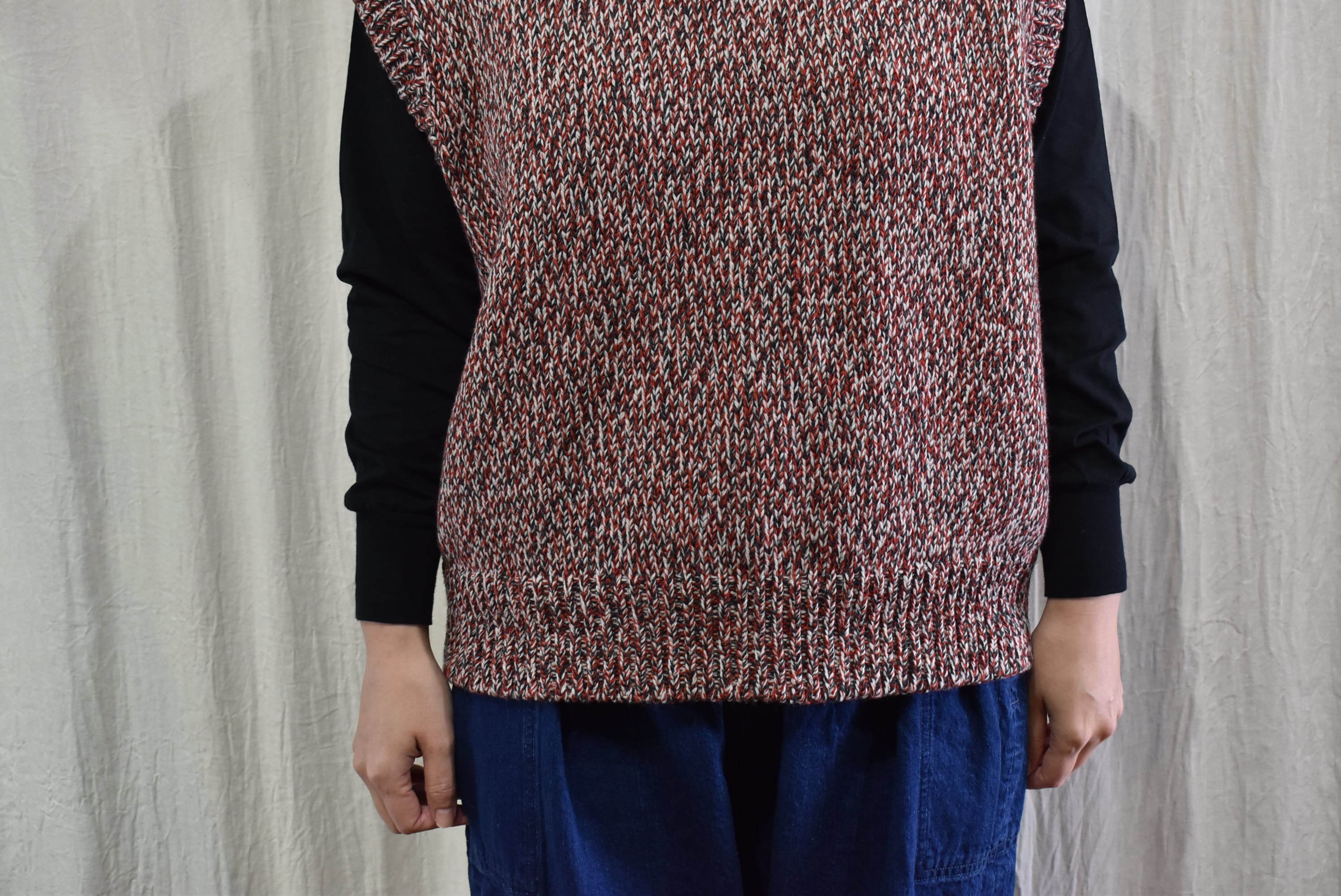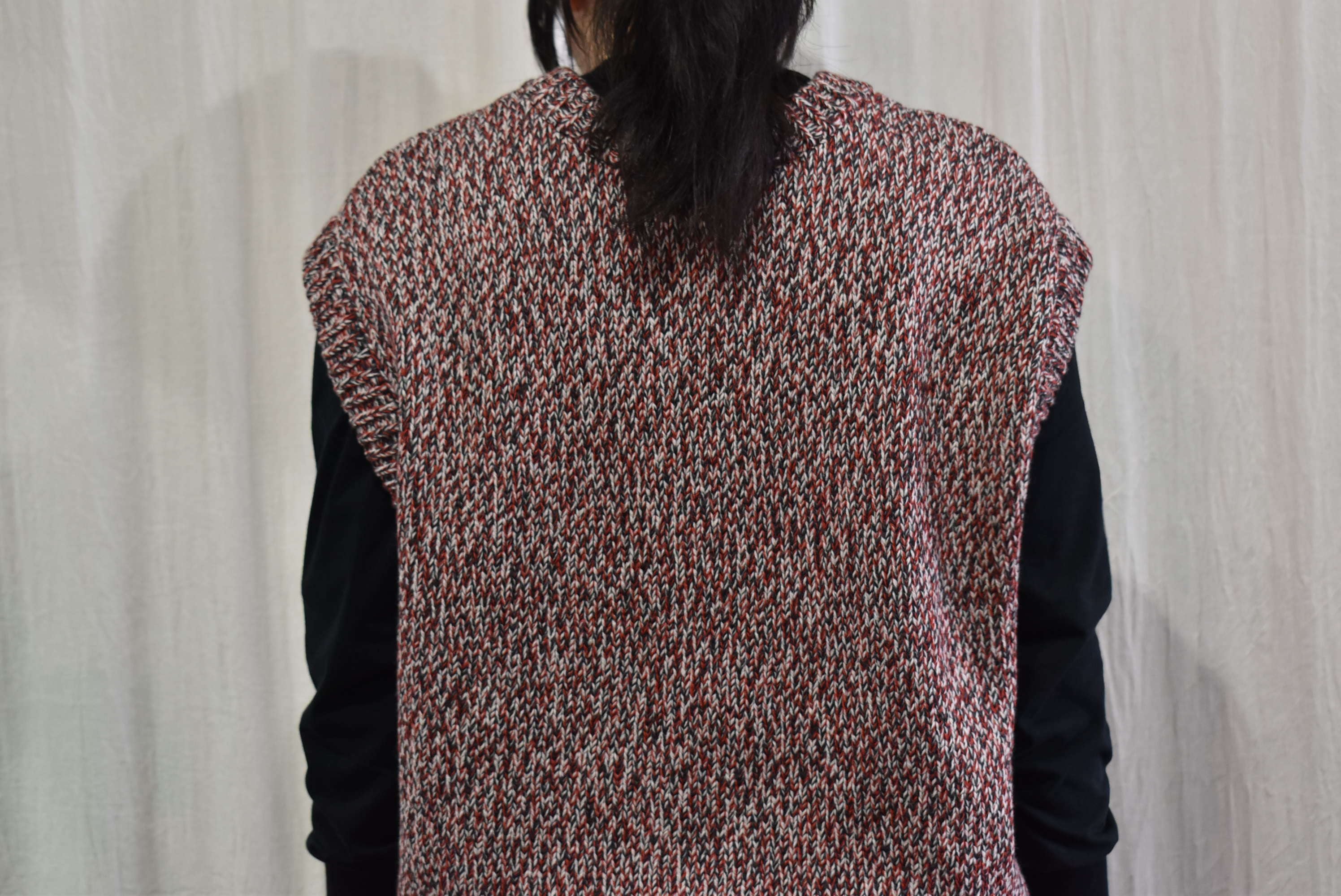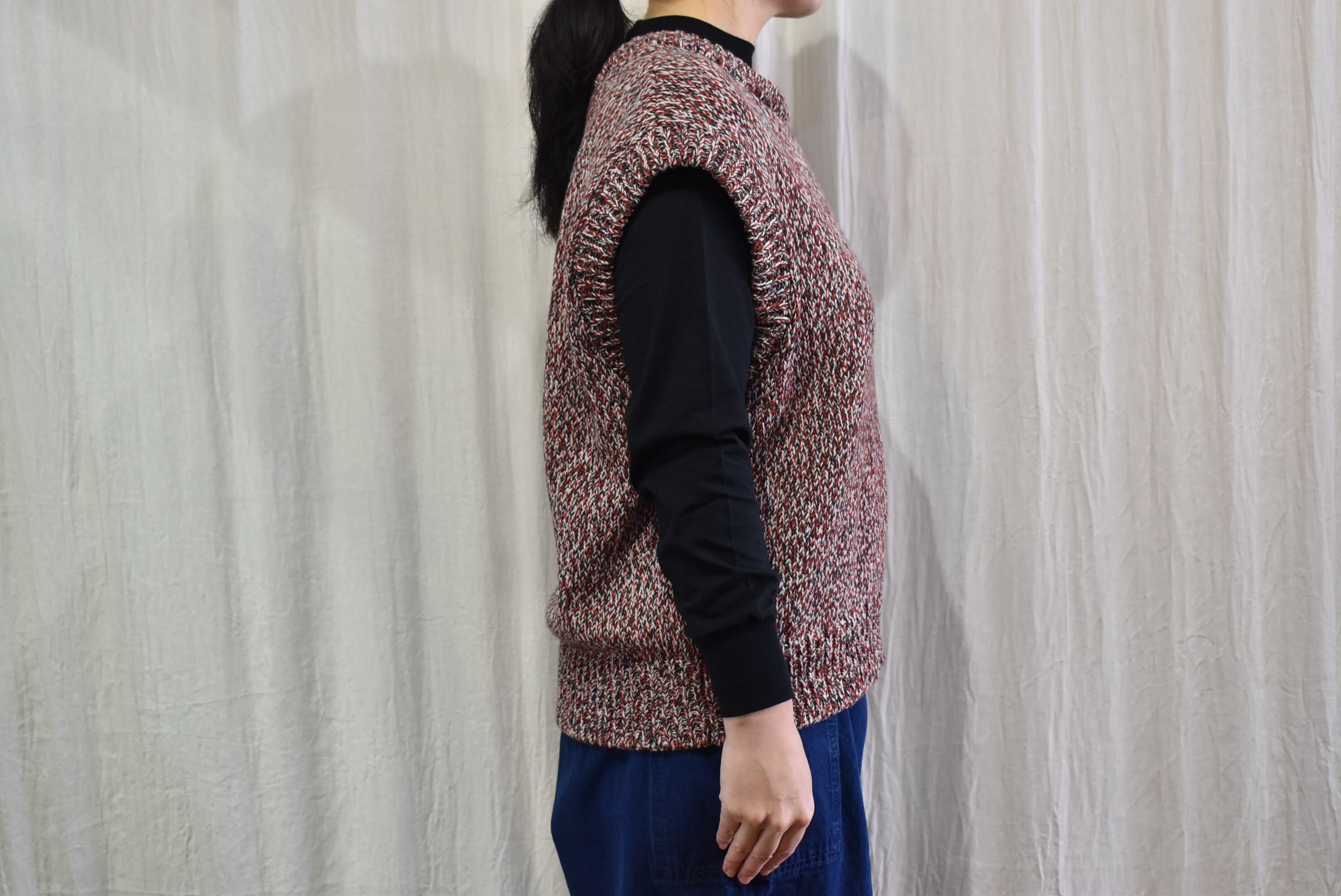 ウール×コットンの糸を撚りメランジカラーのセーターを作製。