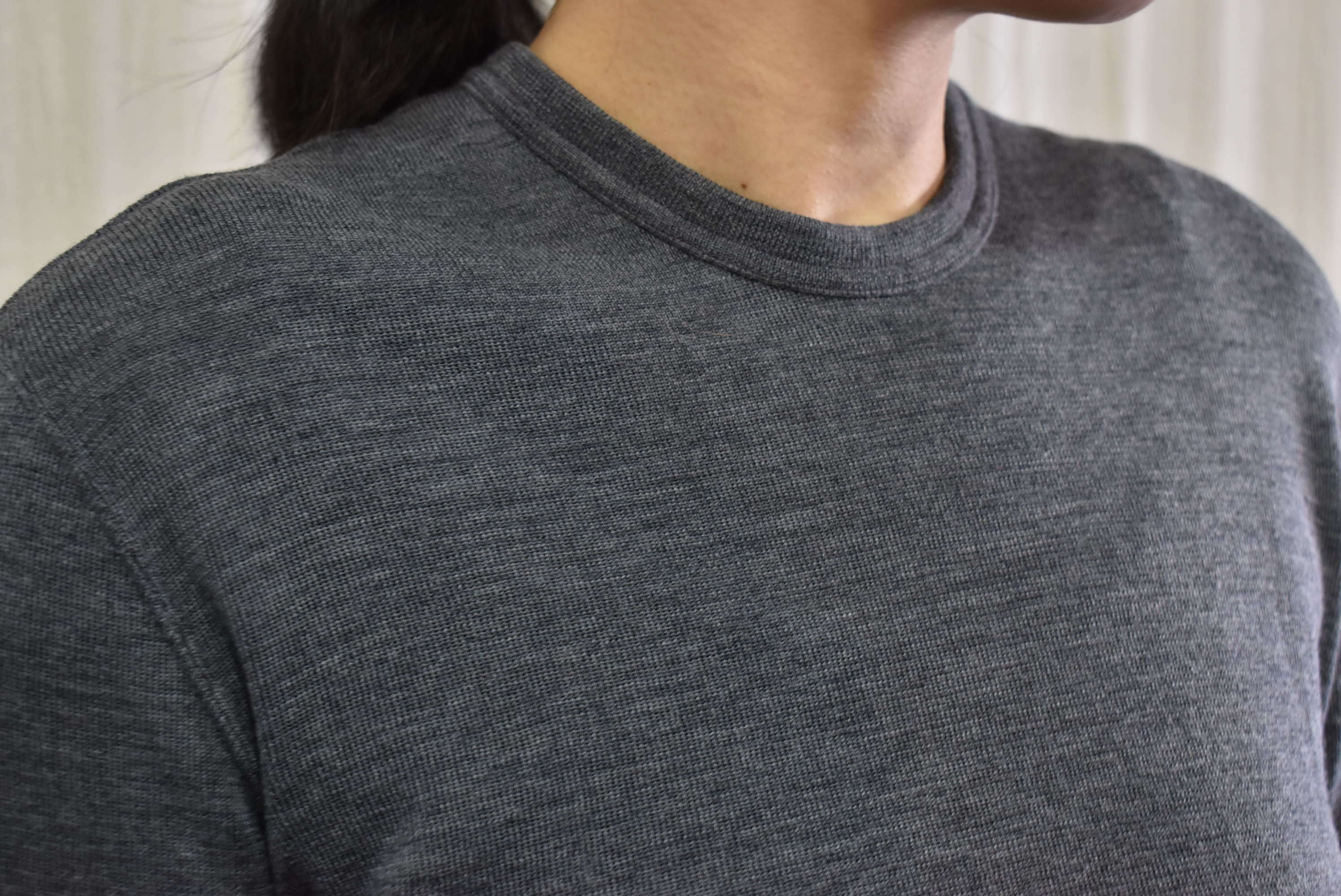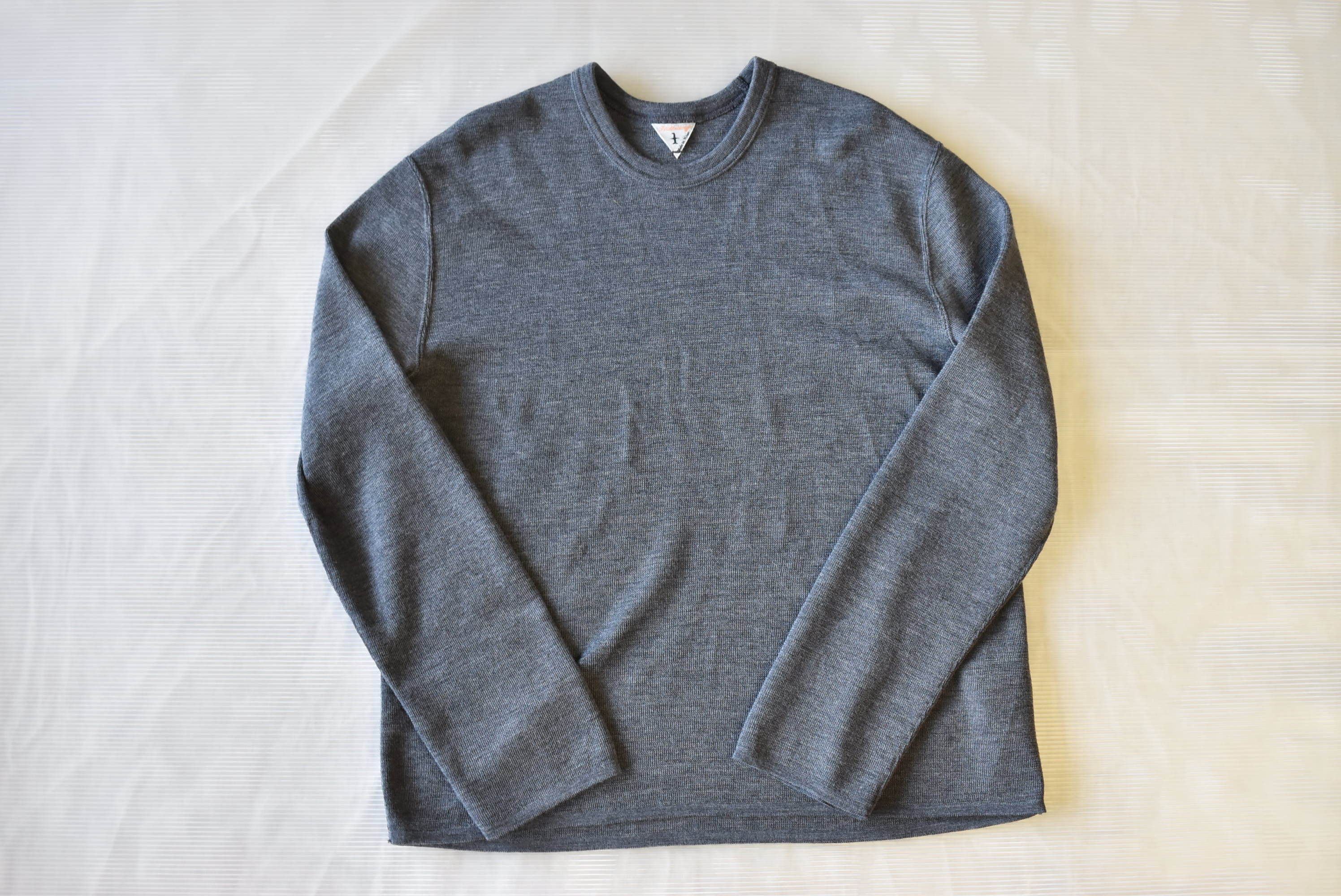 しっかりと肉感を感じられるウール100%を用いたクルーネック。