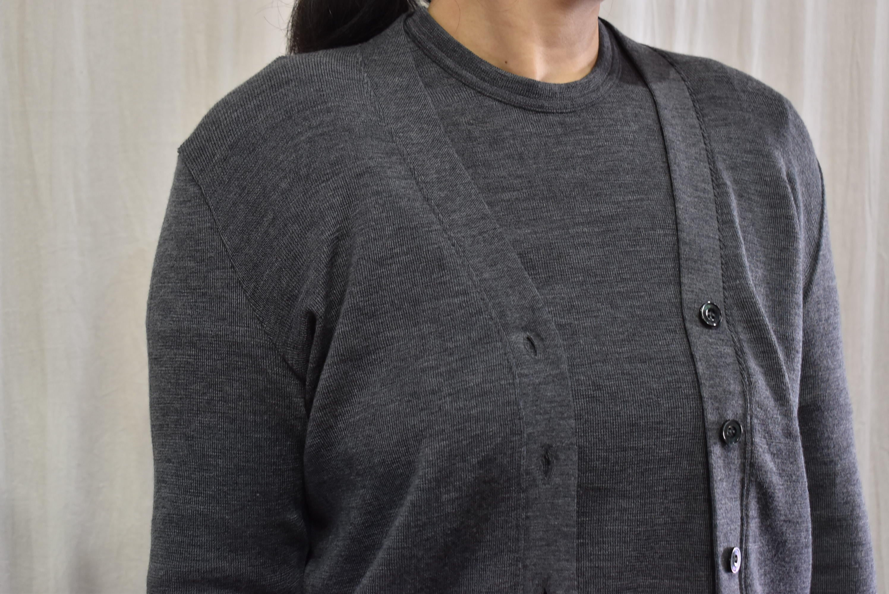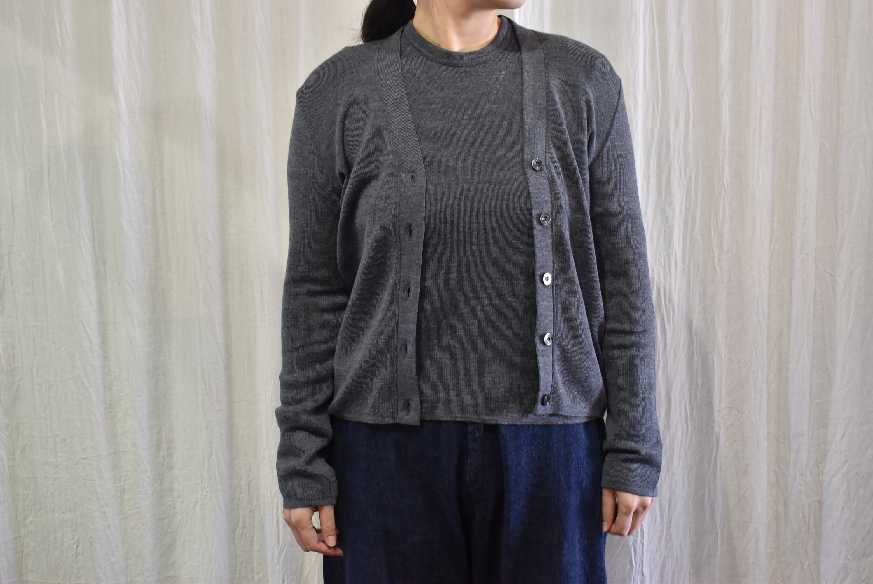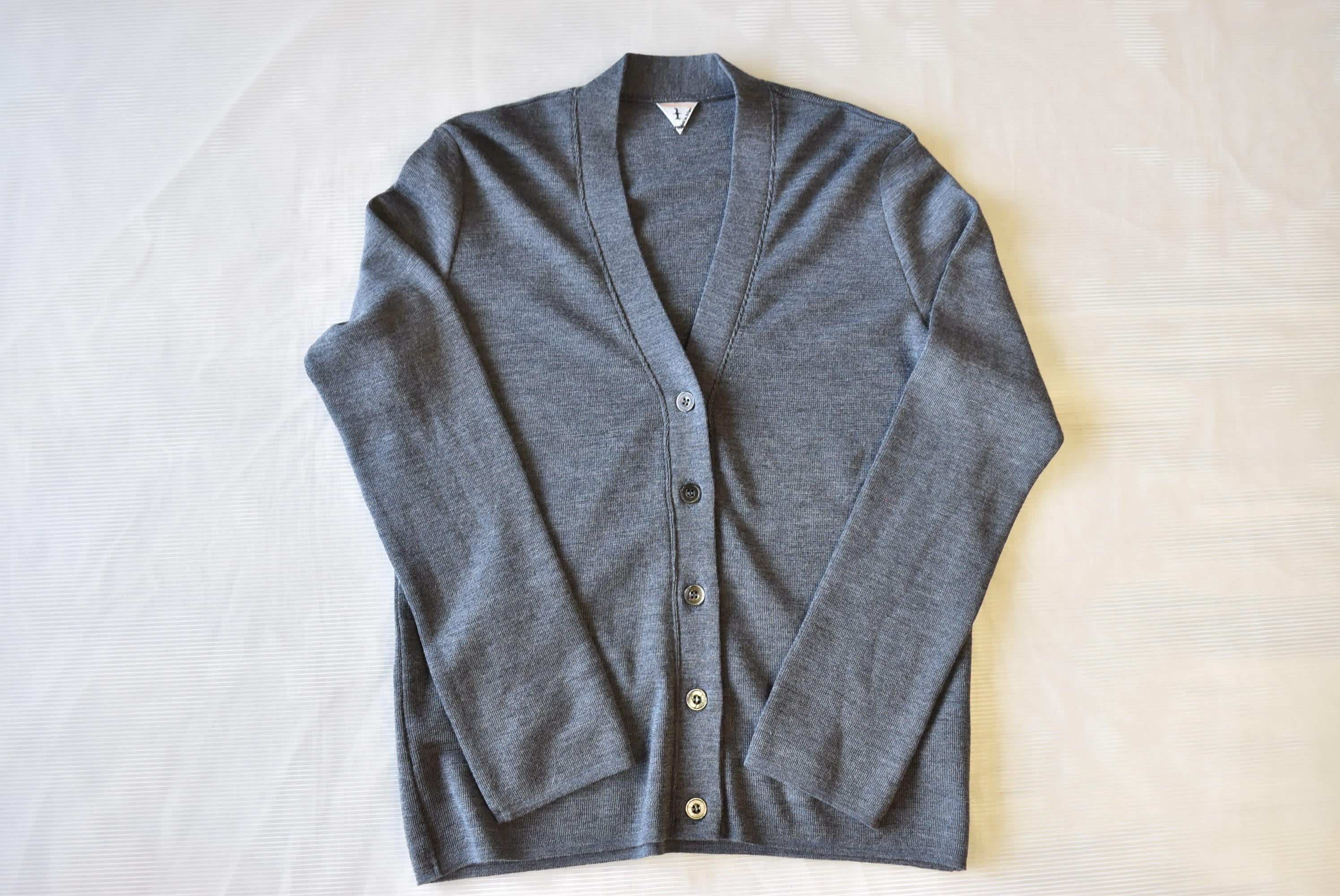 しっかりと肉感を感じられるウール100%を用いたVネックカーディガン。