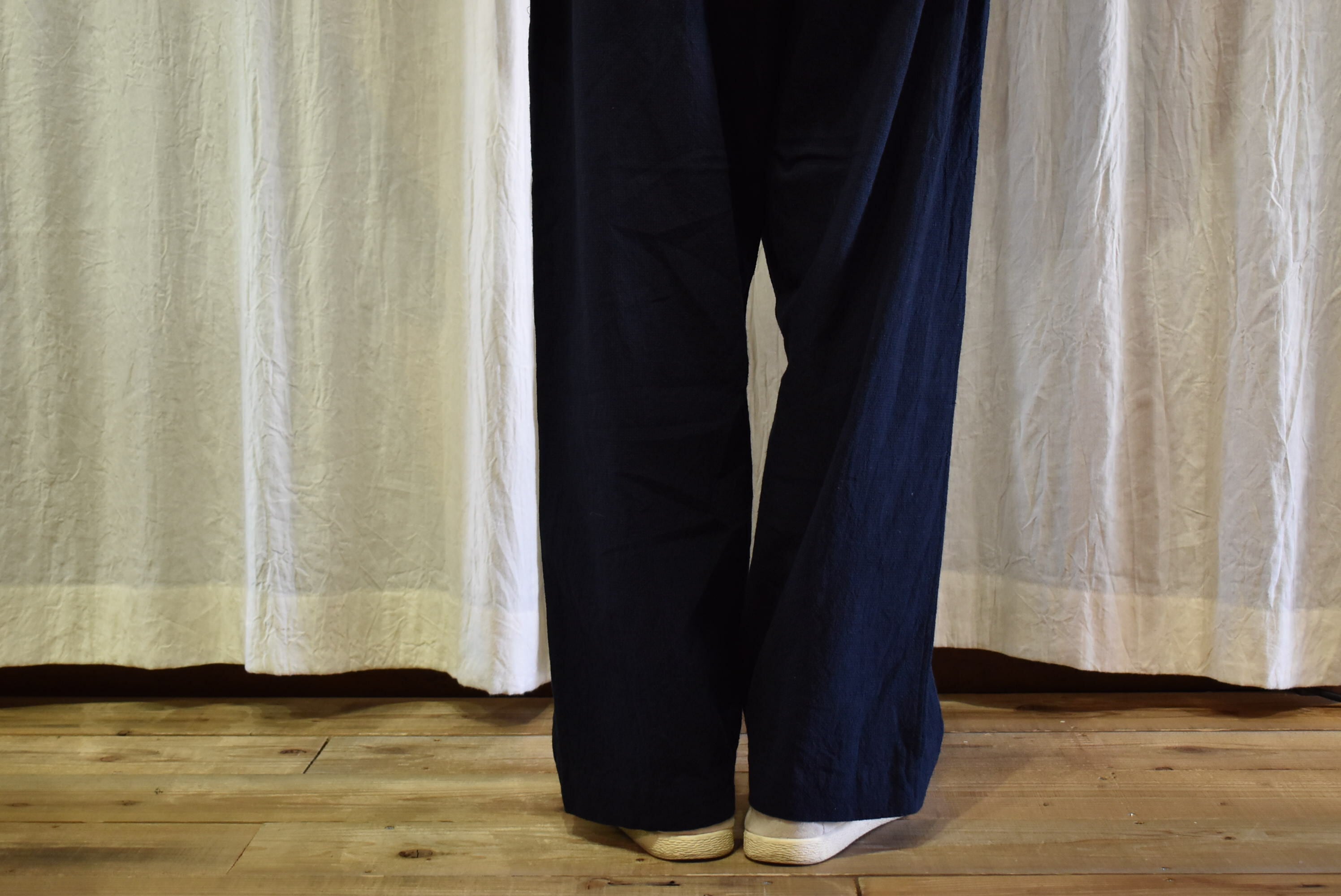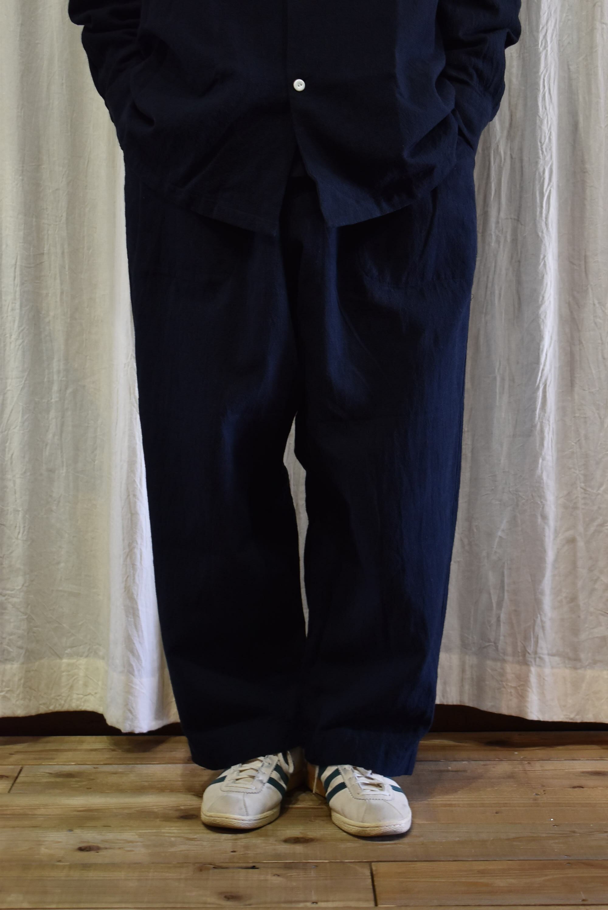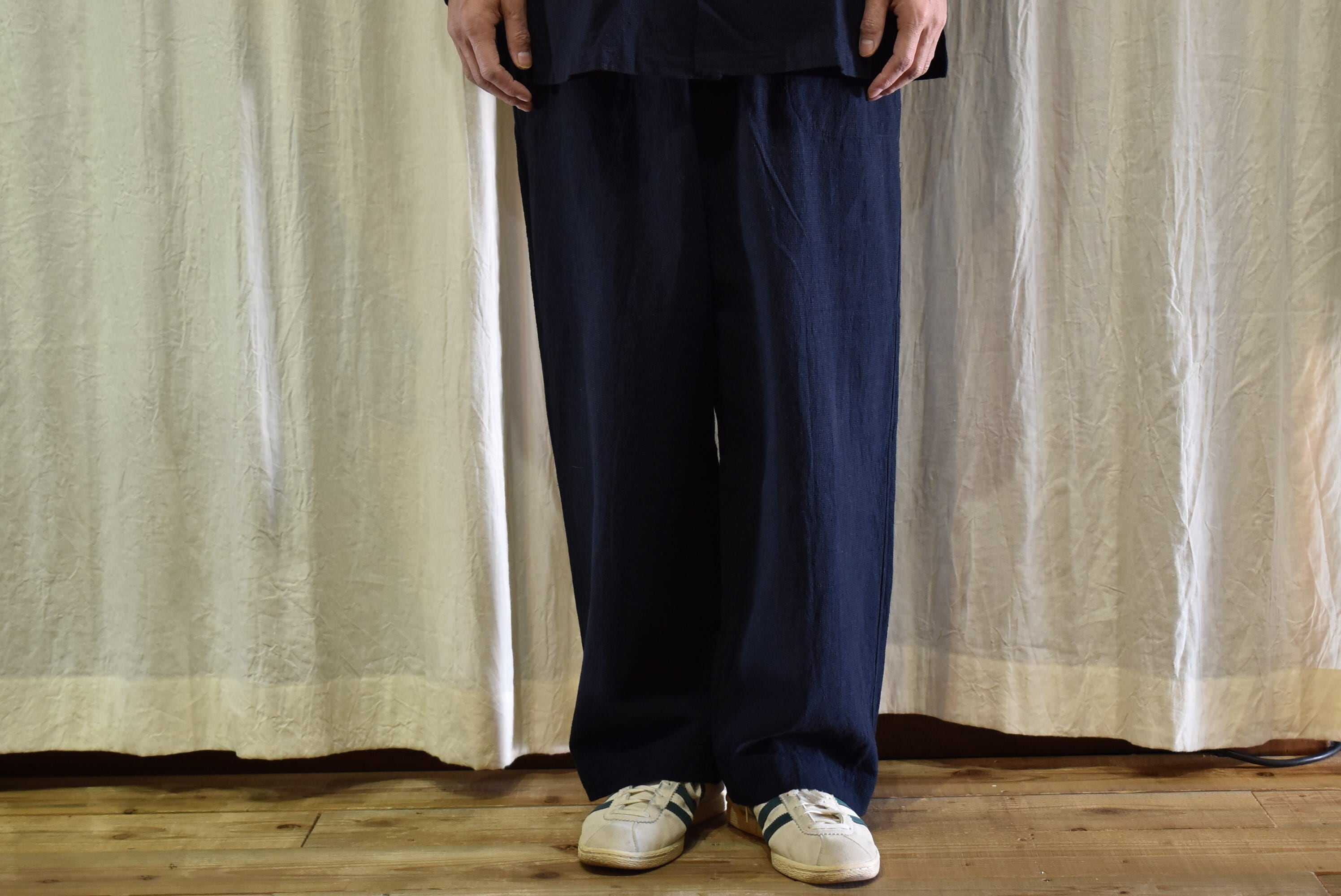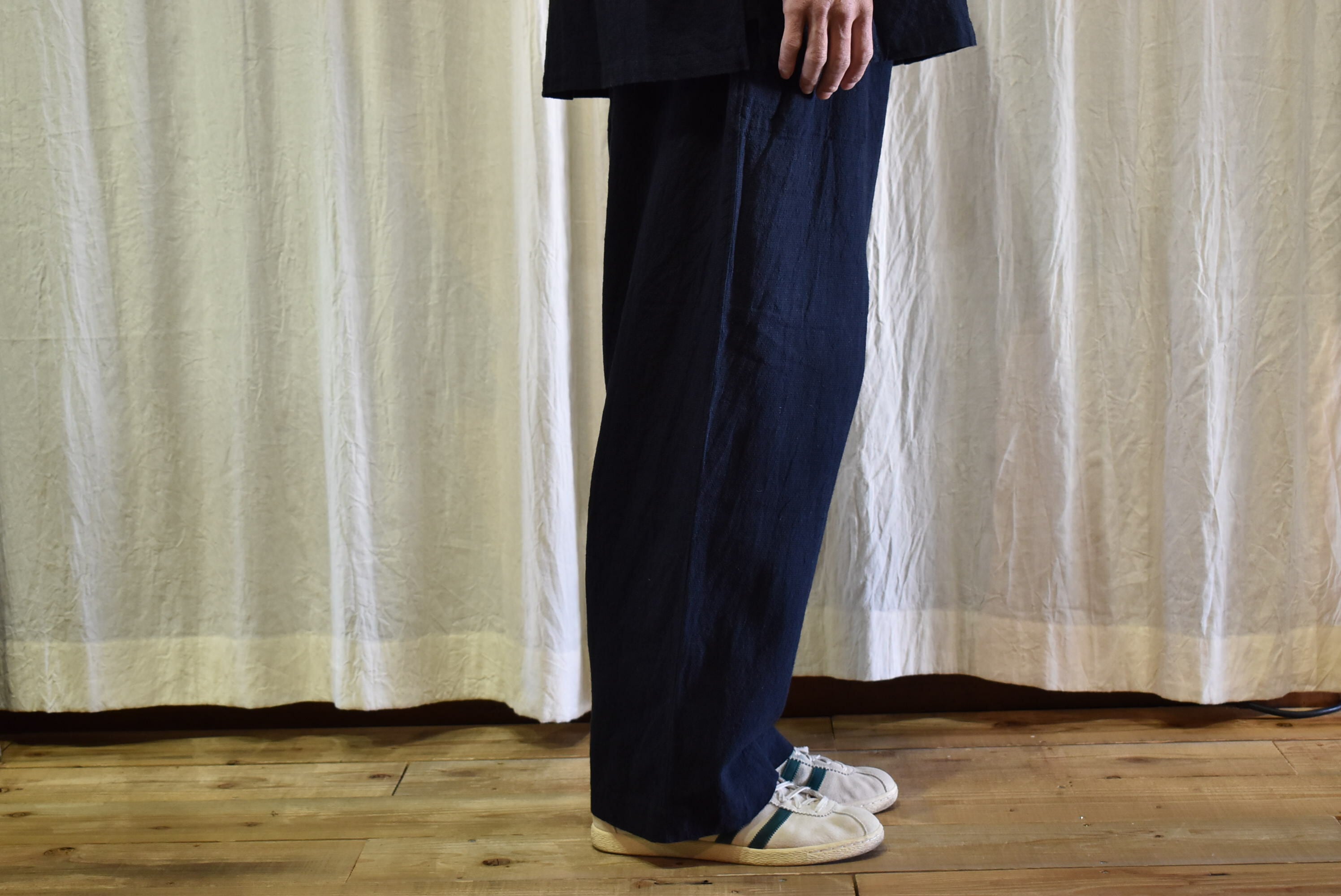 sowbow : EZ PANTS WIDE LINEN×COTTON HOUNDS TOOTH NAVY