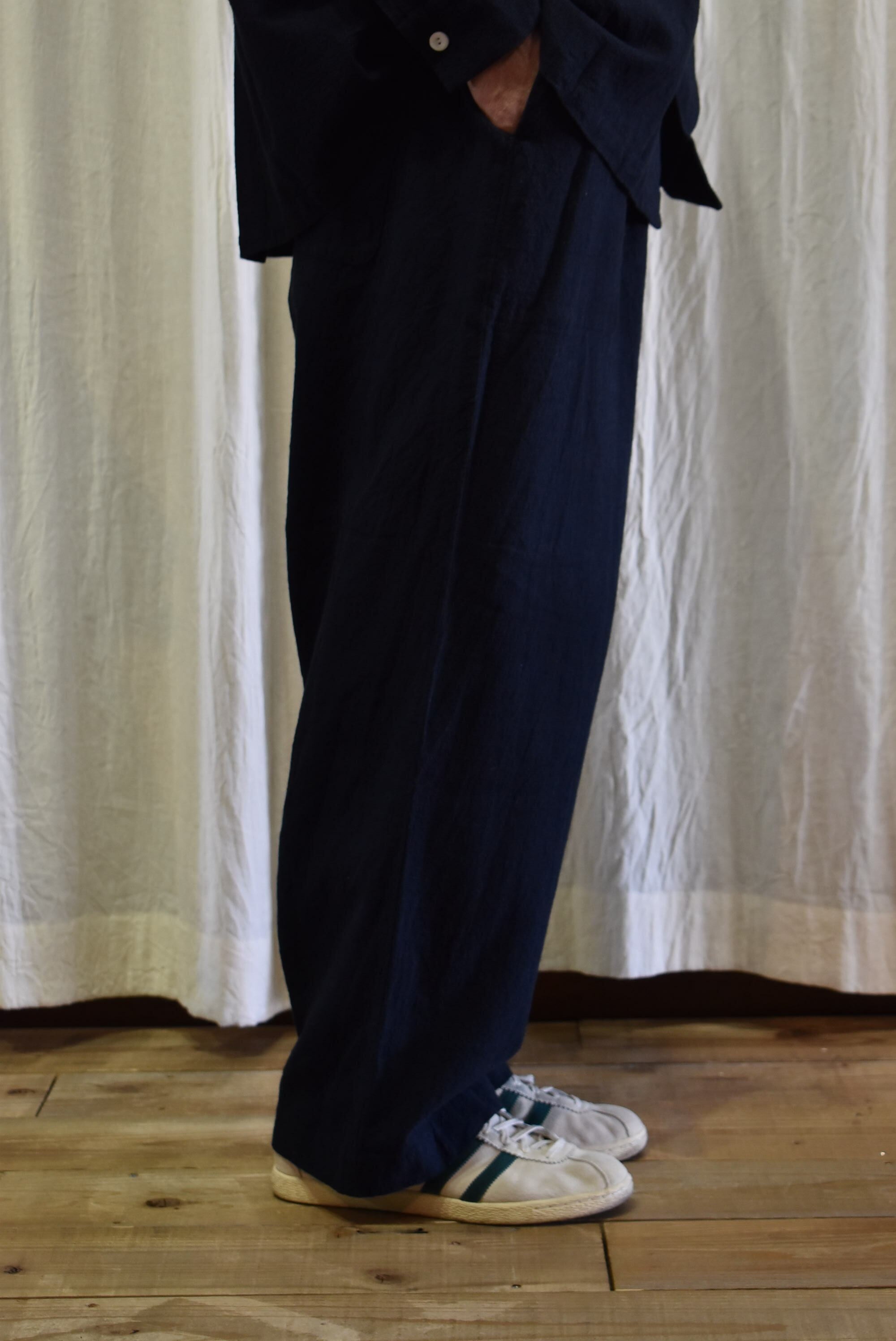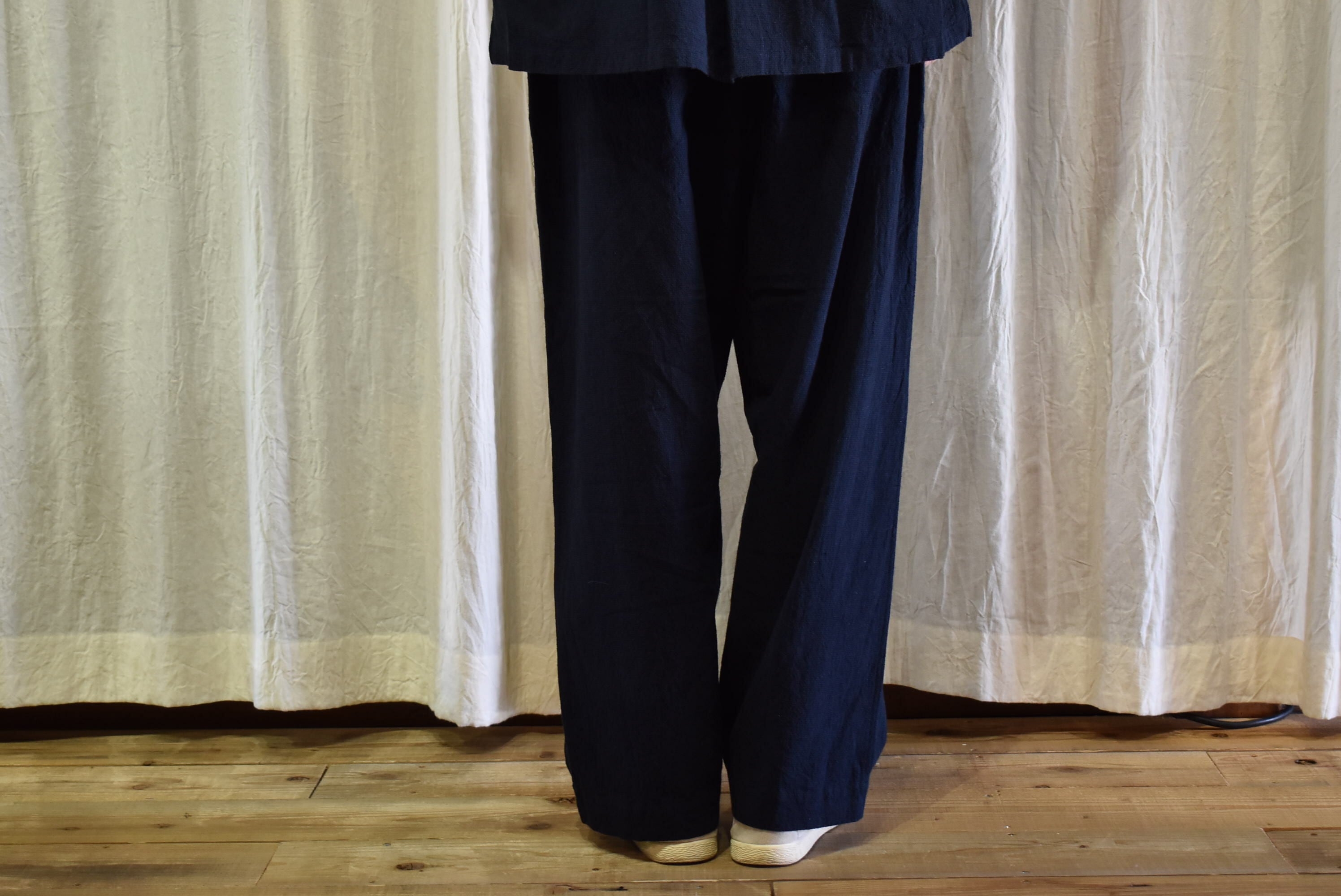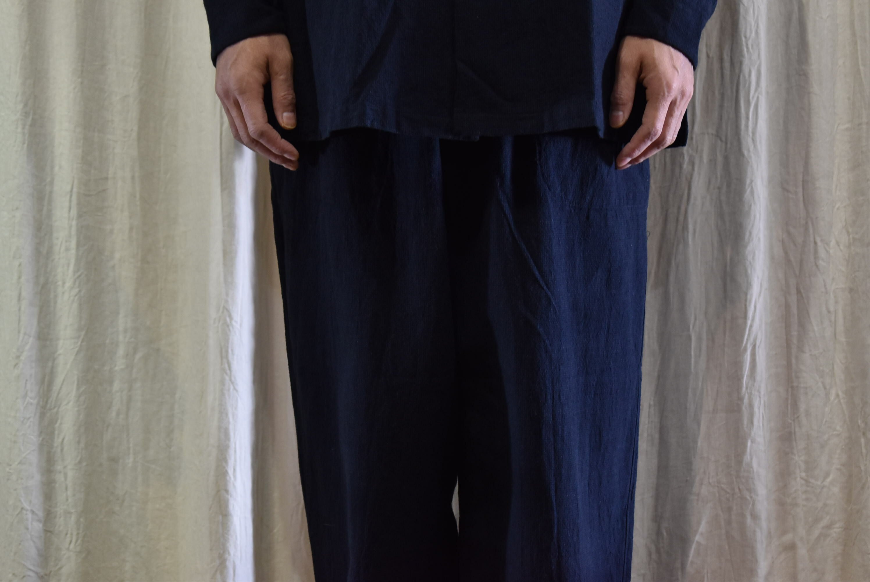 sowbow : EZ PANTS WIDE LINEN×COTTON HOUNDS TOOTH NAVY
