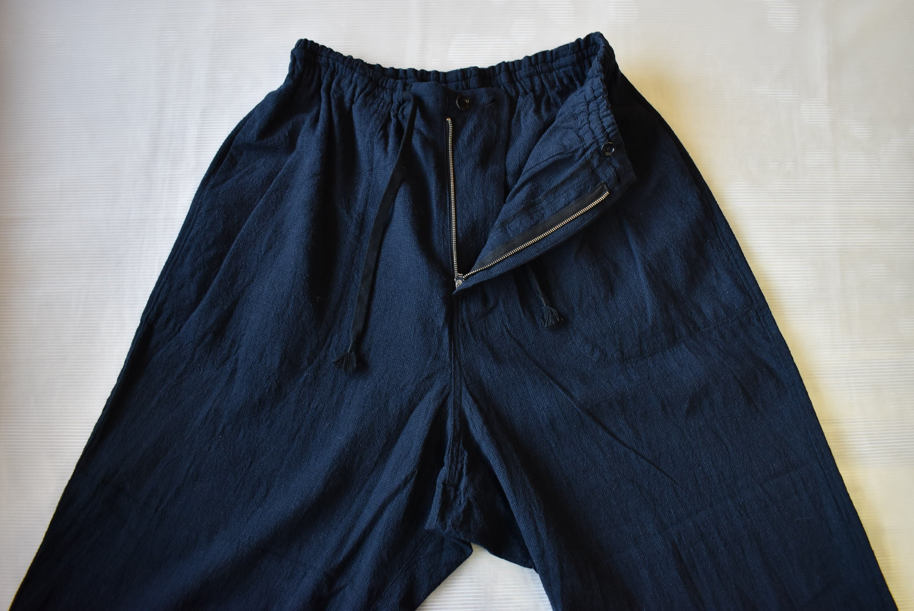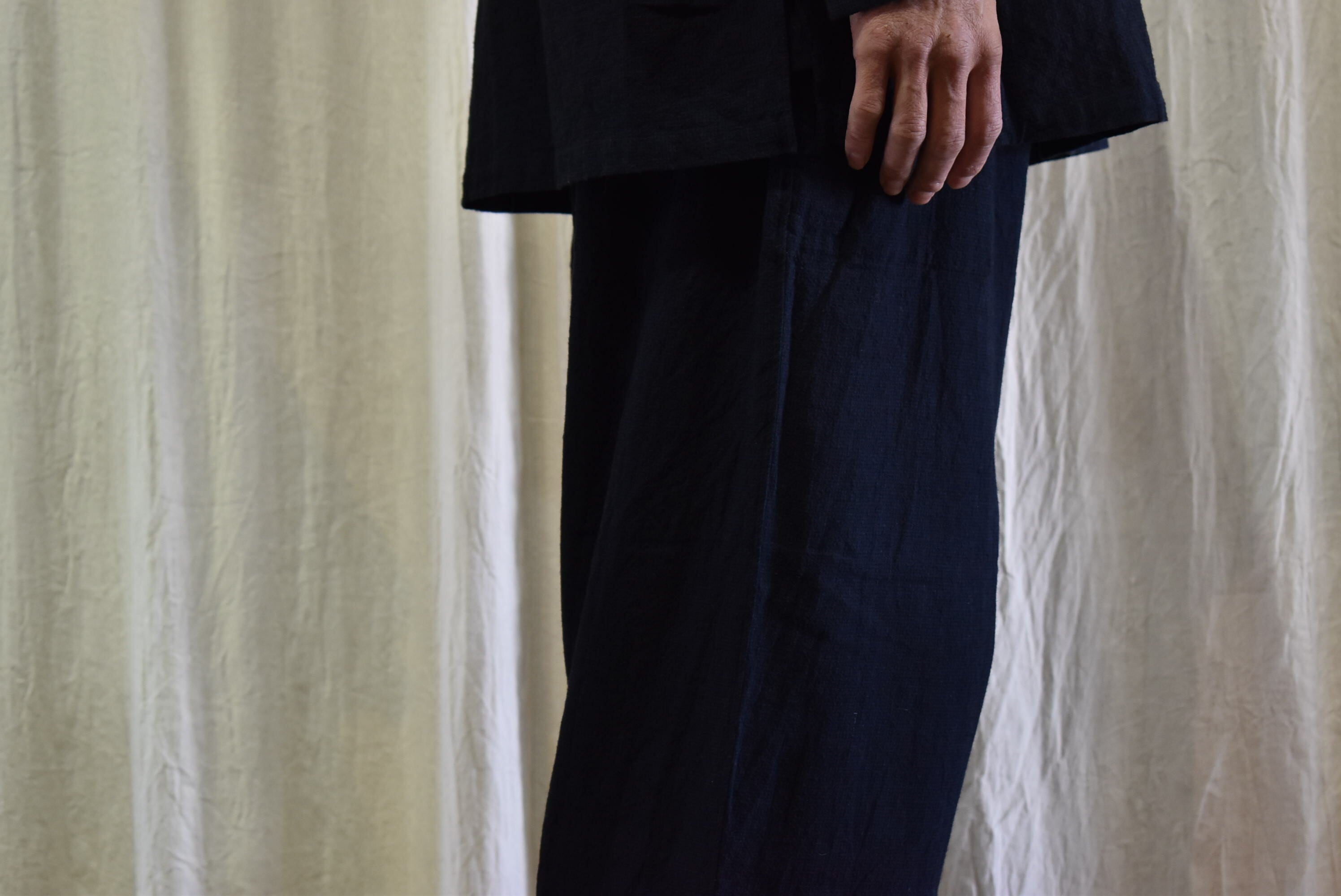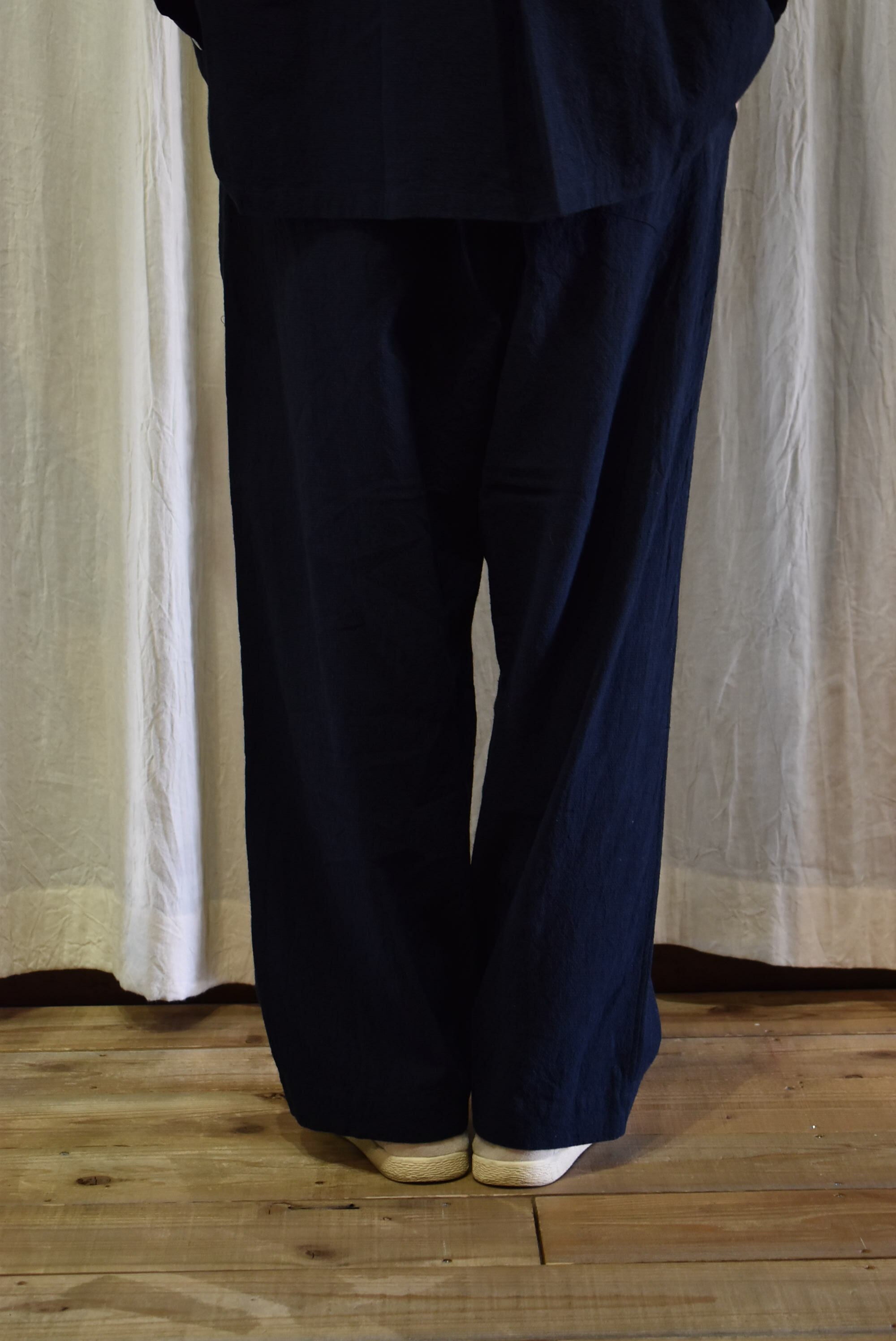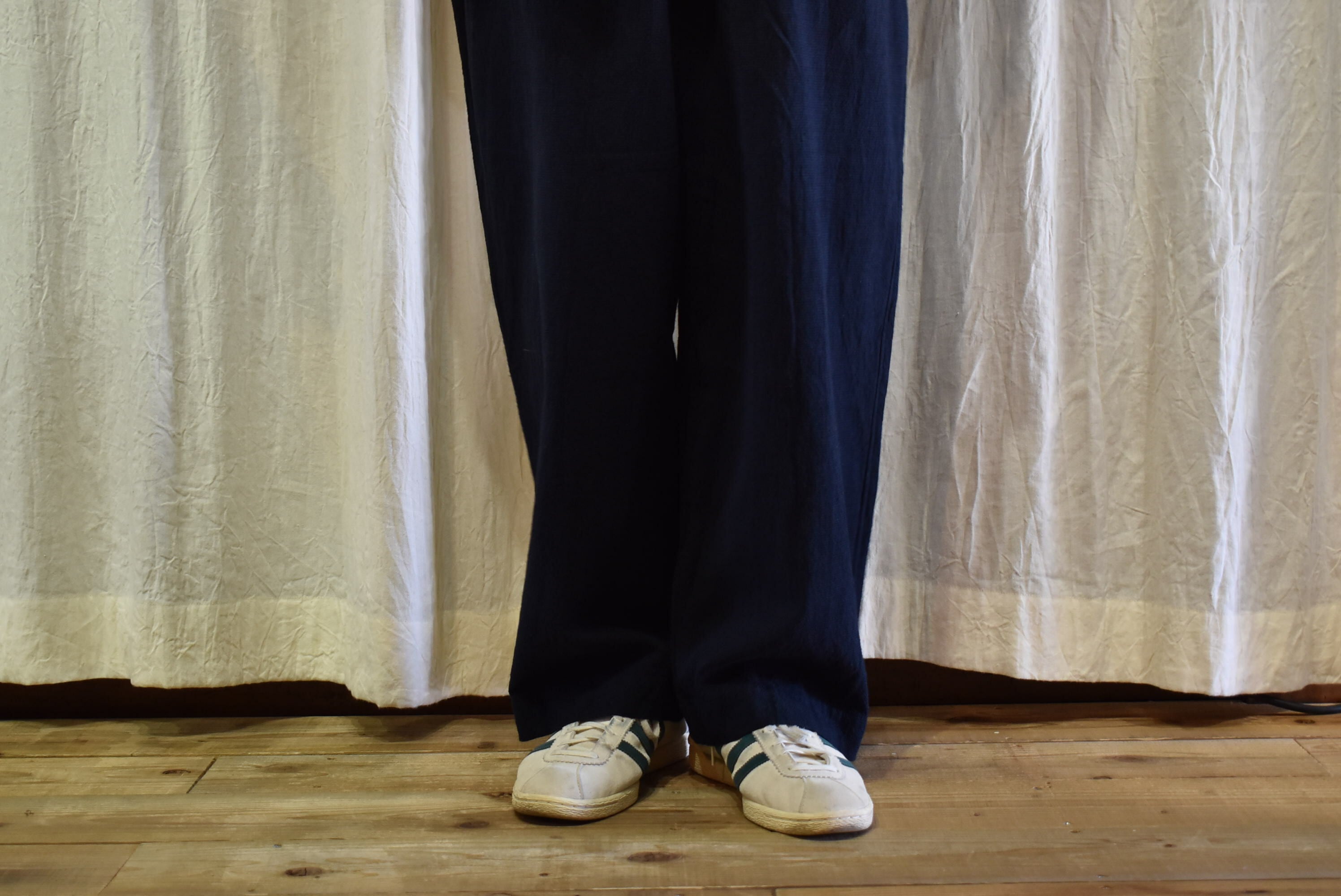 sowbow : EZ PANTS WIDE LINEN×COTTON HOUNDS TOOTH NAVY