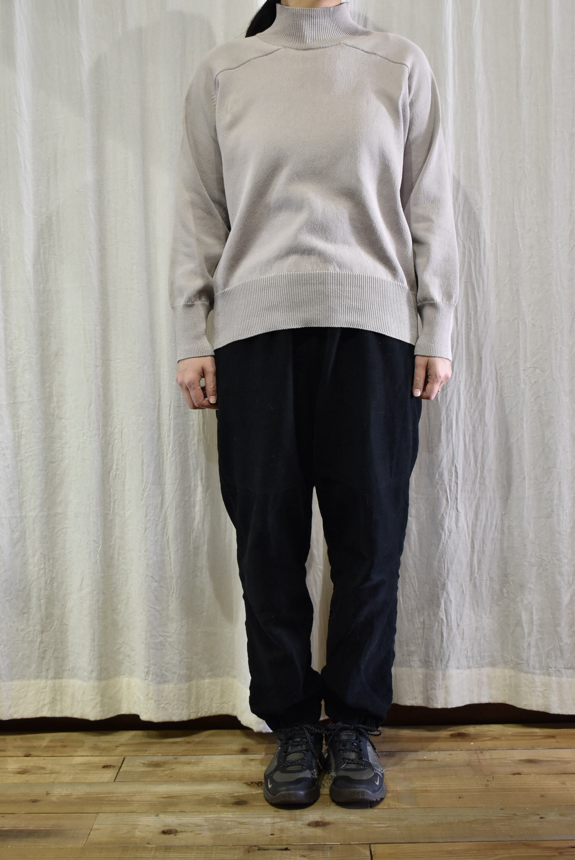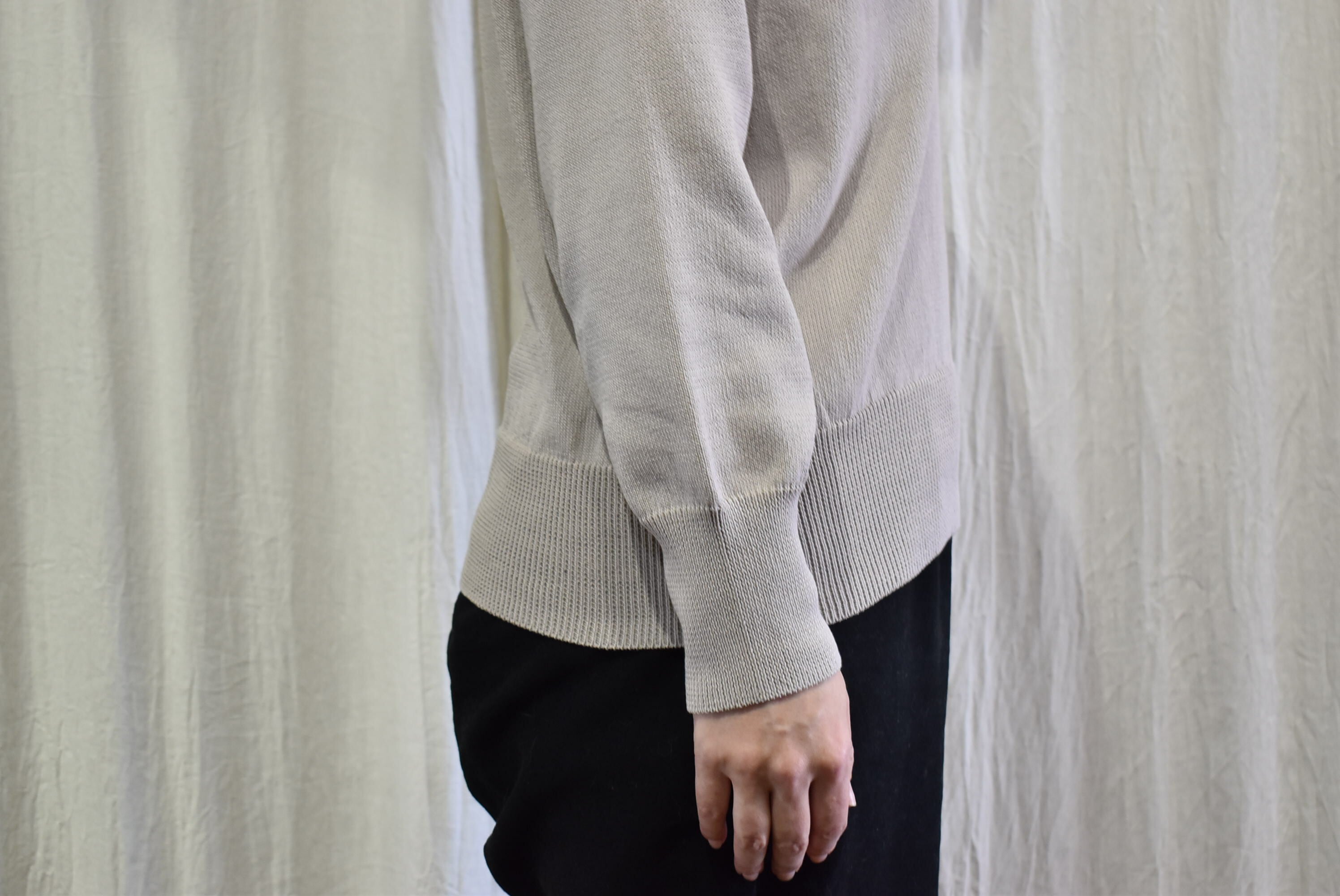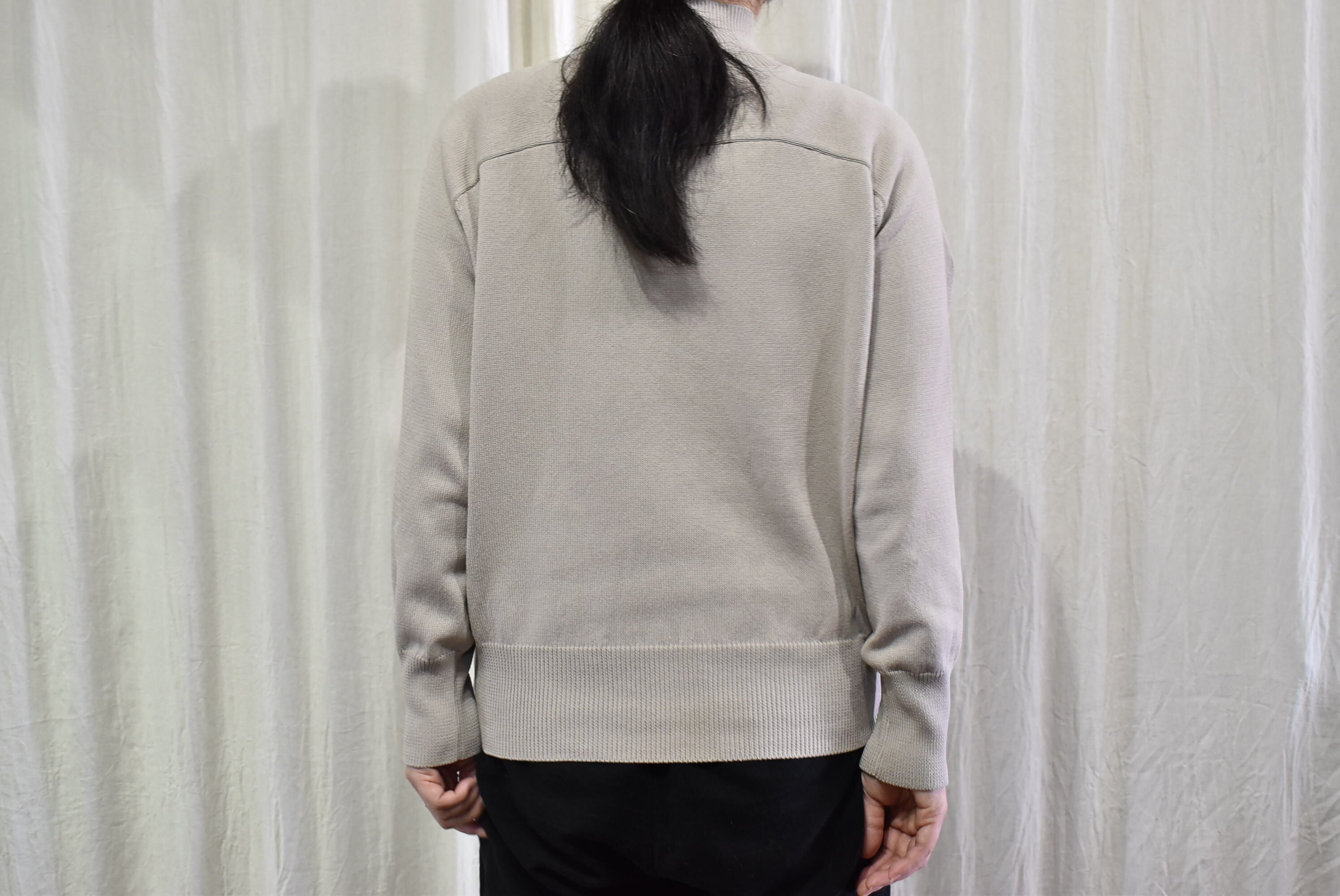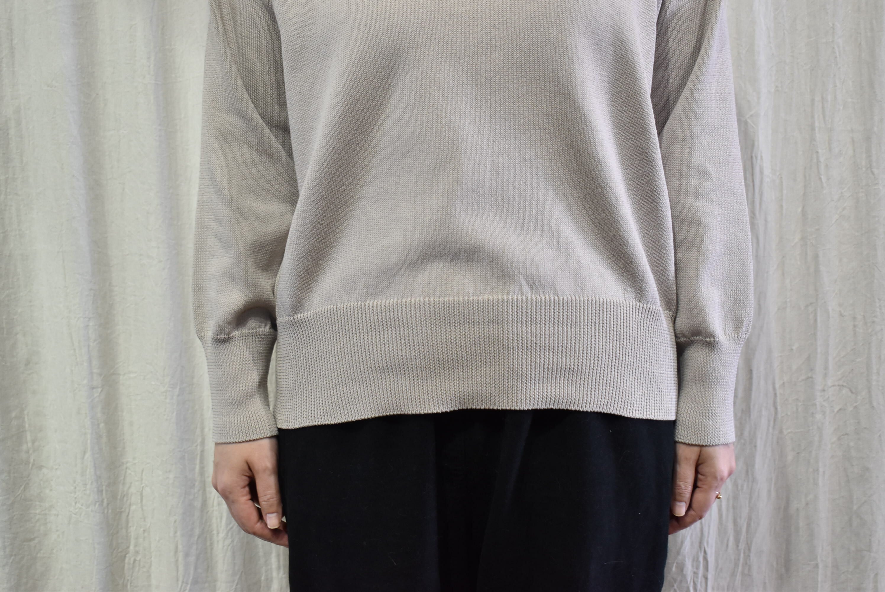 強撚糸のコットンを編みたてたハイネックタイプのセーター。