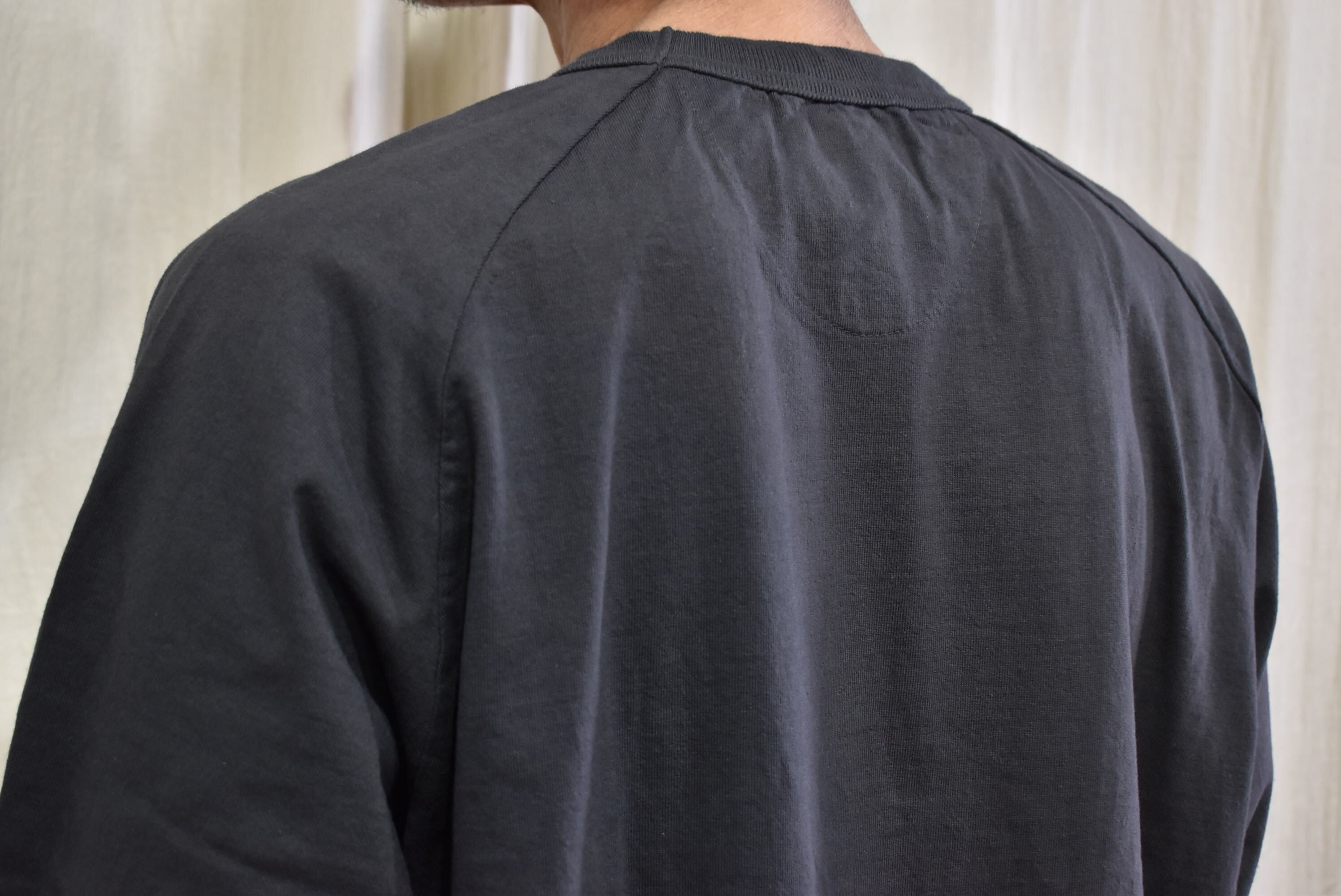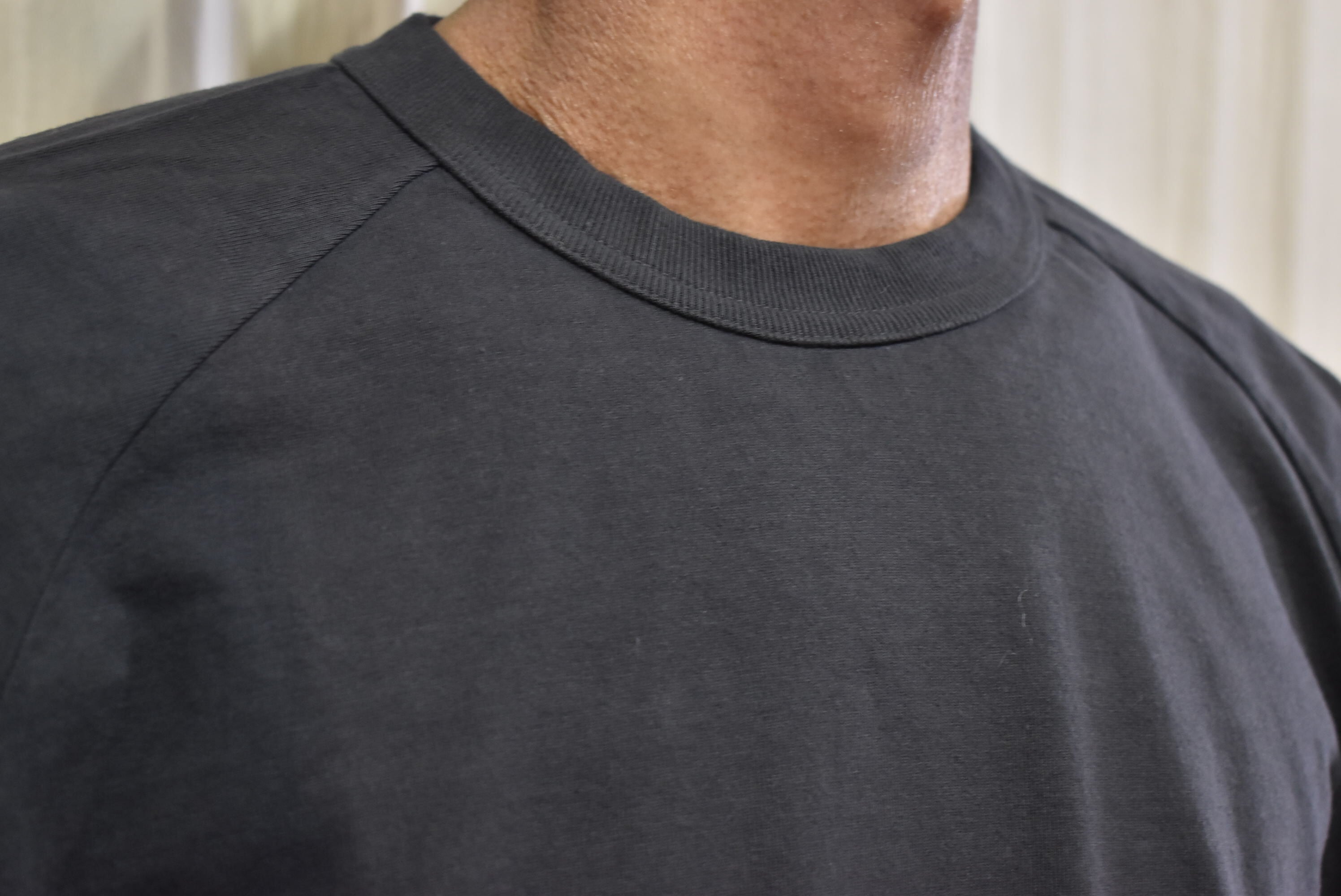 丸胴ボディを用いたラグランスリーブのTシャツ。