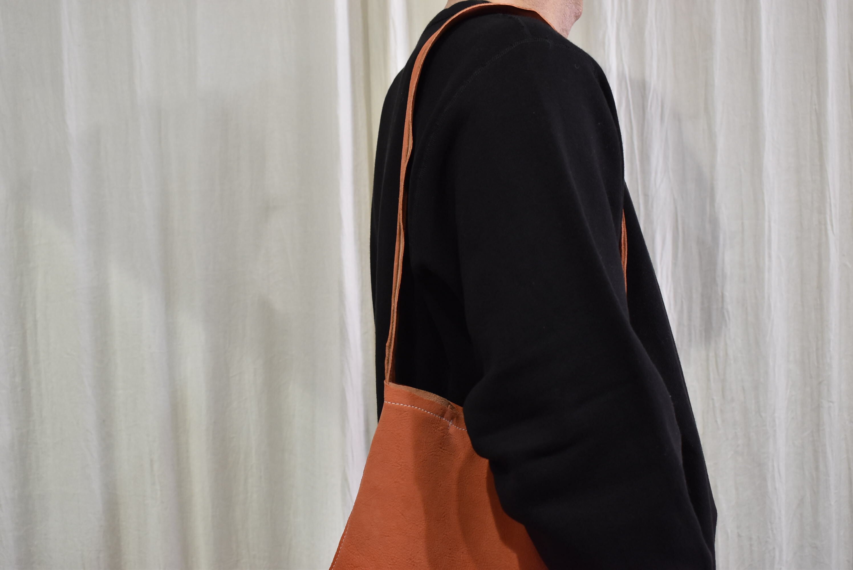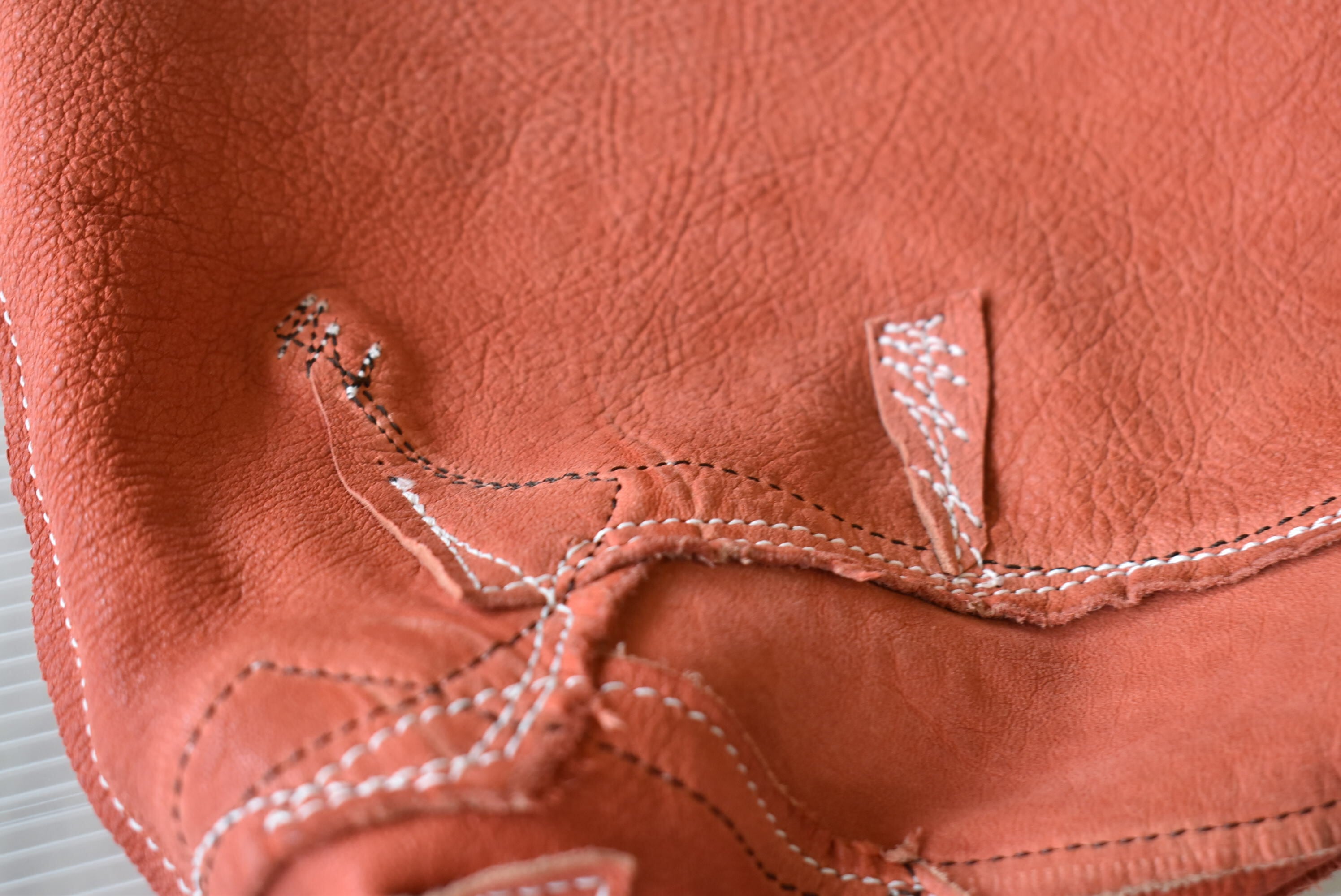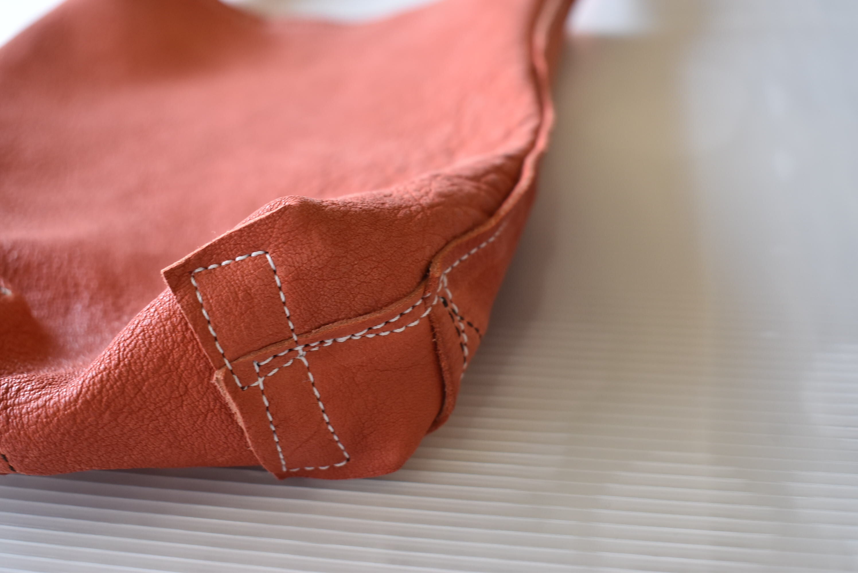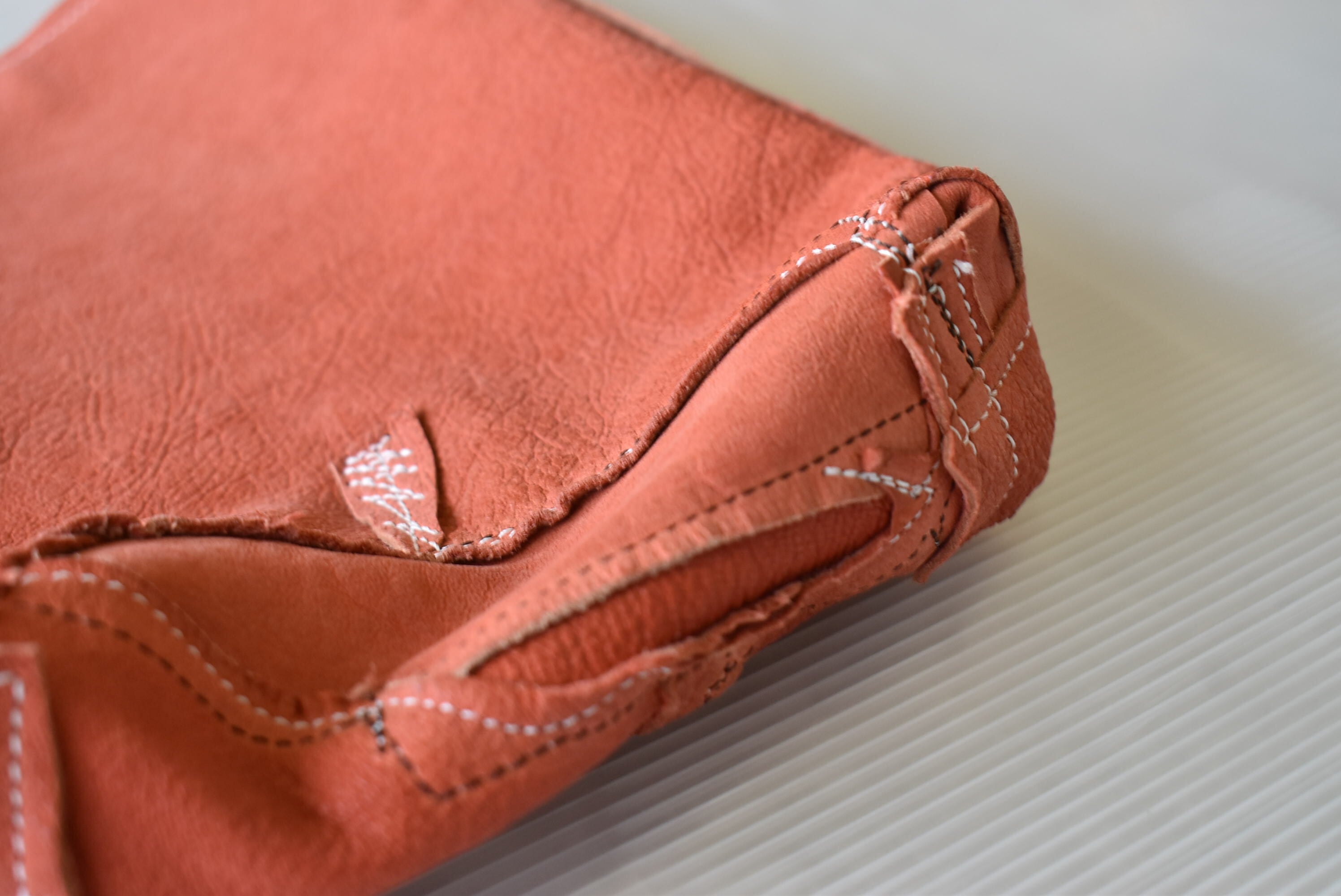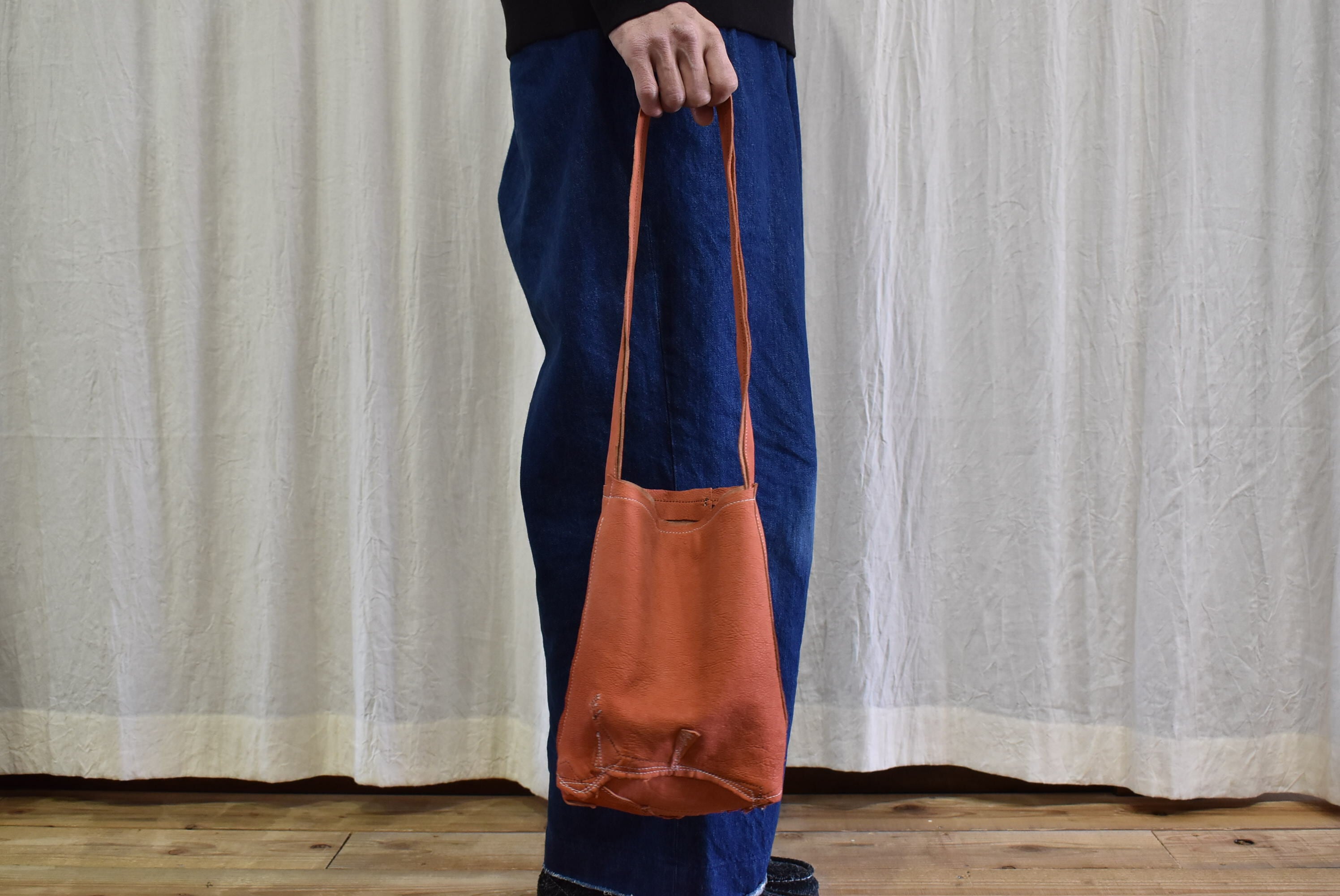 1つ1つ表情の異なるハンドルタイプのバッグ。