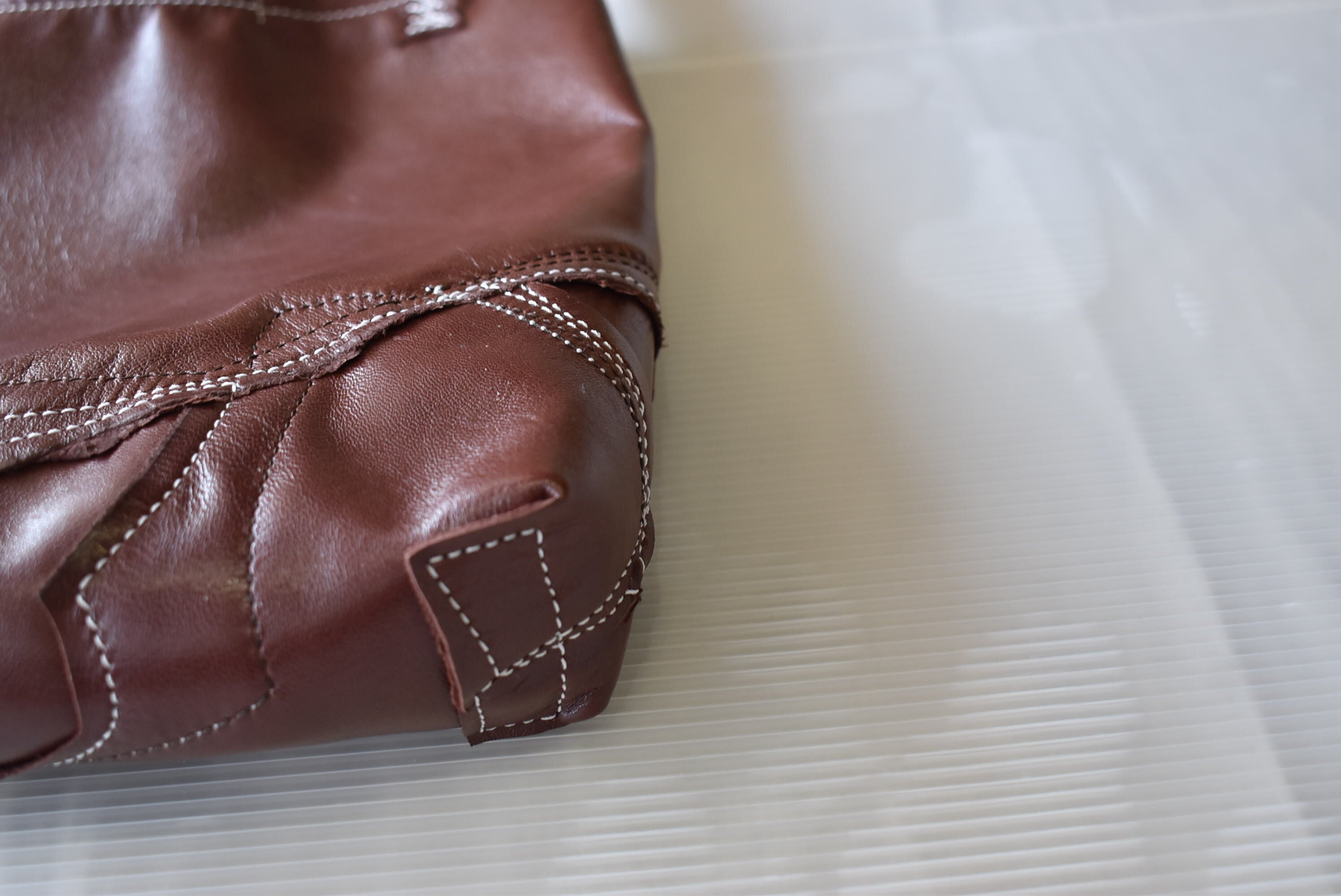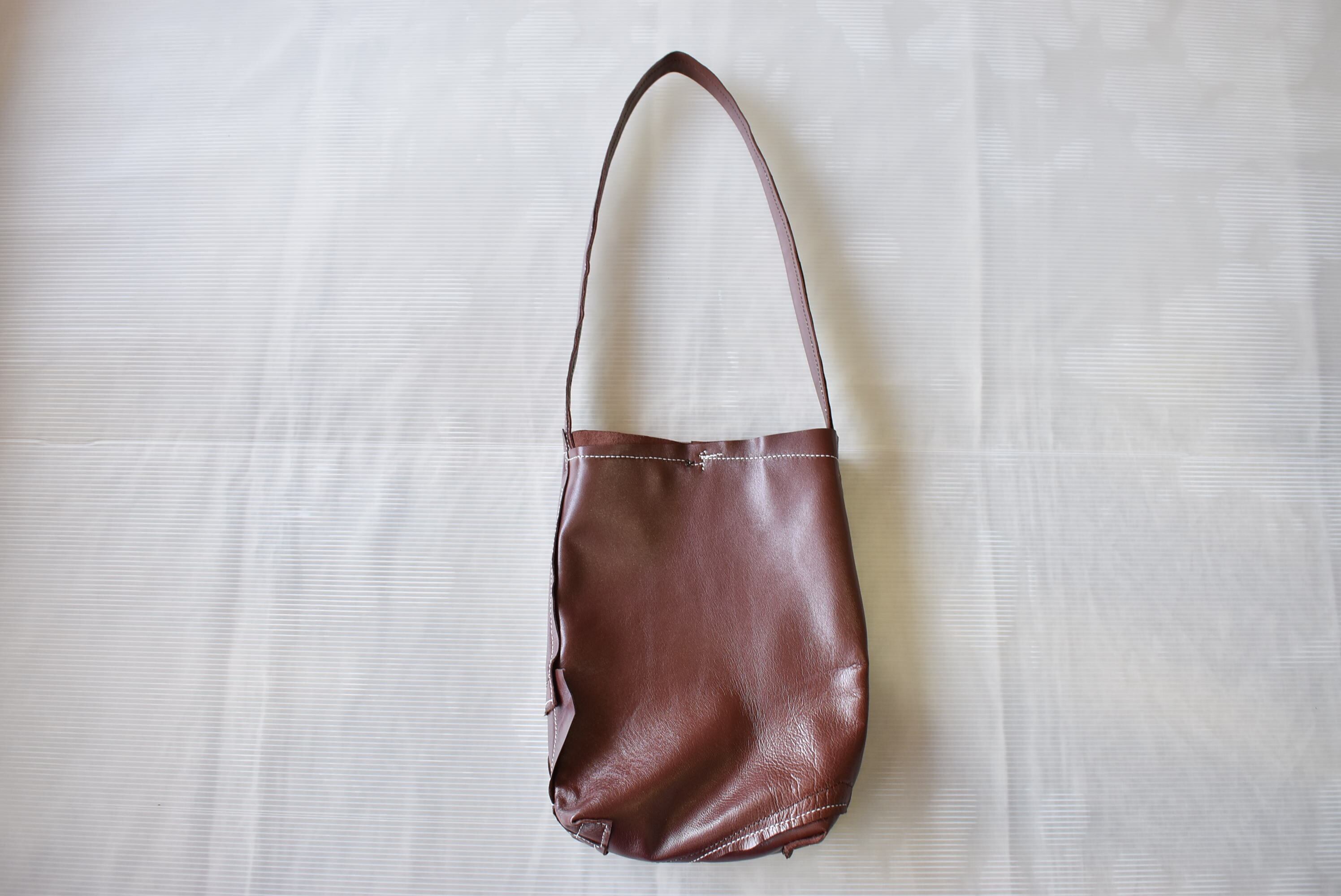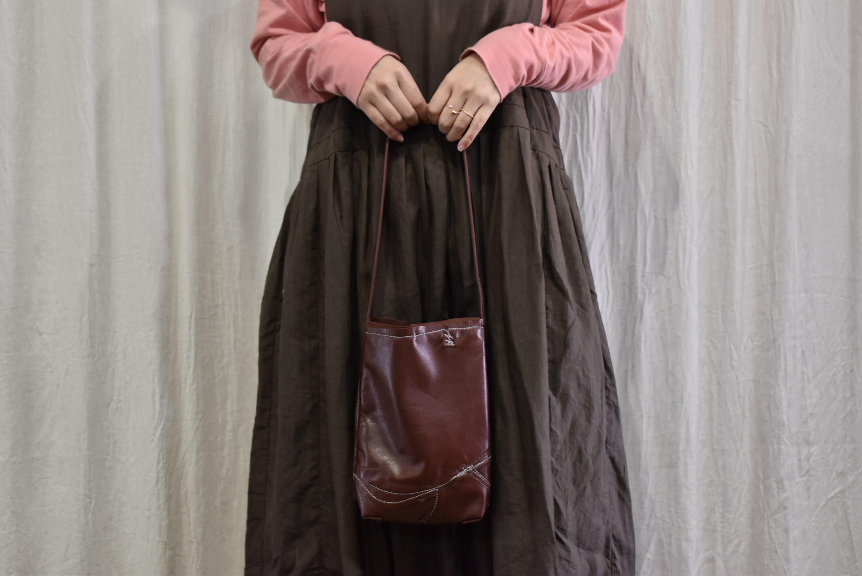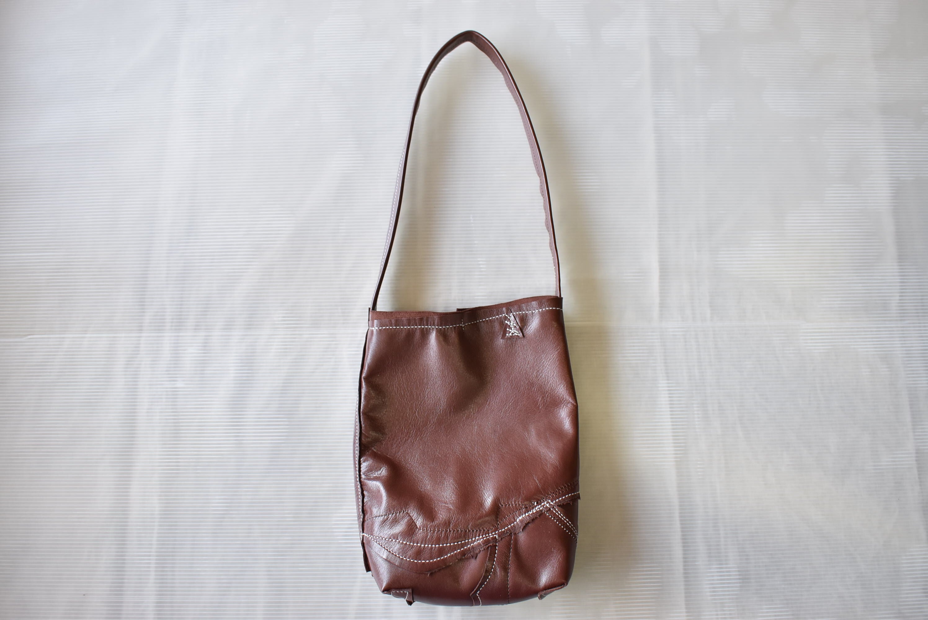 1つ1つ表情の異なるハンドルタイプのバッグ。