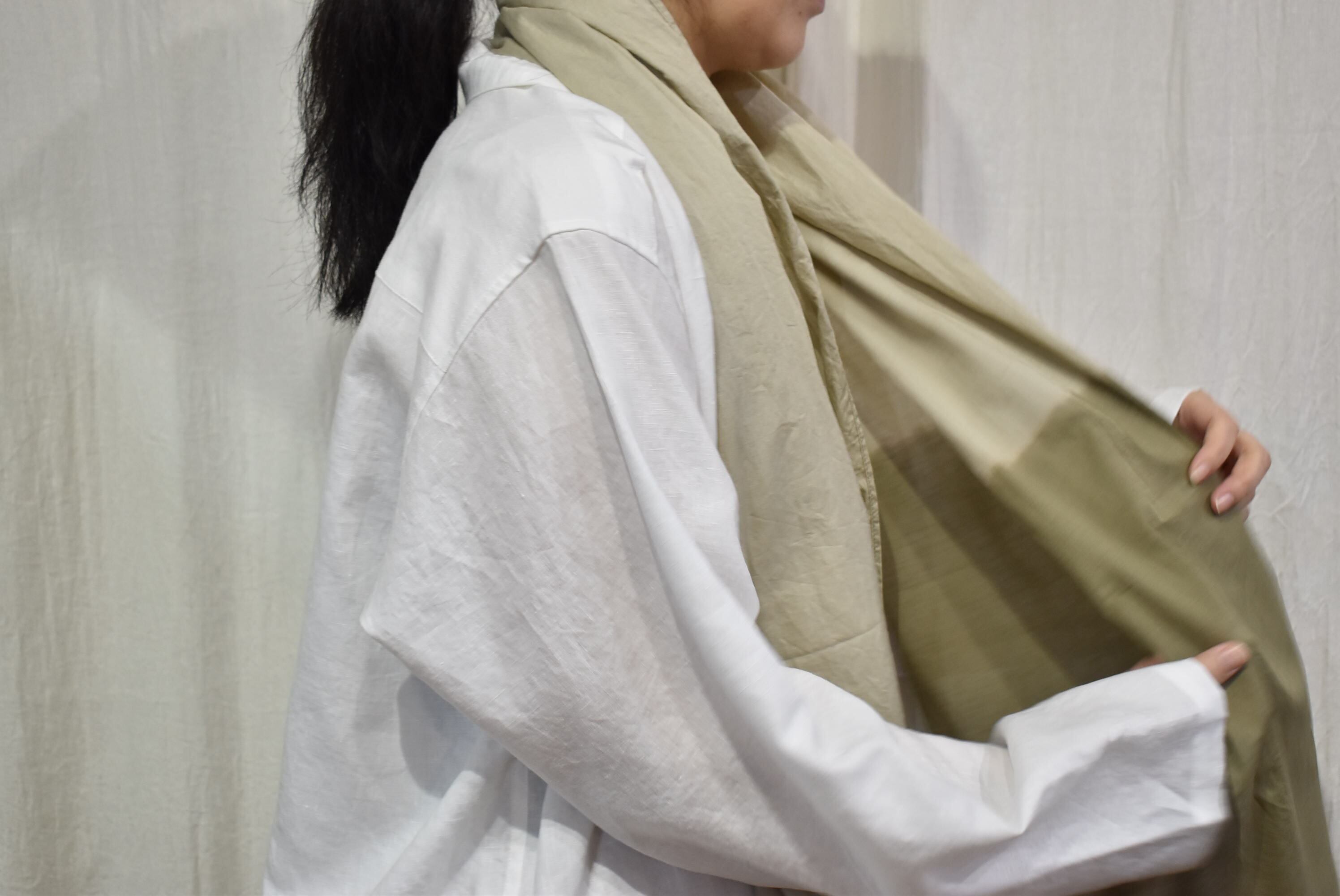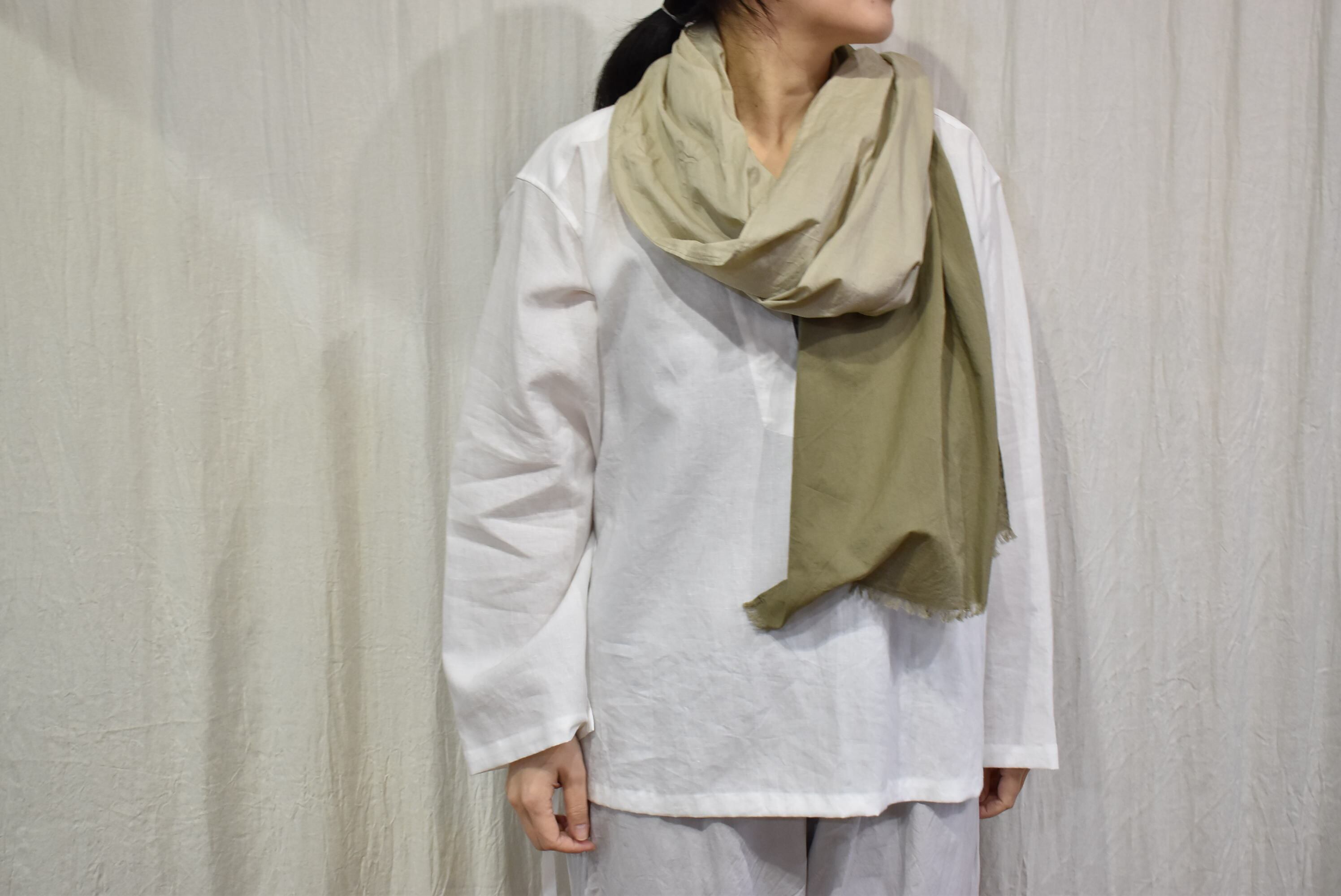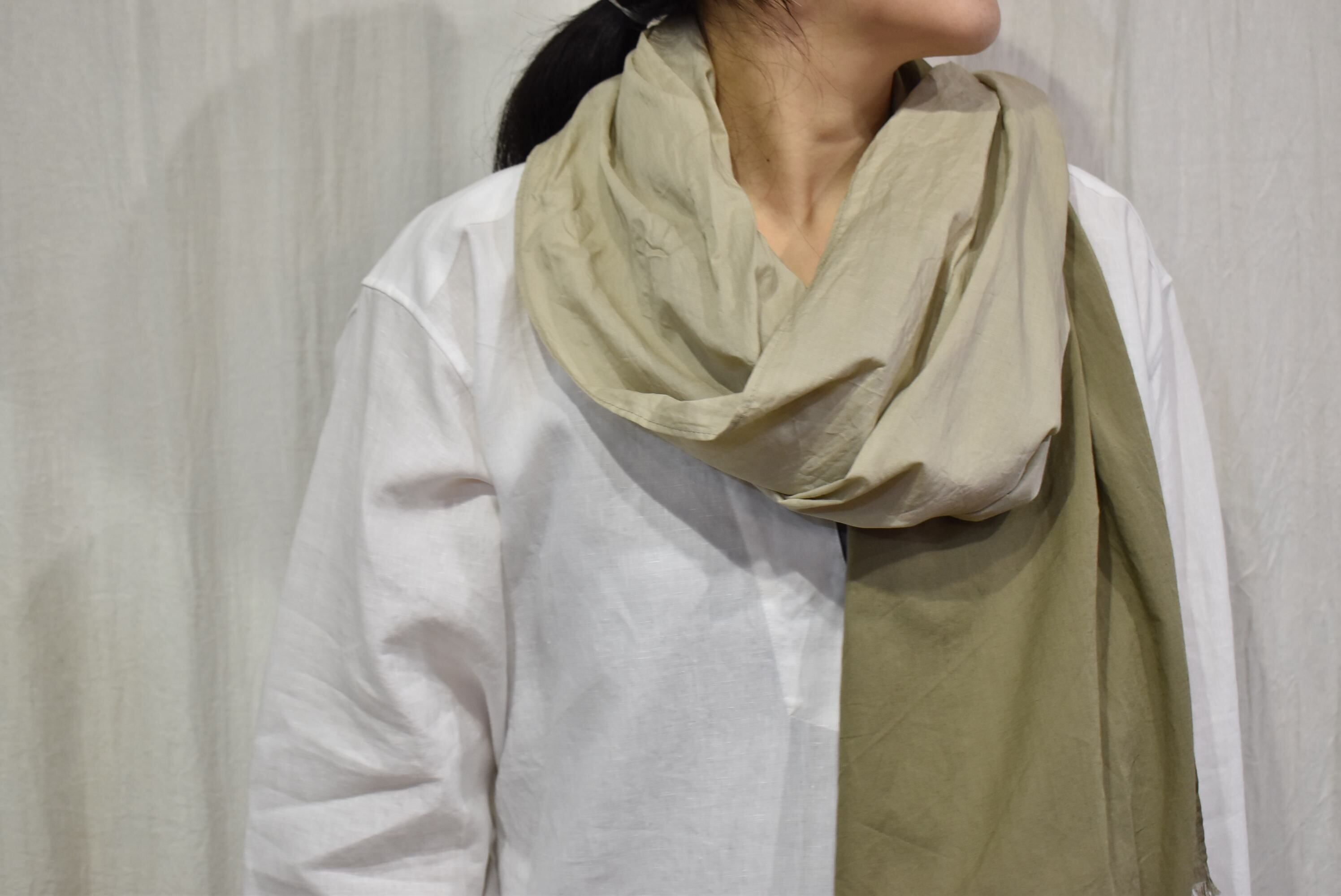 LOCALLY: cotton・linen cross tie over dye muffler beige×khaki
