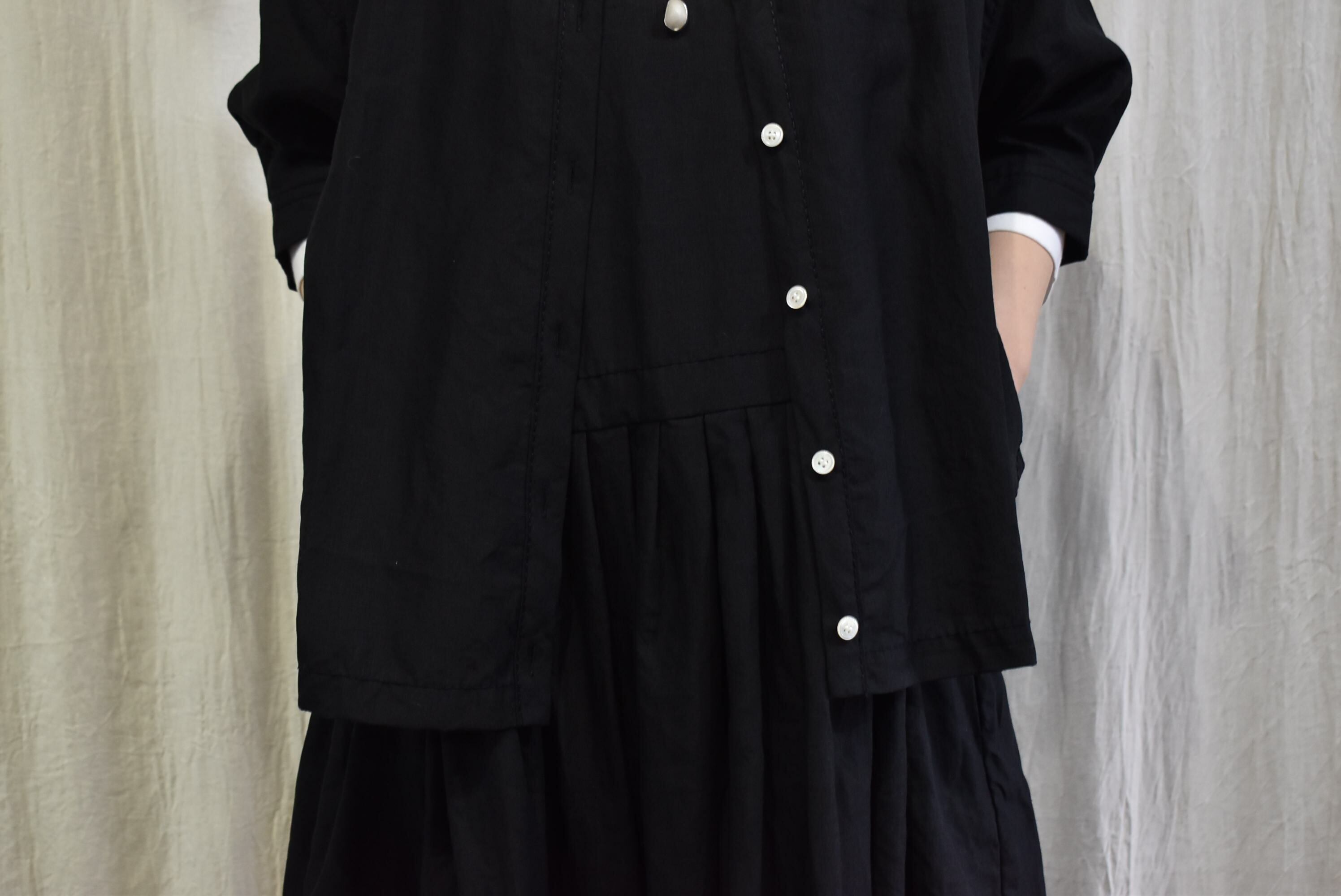 前開き仕様で、釦を閉めても開けても、どちらで着用しても