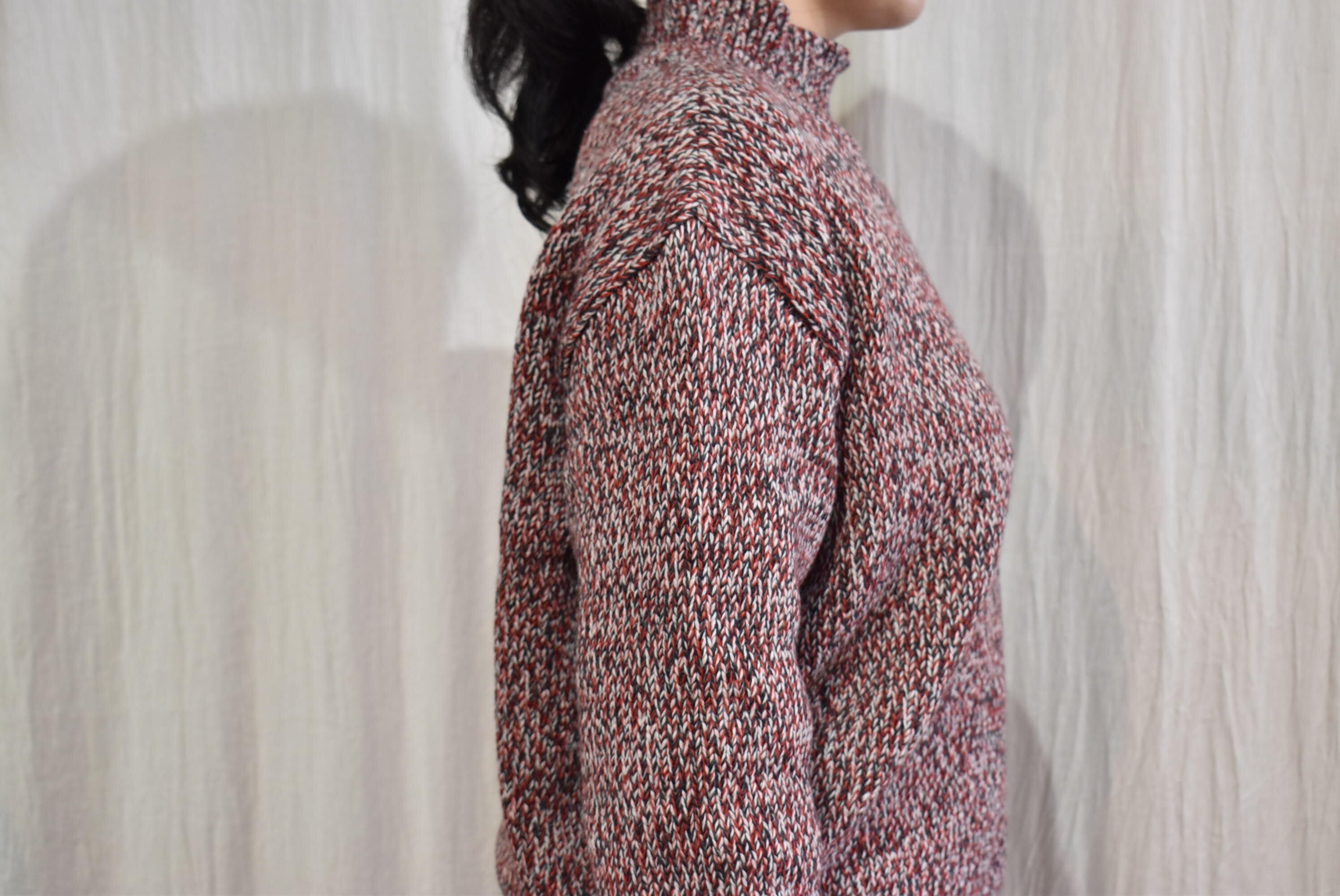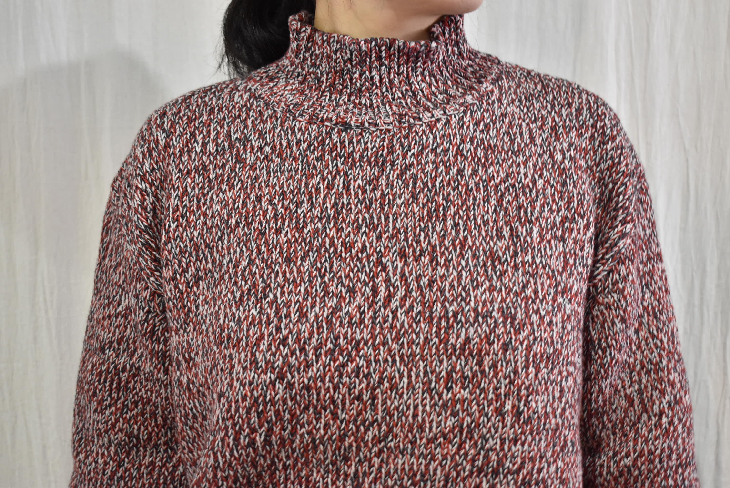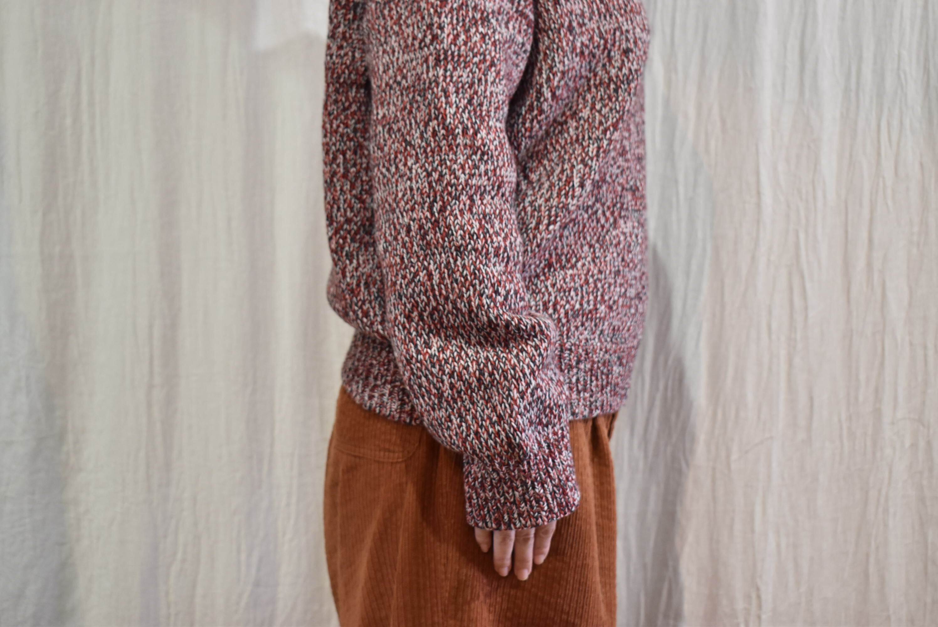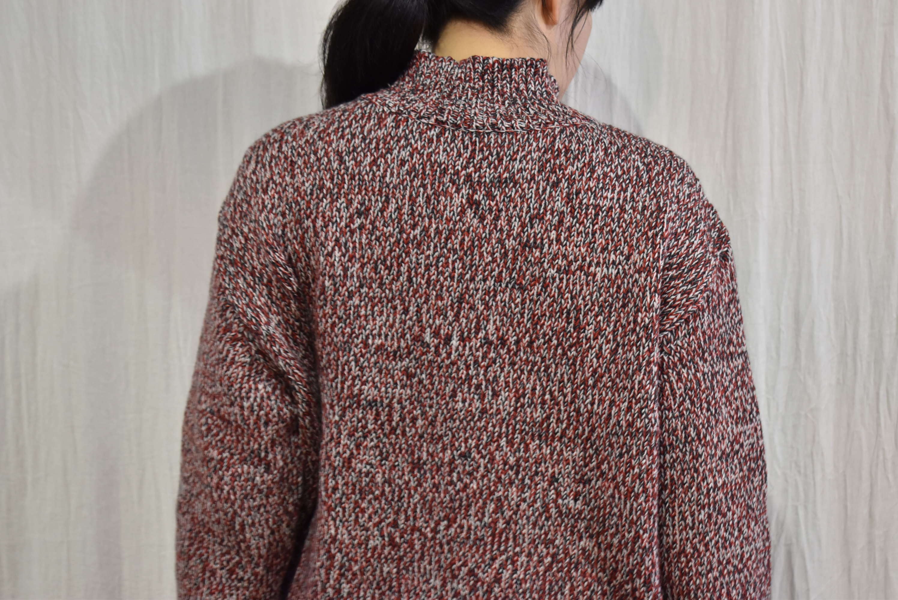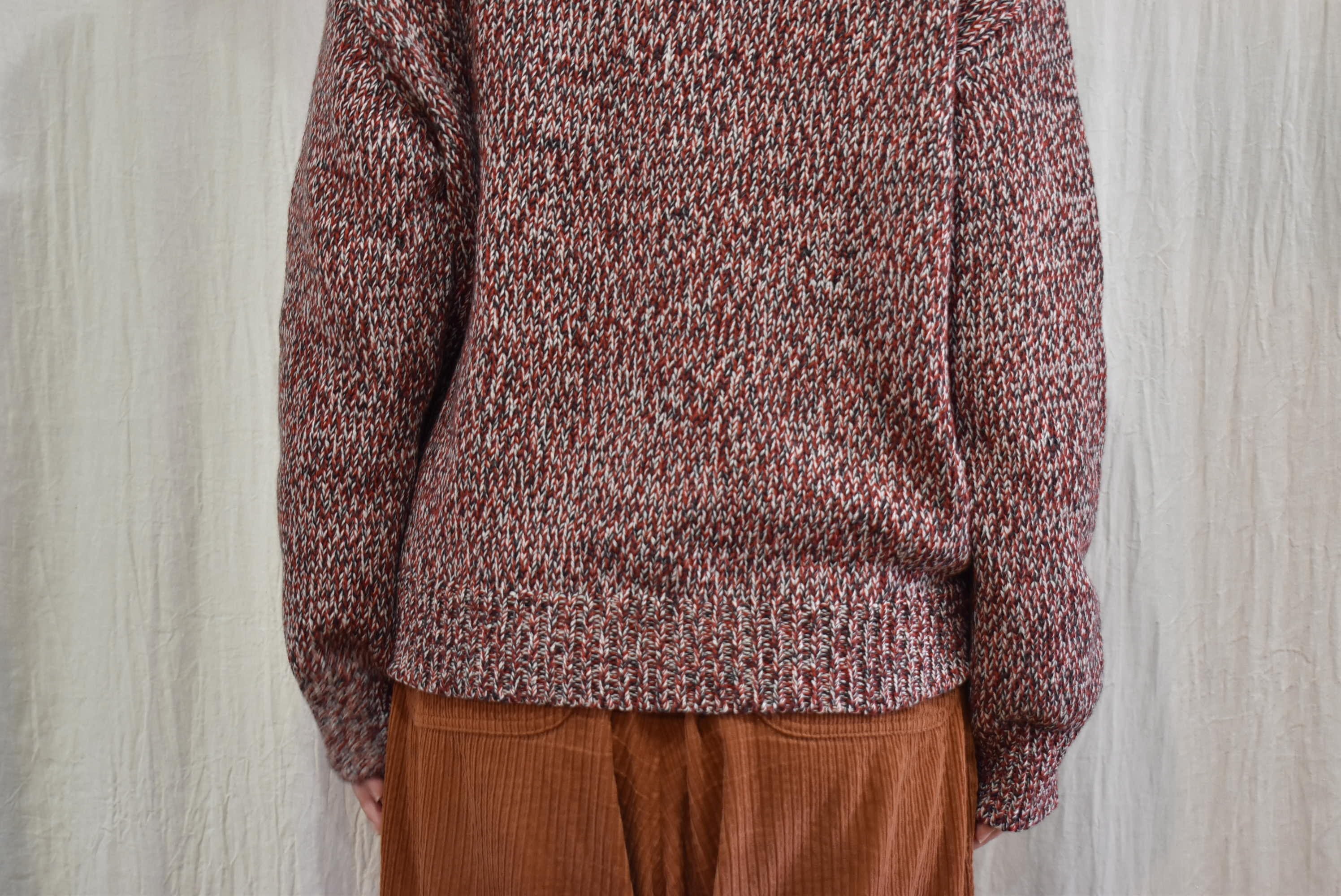 ウール×コットンの糸を撚りメランジカラーのセーターを作製。